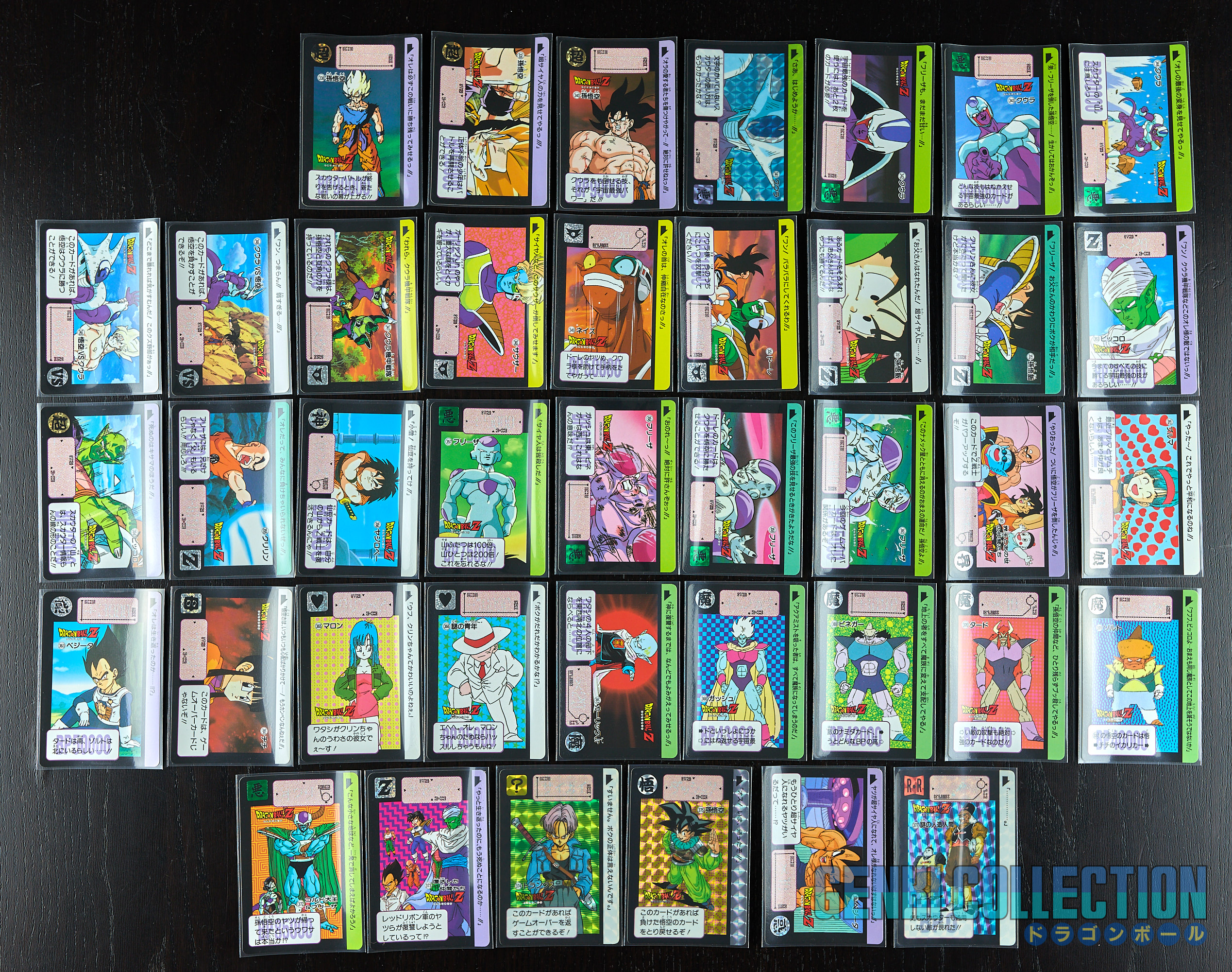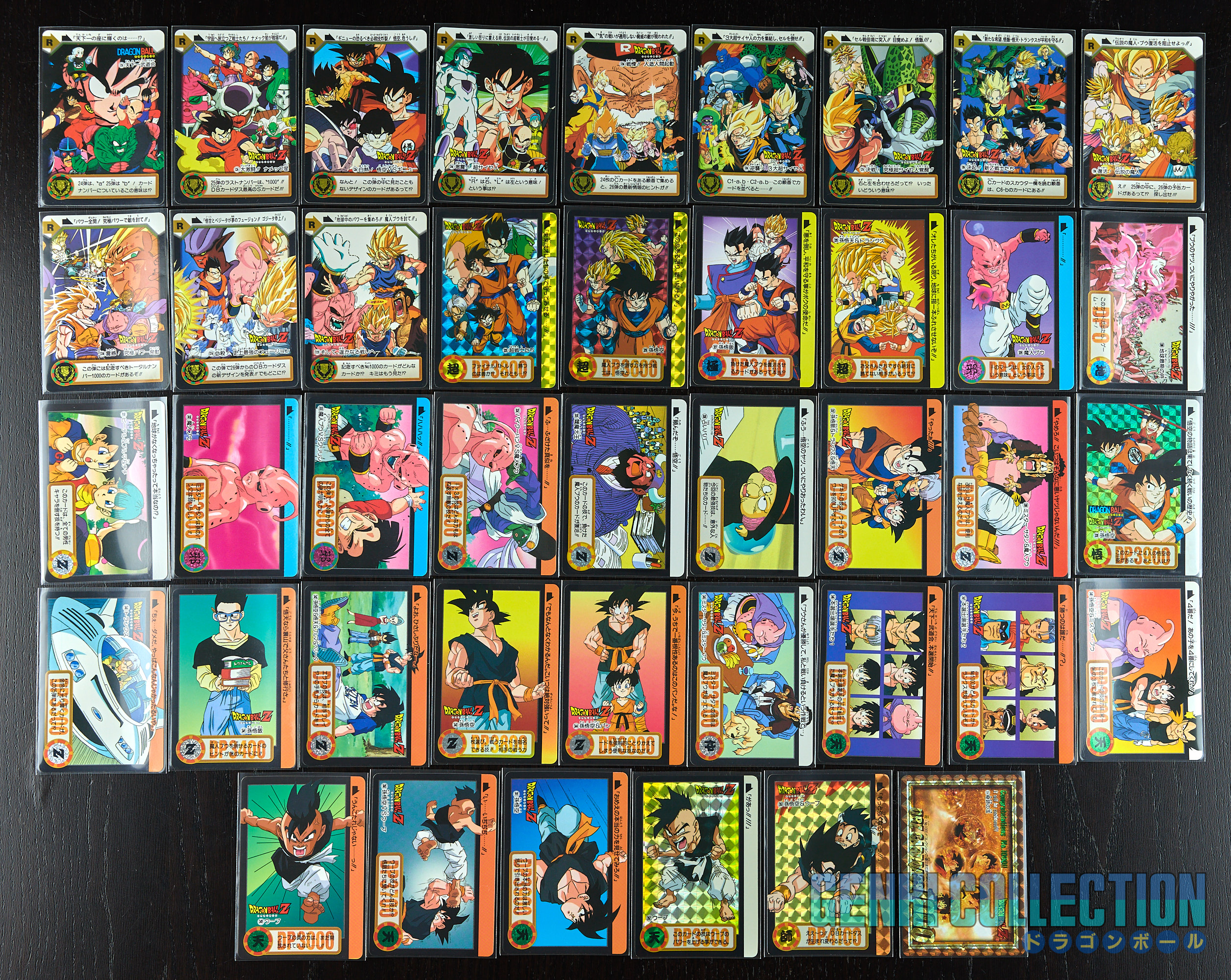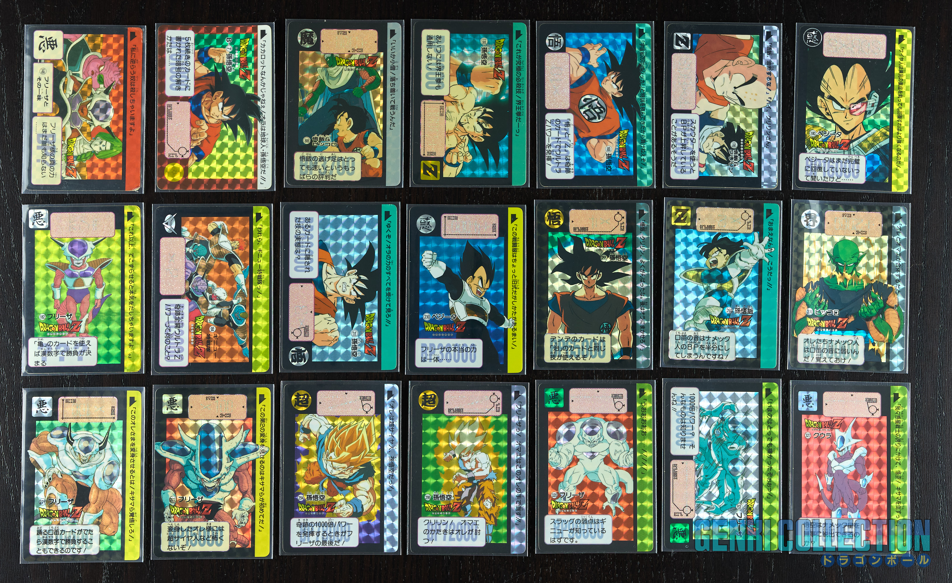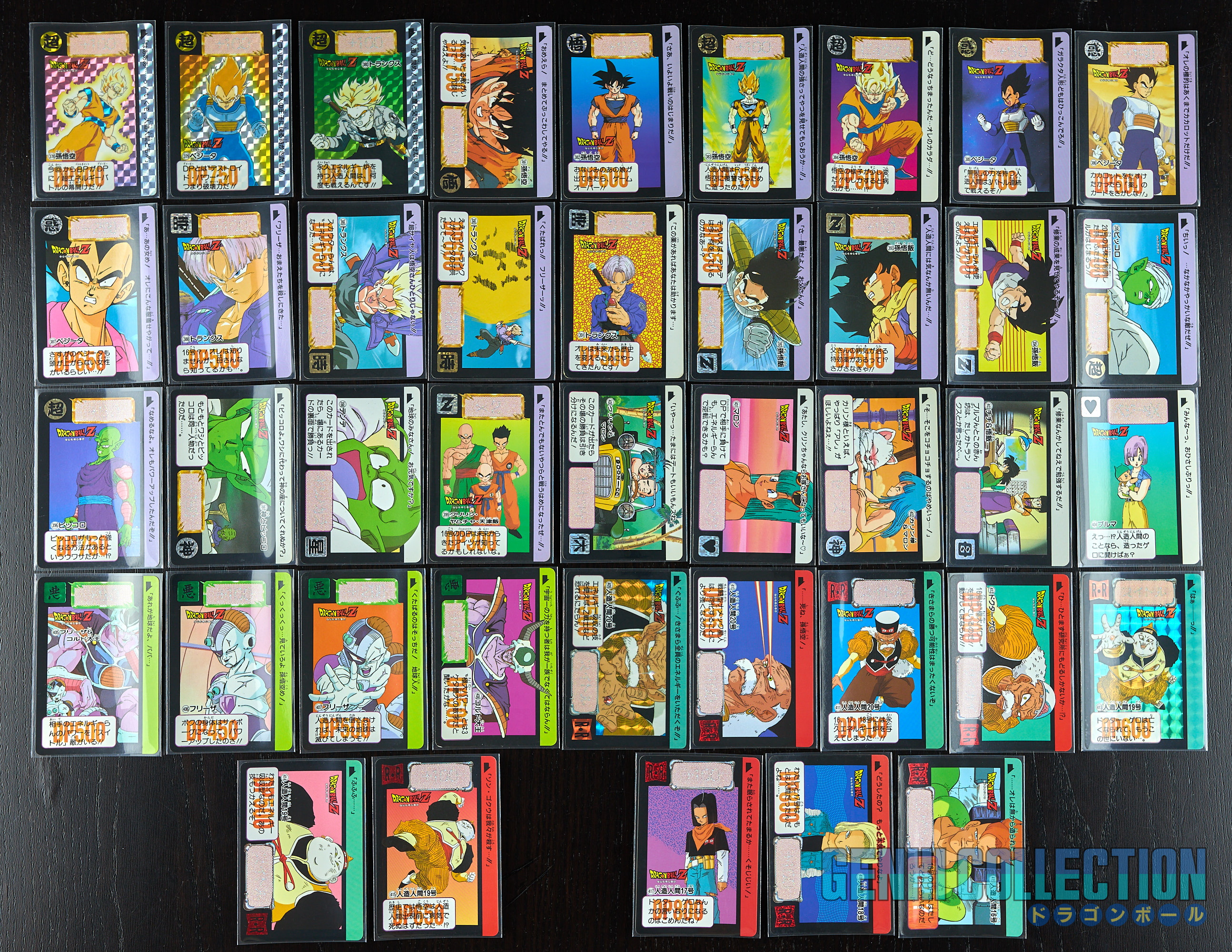 Set of Japanese Carddass cards, complete sets of common cards (regulars) parts 9 to 14, part 18, and parts 24 to 29 + numerous prisms including unpeeled hiddens. All cards are Japanese editions from the 90s and range from good condition to near mint. Full details: