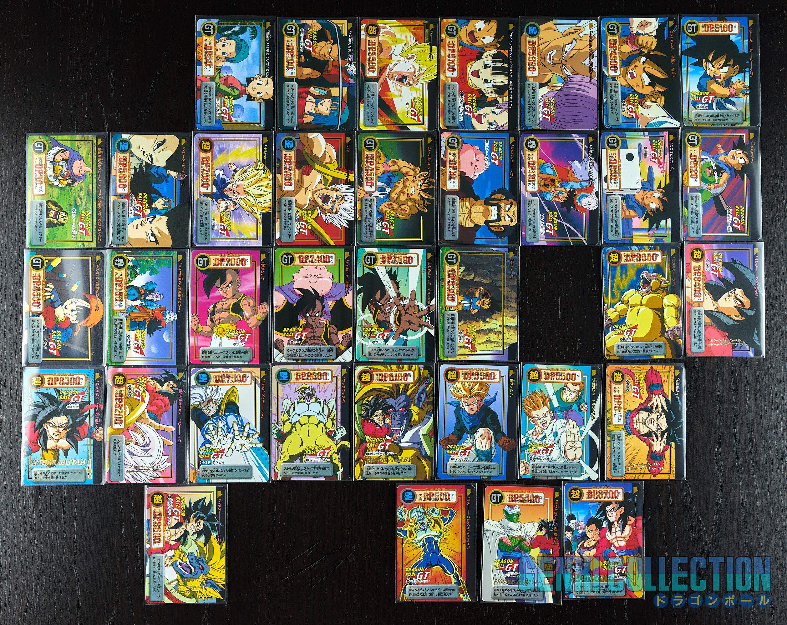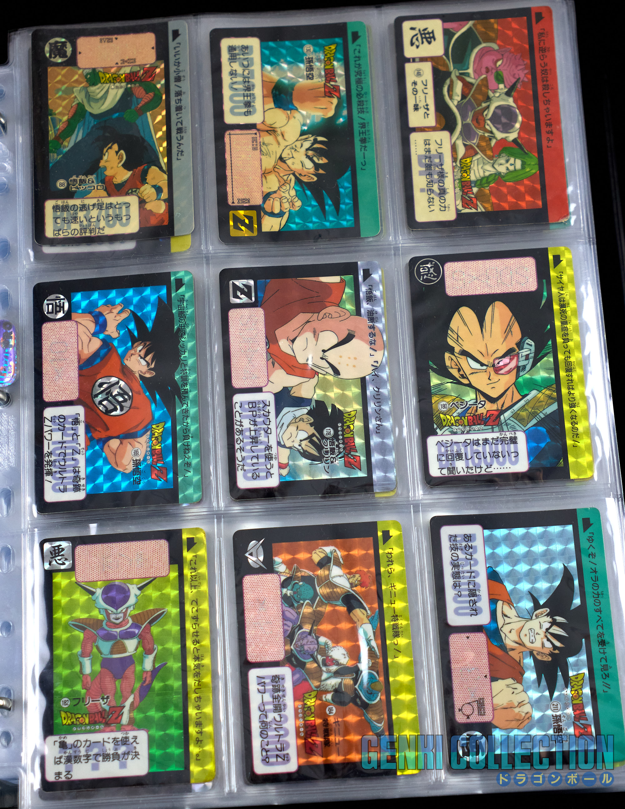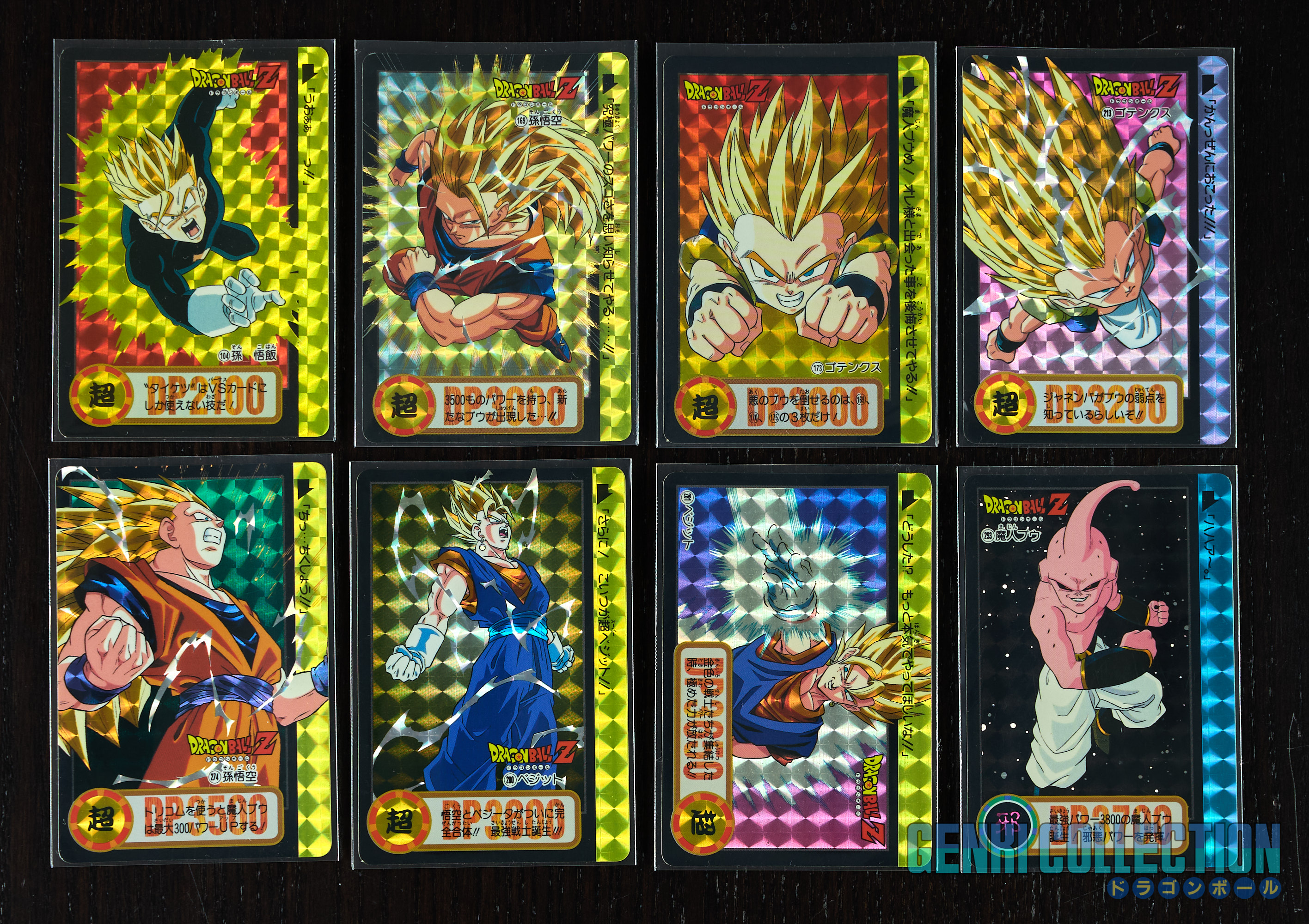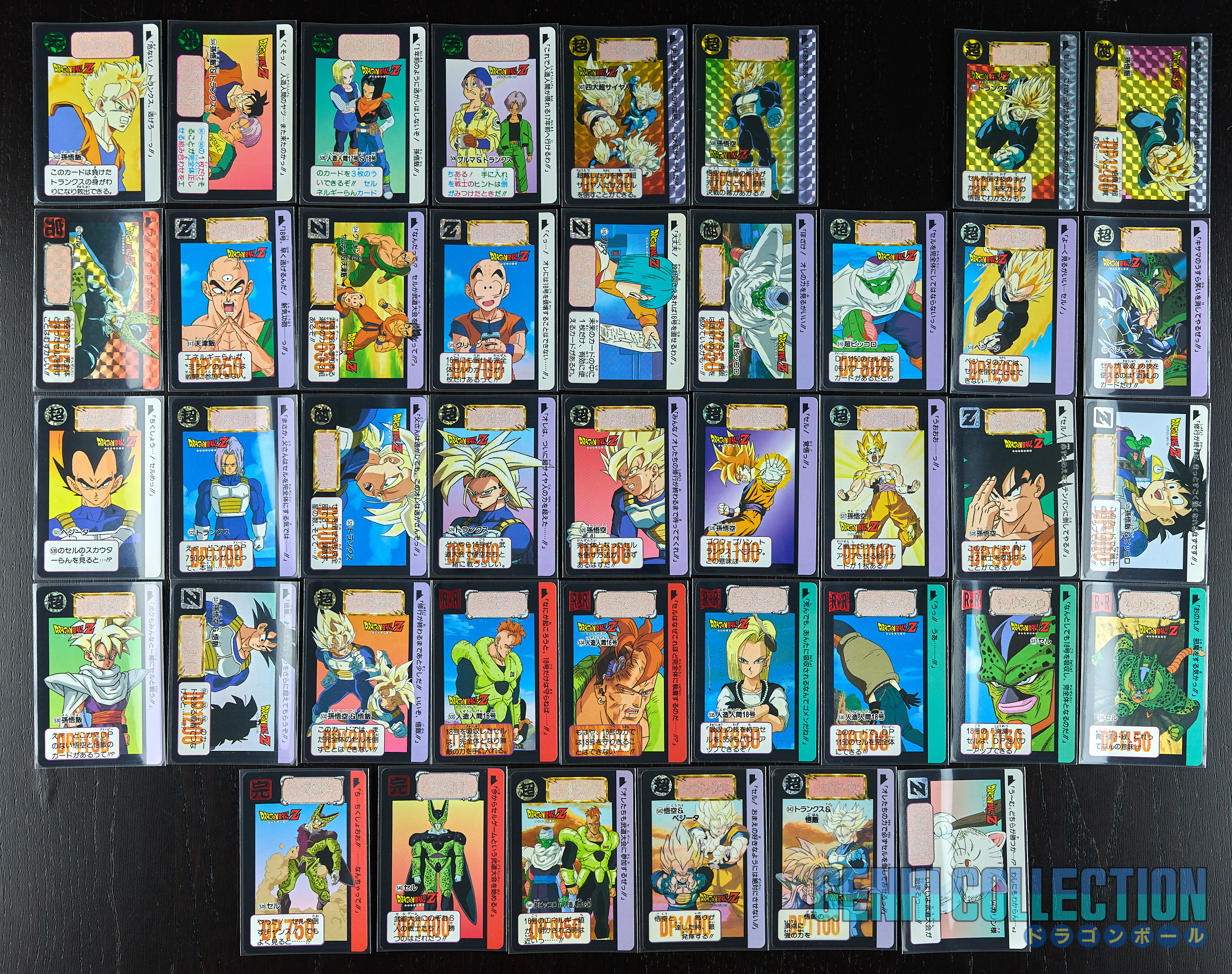 Set of Japanese Carddass cards, complete sets of common cards (regulars) parts 9 to 14, part 18, and parts 24 to 29 + numerous prisms including unpeeled hiddens. All cards are Japanese editions from the 90s and range from good condition to near mint. Full details: