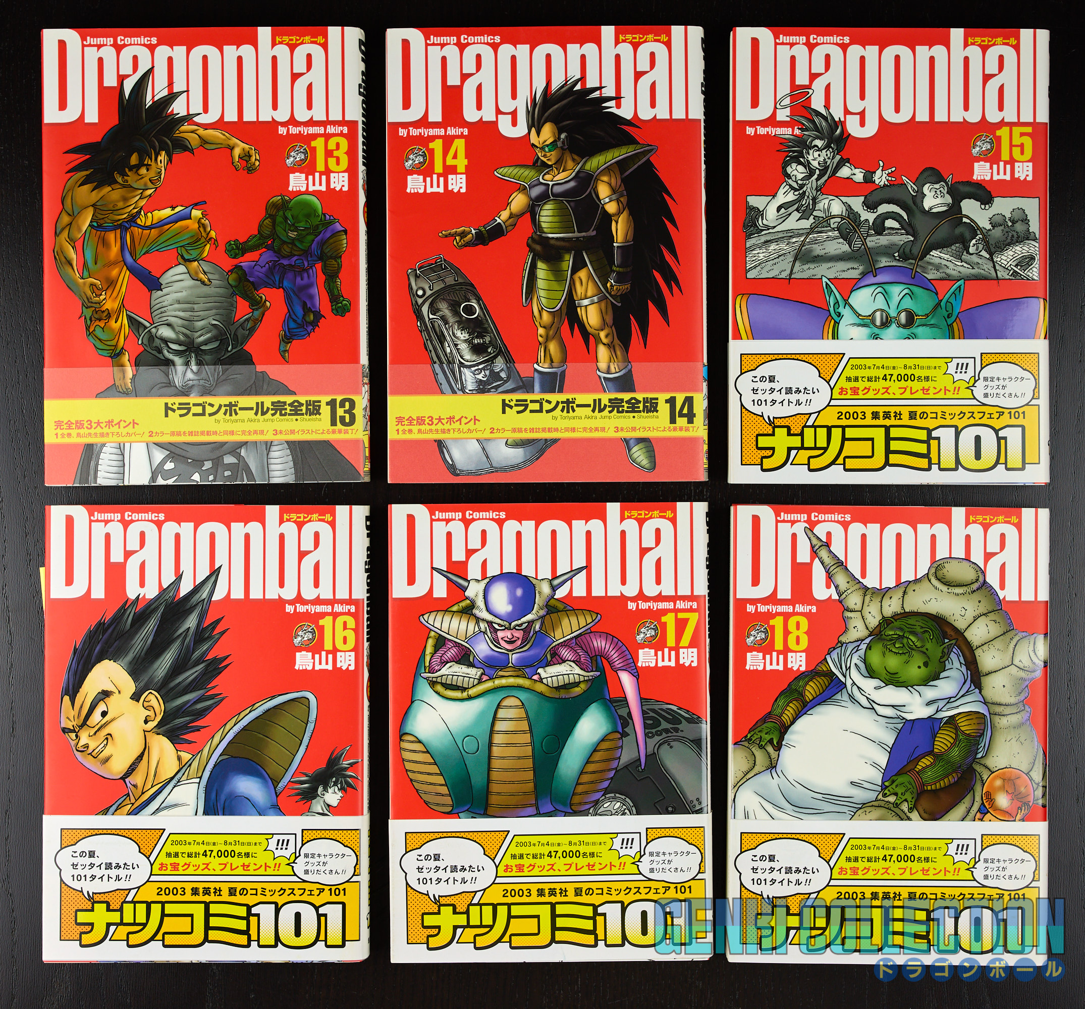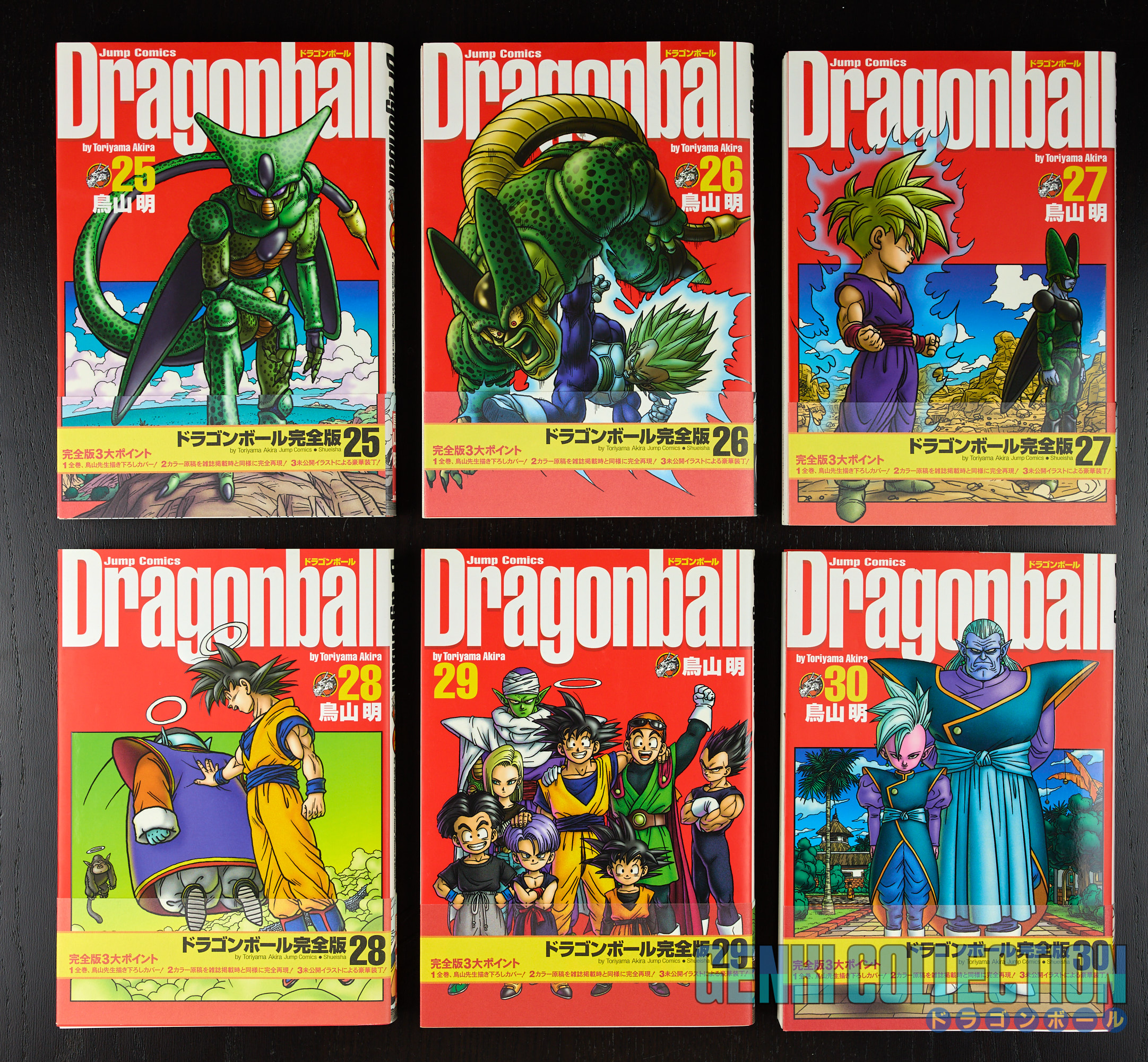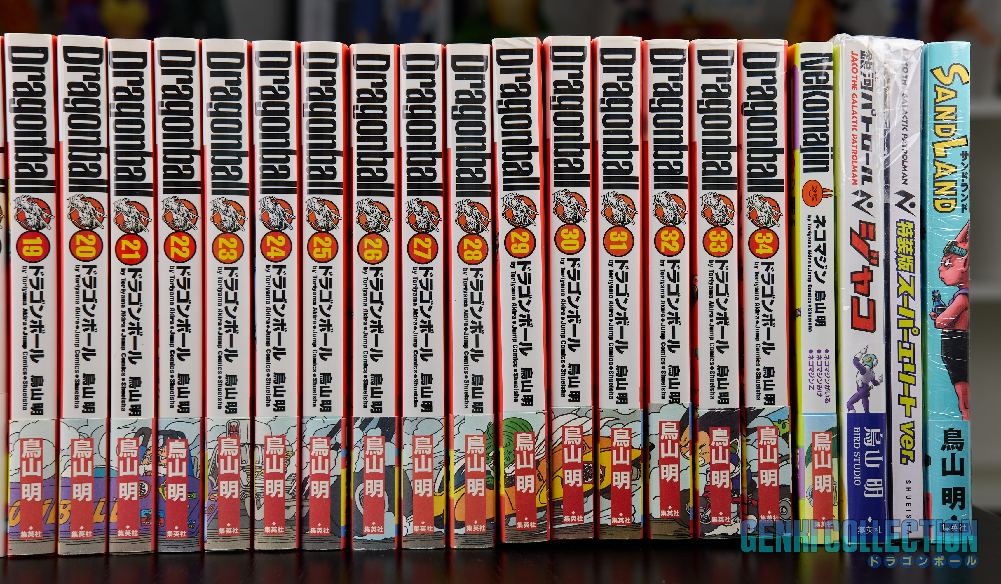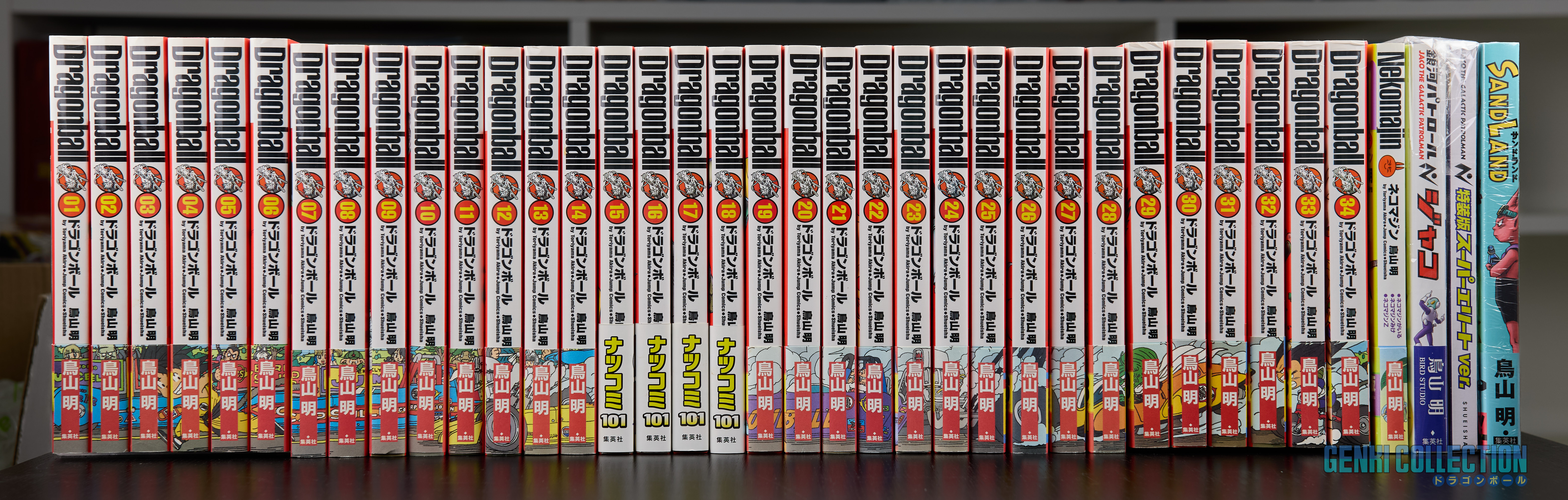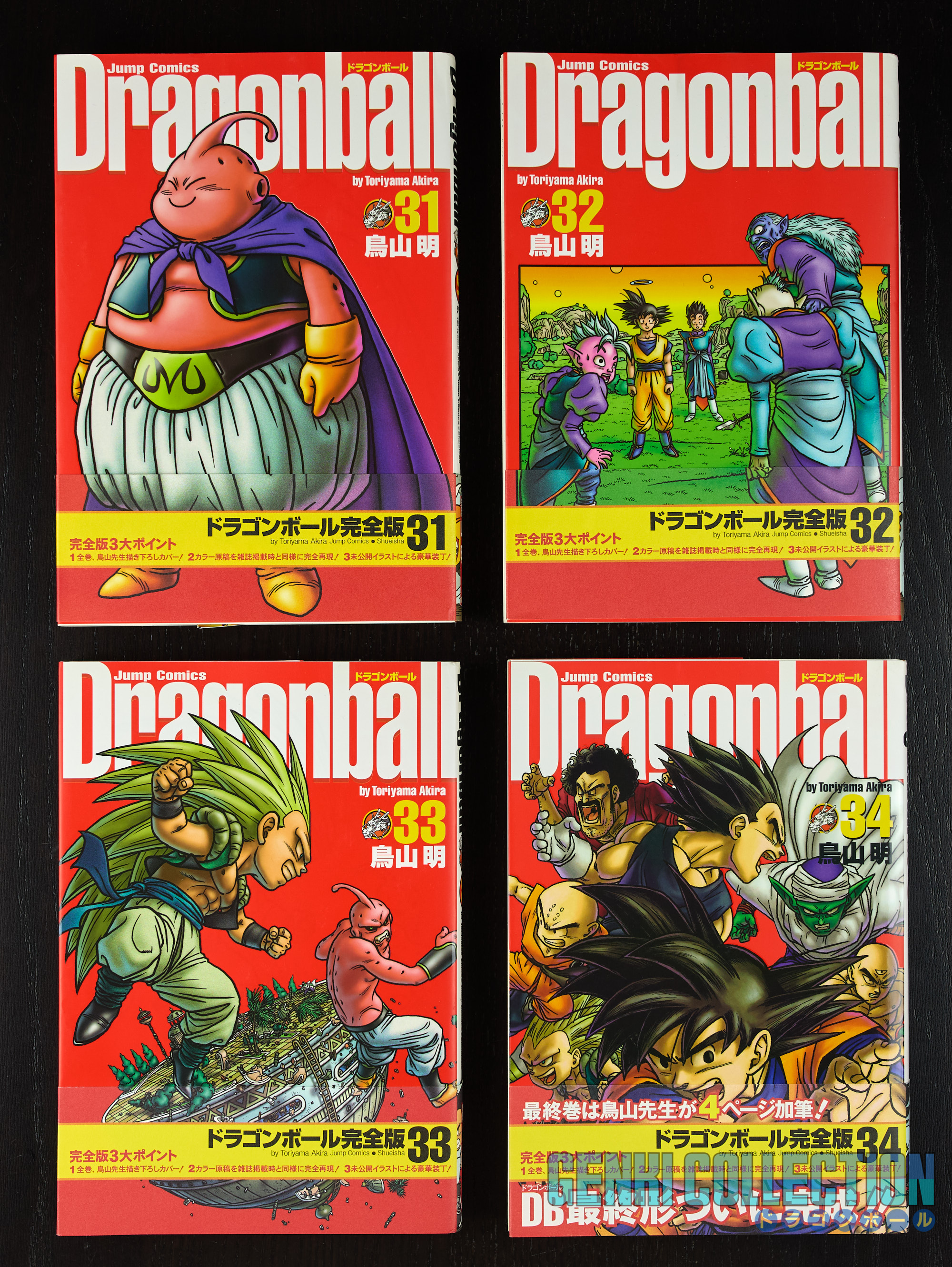 Intrégrale des 34 tomes japonais DRAGON BALL édition KANZENBAN (ou PERFECT EDITION) en très bon état, 31 tomes sont en PREMIÈRE ÉDITION, seuls les tomes 1, 2 et 14 sont en deuxième édition, tous les tomes possèdent leur OBI. À noter également que tous les tomes possèdent leurs flyers poblicitaires, excepté le tome 34 et les tomes seconde édition 1, 2 et 14. S'ajoute à cela le tome NEKO MAJIN édition KANZENBAN avec son OBI + le tome de Jako, également en édition KANZENBAN avec son coffret collector incluant un porte-clé, une carte postale et un sticker et enfin le tome de SAND LAND en édition KANZENBAN, scellé sous blister.