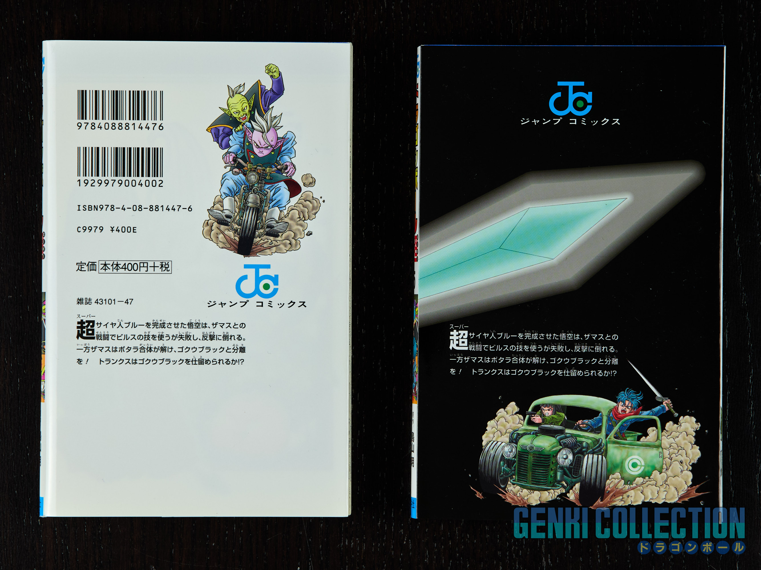 Lot de tomes japonais DRAGON BALL SUPER 1 à 11 + 17, tous avec OBI. Le volume 5 est en double, un avec la couverture standard, le second avec une couverture noire en édition limitée reprenant le futur de Trunks. Les tomes 3 à 11 + 17 sont des premières éditions avec flyer publicitaires. Tomes en excellent état.