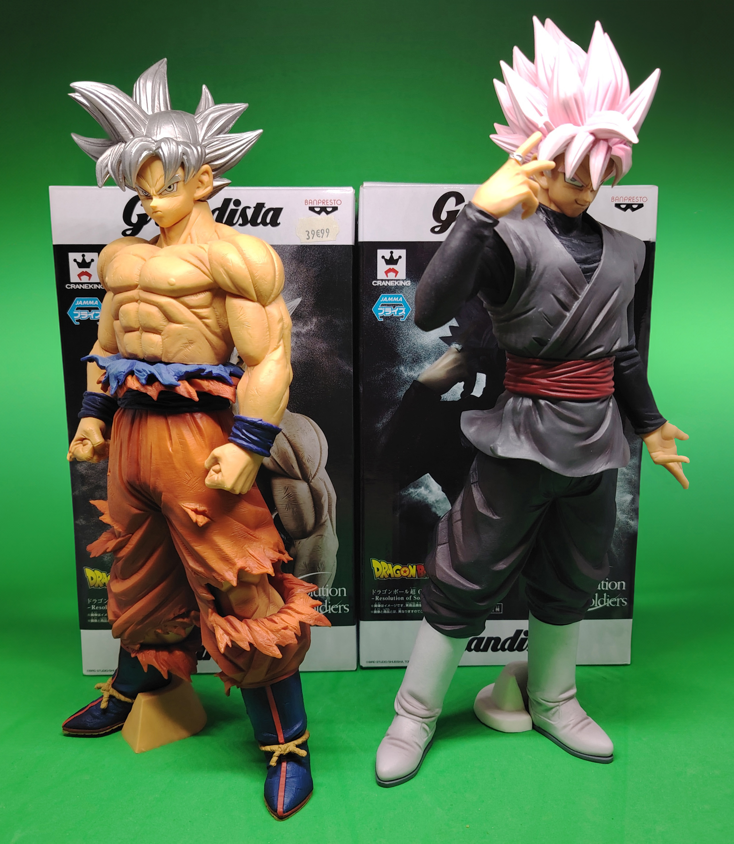 lot de 2 figurines avec boites DRAGON BALL SUPER GRANDISTA Resolution Of Soldiers représentant les personnages de GOKU ULTRA INSTINCT & GOKU BLACK ROSE, sorties en 2018