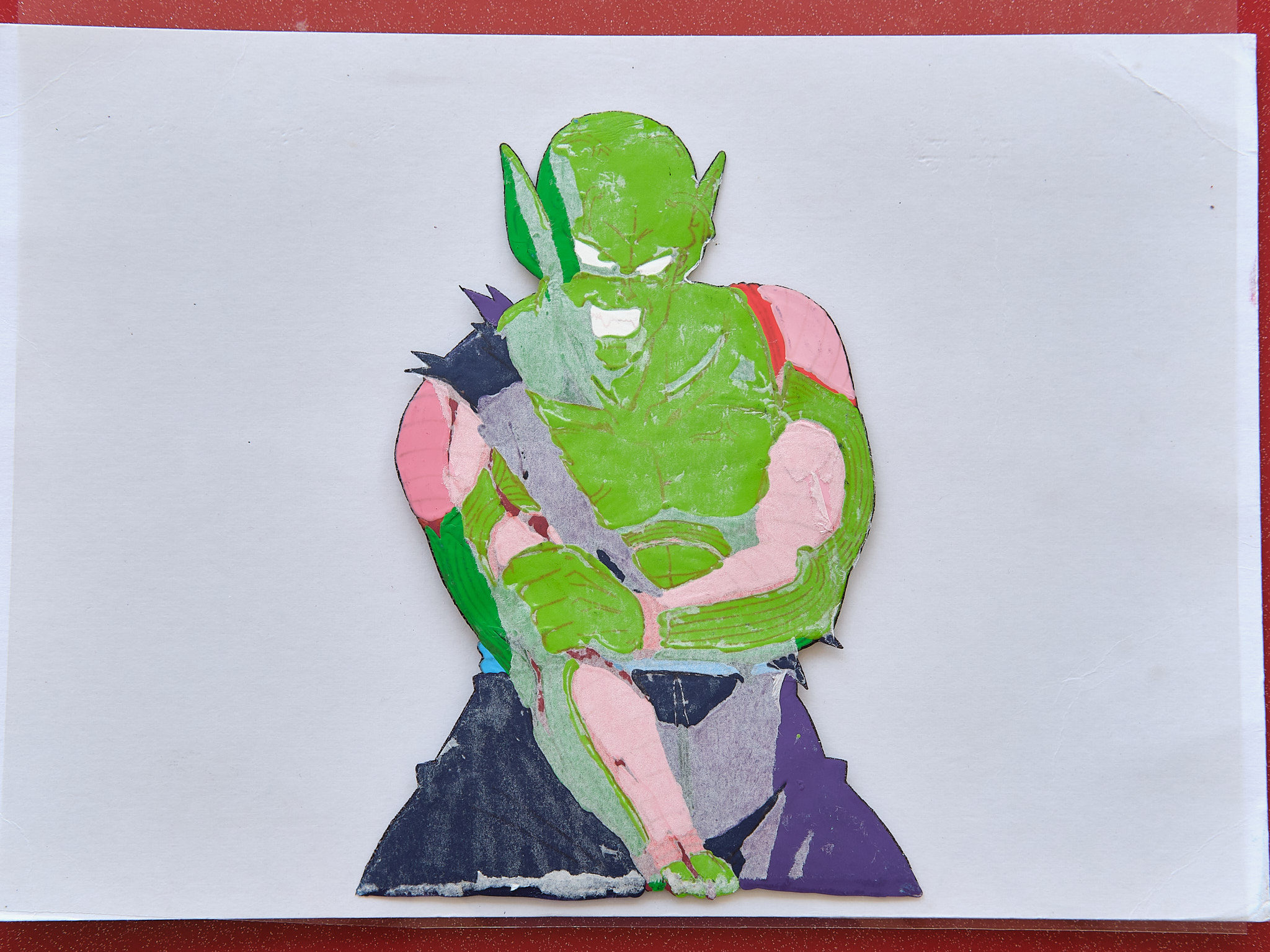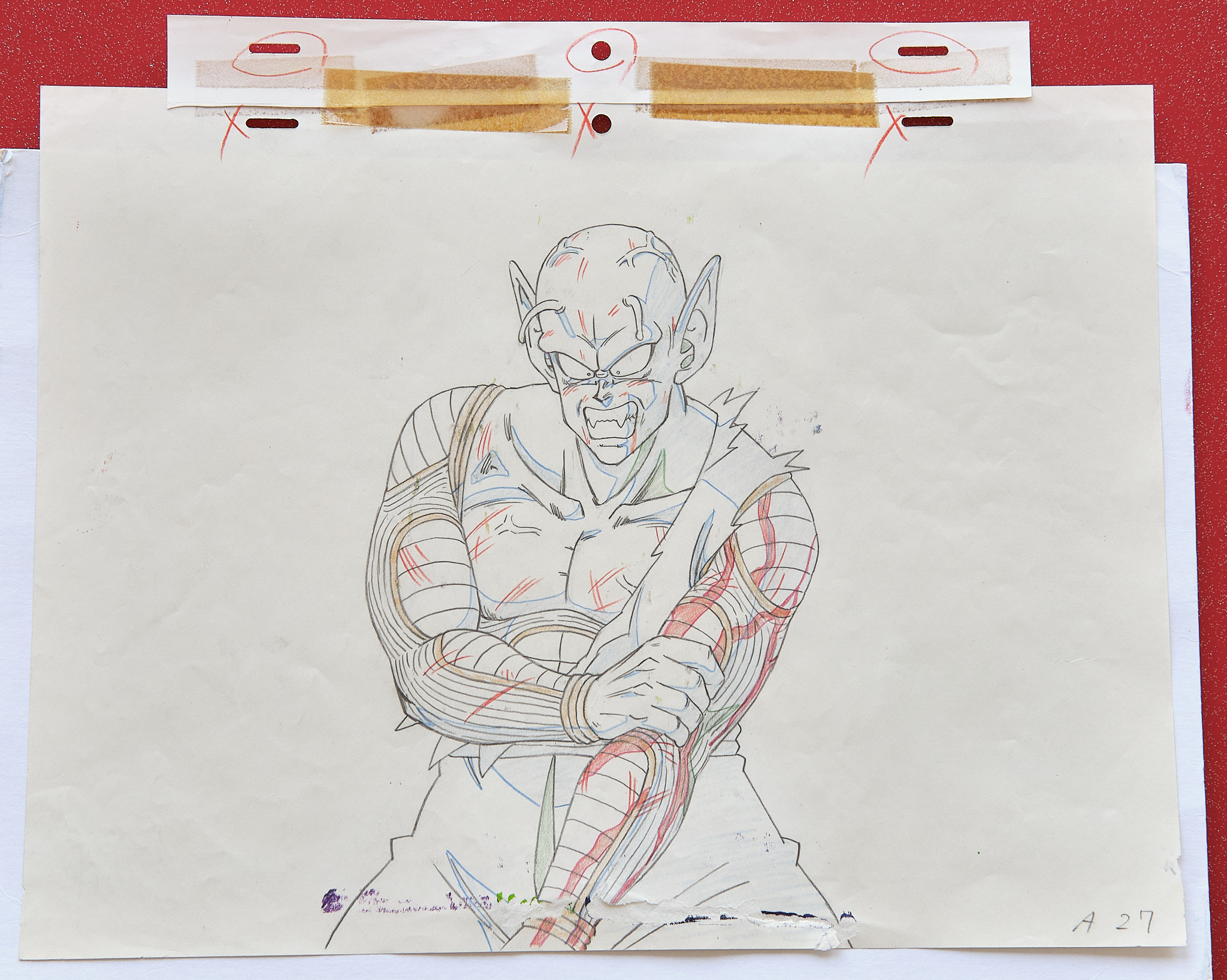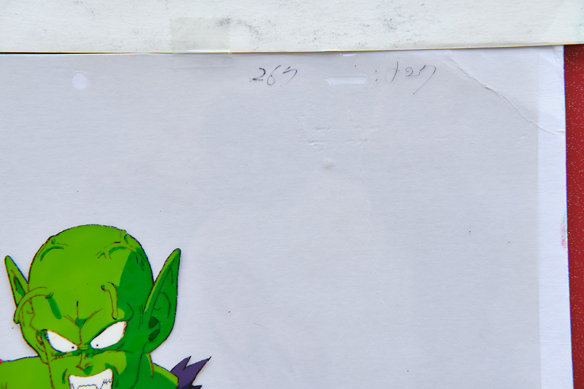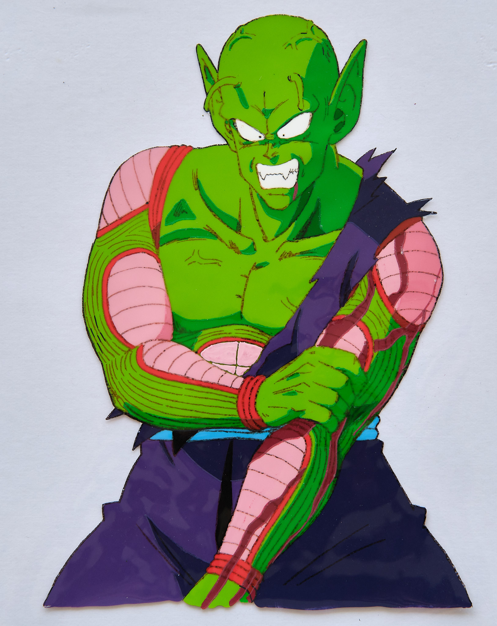 CELLULO Piccolo arrachant son bras + Décor + Douga DRAGON BALL EP 146Cellulo peinture acrylique de DRAGON BALL grand format (35x30cm) de Piccolo arrachant son bras et son décor peint à la main. Le douga (crayonné préparatoire) est également présent. Cette séquence a été réalisée par le célèbre animateur KATSUYOSHI NAKATSURU pour l'épisode 146 de DRAGON BALL.