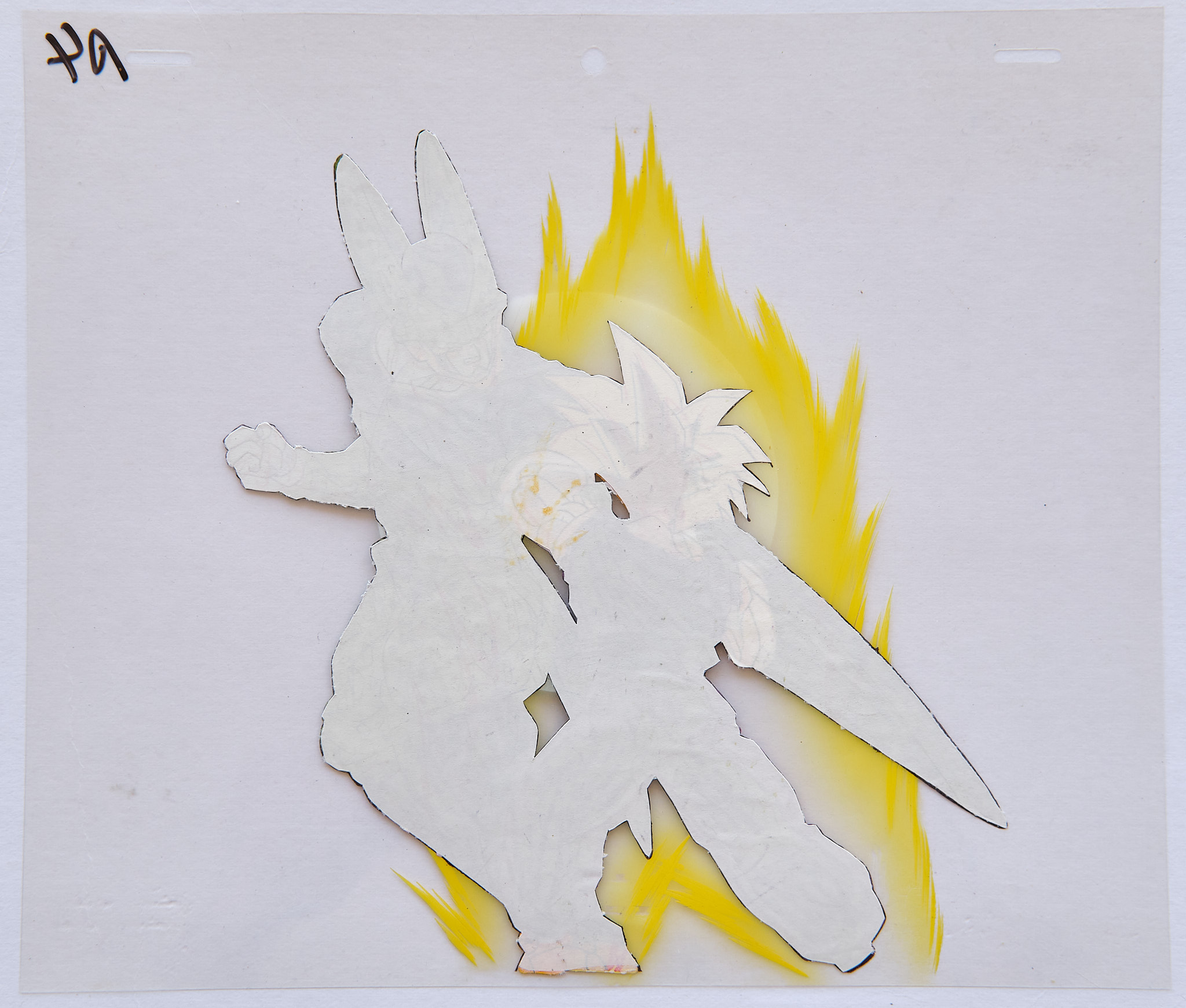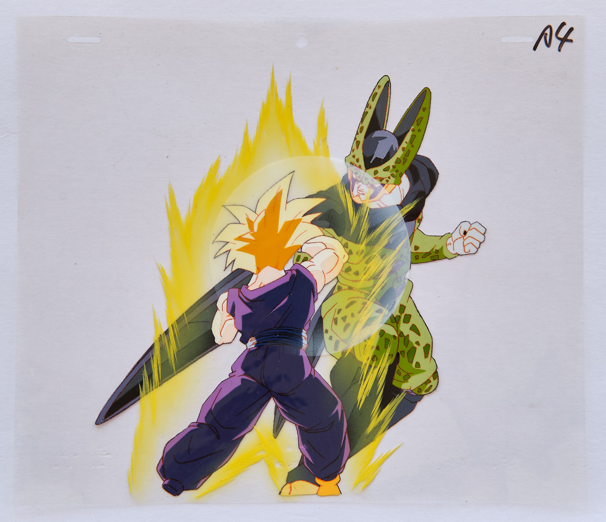 CELLULO Gohan contre Cell + Décor imprimé DRAGON BALL Z EP 181Cellulo peinture acrylique de DRAGON BALL Z au format standard (26,5x22,8cm) de Gohan affrontant Cell avec de superbes effets d'impact et d'aura peints à l'aérographe et son décor en impression jet d'encre. Cette séquence a été réalisée pour l'épisode 181 de DRAGON BALL Z.