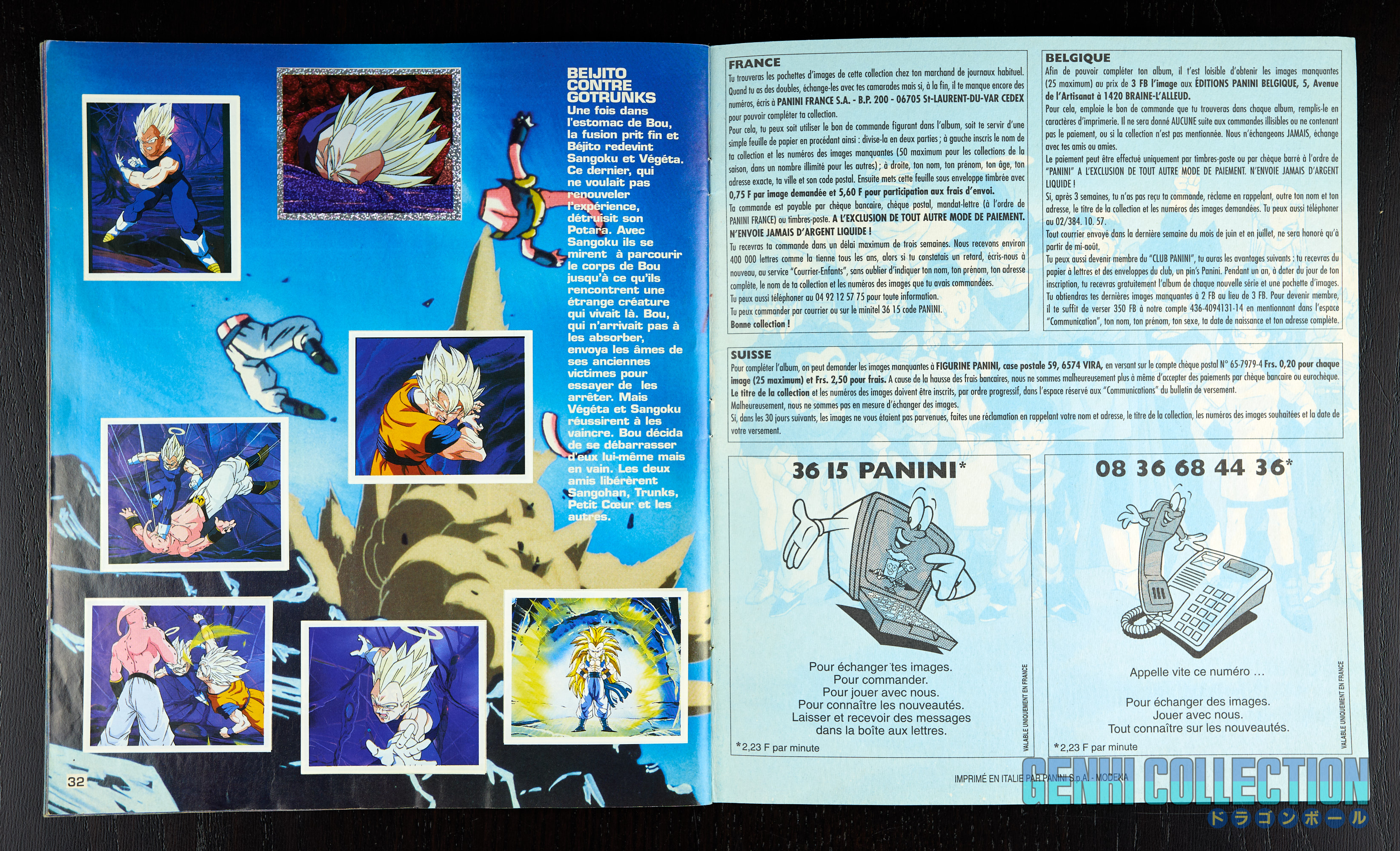 Lot de 3 albums PANINI DRAGON BALL Z en français d'époque des années 90. Les albums sont en bon état, malgré quelques marques d'usure. Ils sont complets, excepté le "DRAGON BALL Z 2" auquel il manque l'autocollant n°126. À noter également qu'il manque les "2 posters géants" du troisième album.