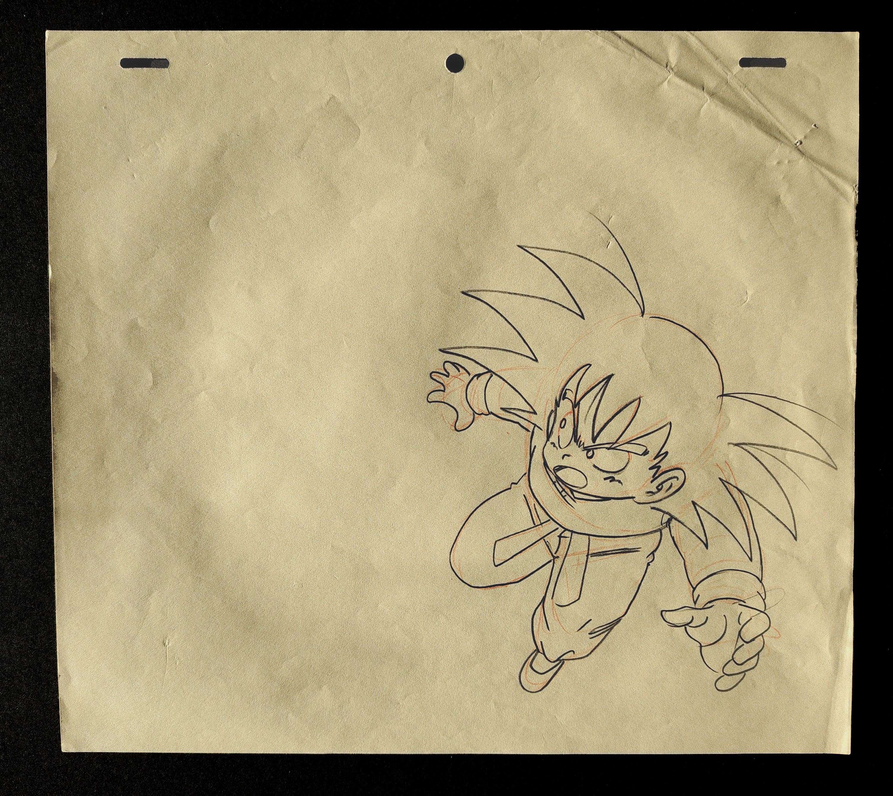 Lot comprenant 2 corrections, un Genga partiel à la mine de plomb et au crayon de couleur et une copie de layout représentant Piccolo Daimaô contre Goku et tirés de l'épisode 120 de DRAGON BALL : "Goku : Colère à pleine puissance !!", " 悟空・怒りのフルパワー" et produits en 1988 par Toei animation. Directeur de l'animation : Masayuki Uchiyama.