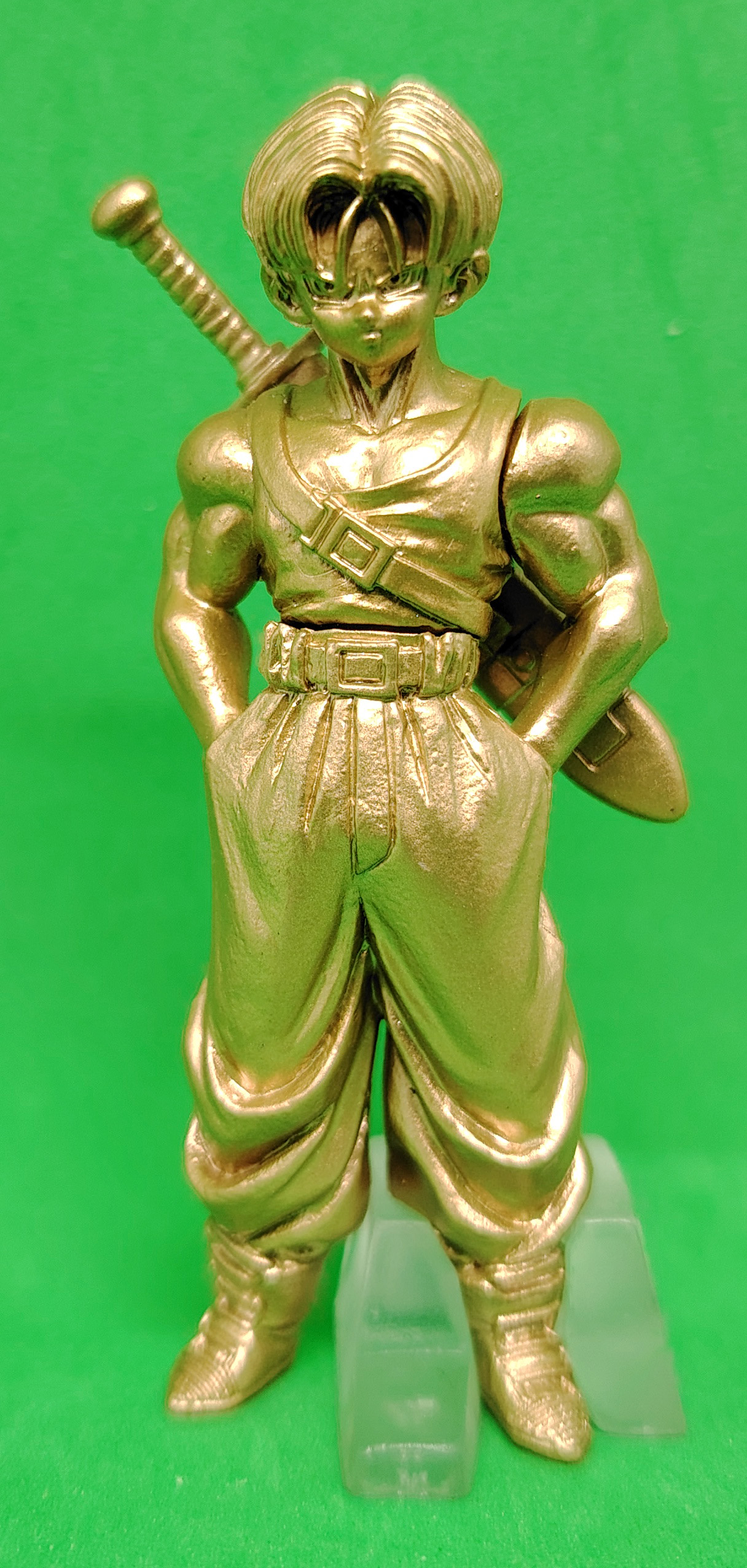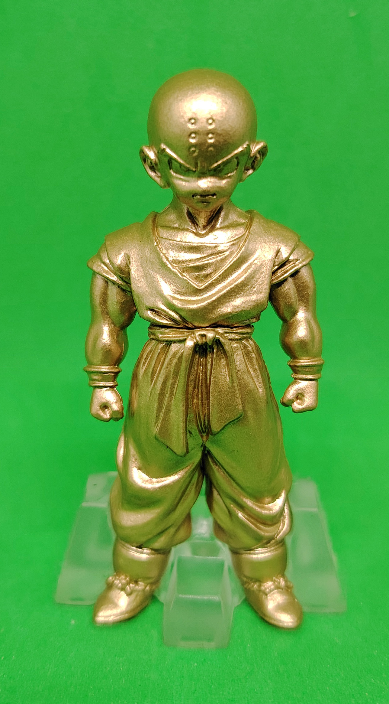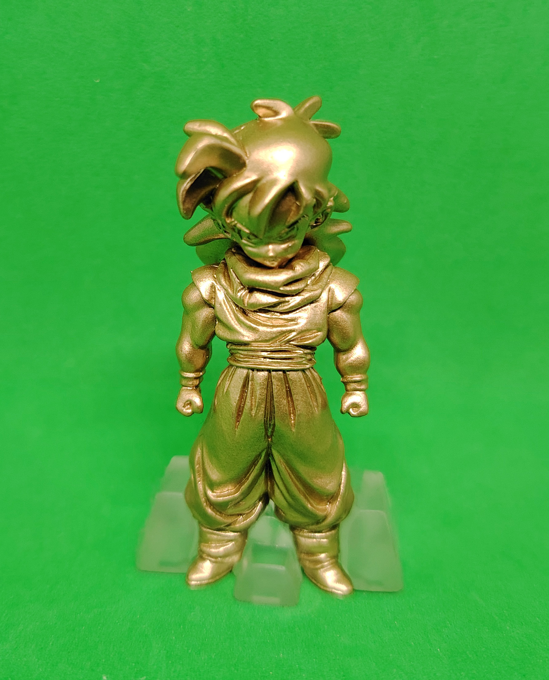 lot de 4 Gashapons Dragon Ball Z HG partie 20-I version gold sortie en 2009 par Bandai, représentant les personages de Gohan, Krilin, Trunks et Goku, reprenant la posture du generique.