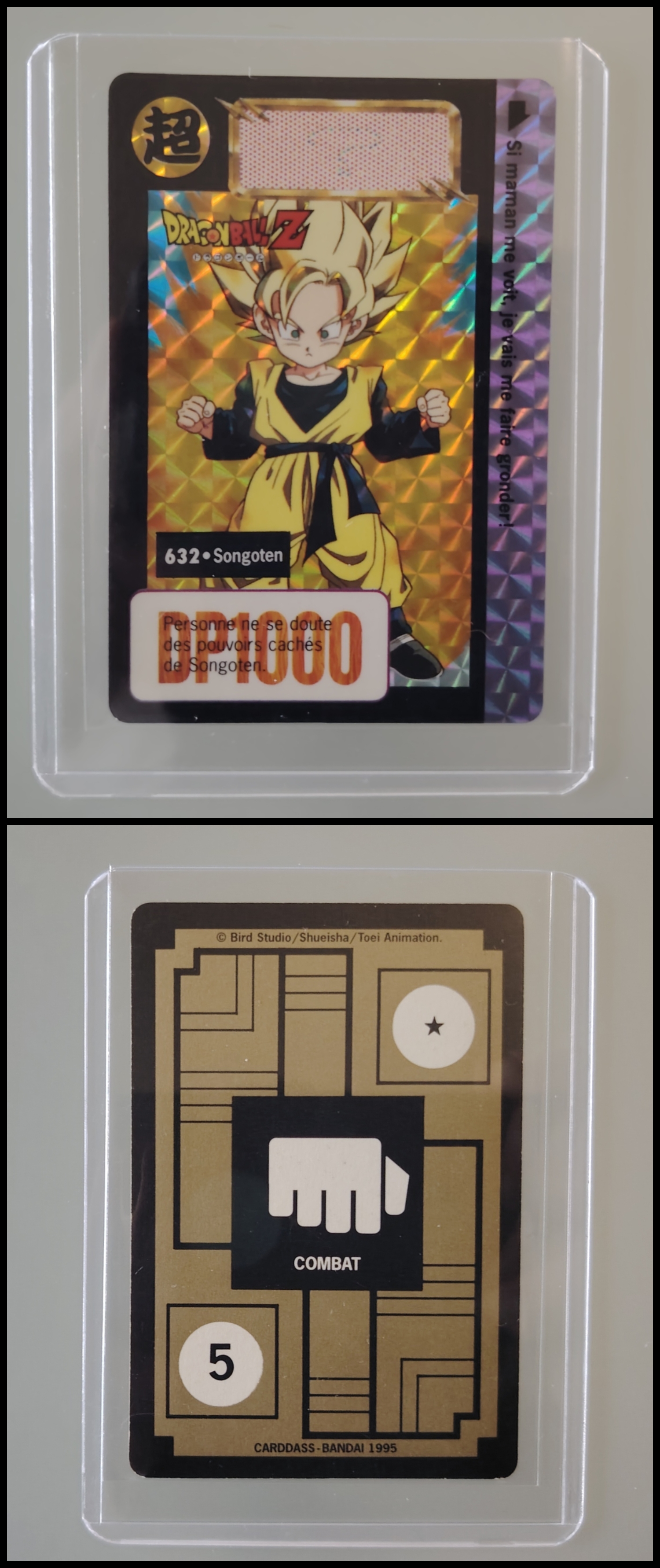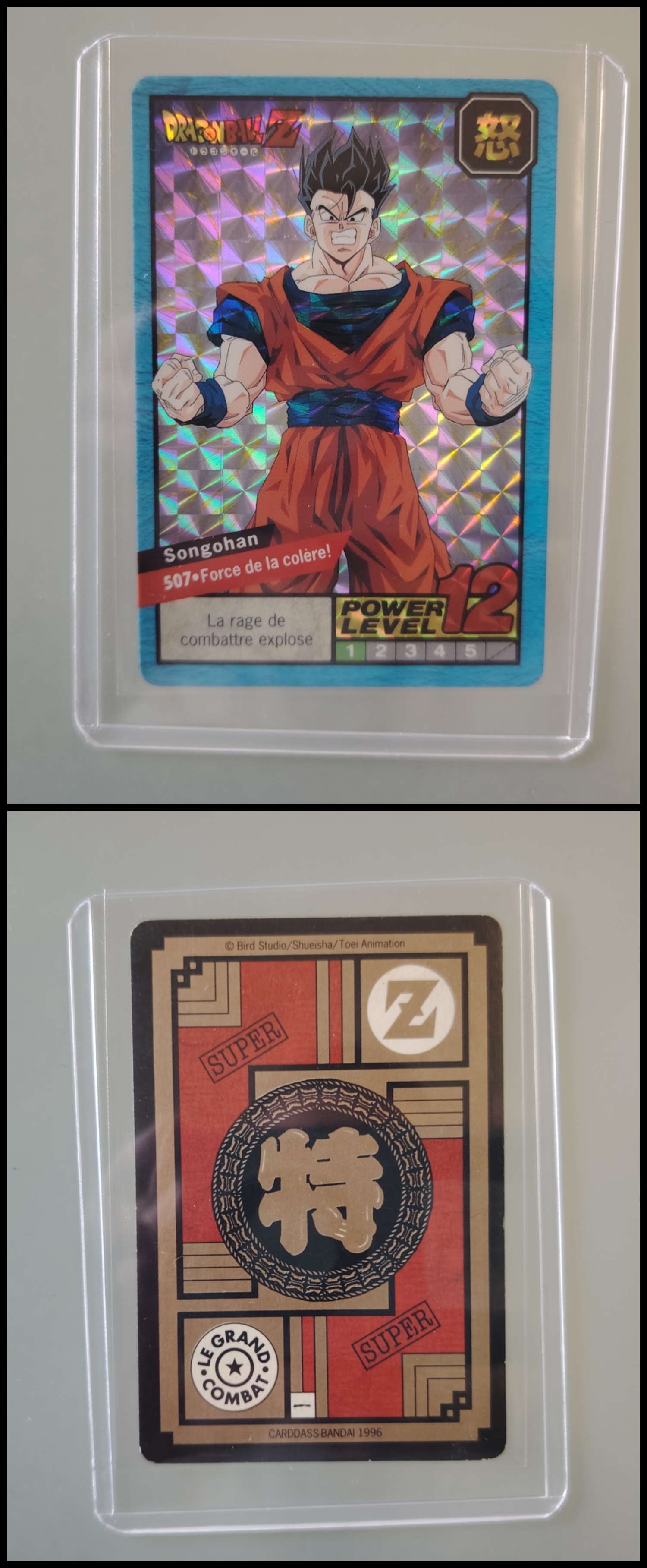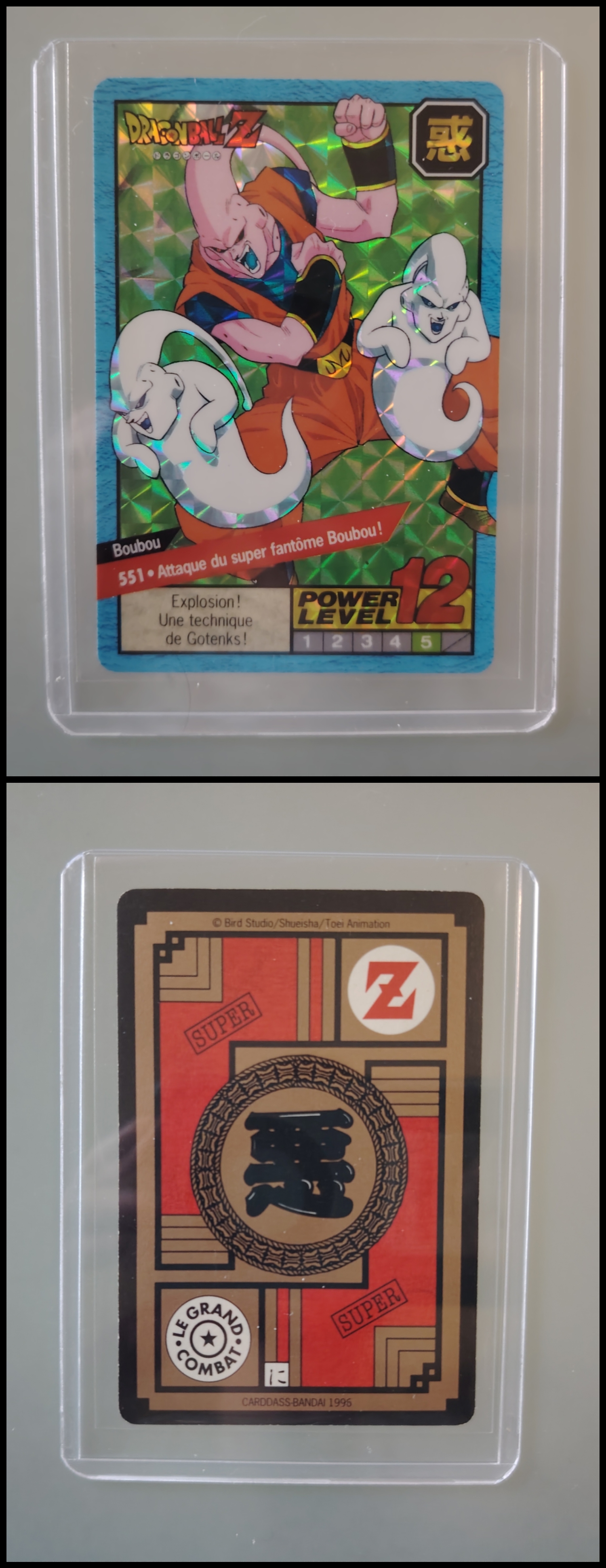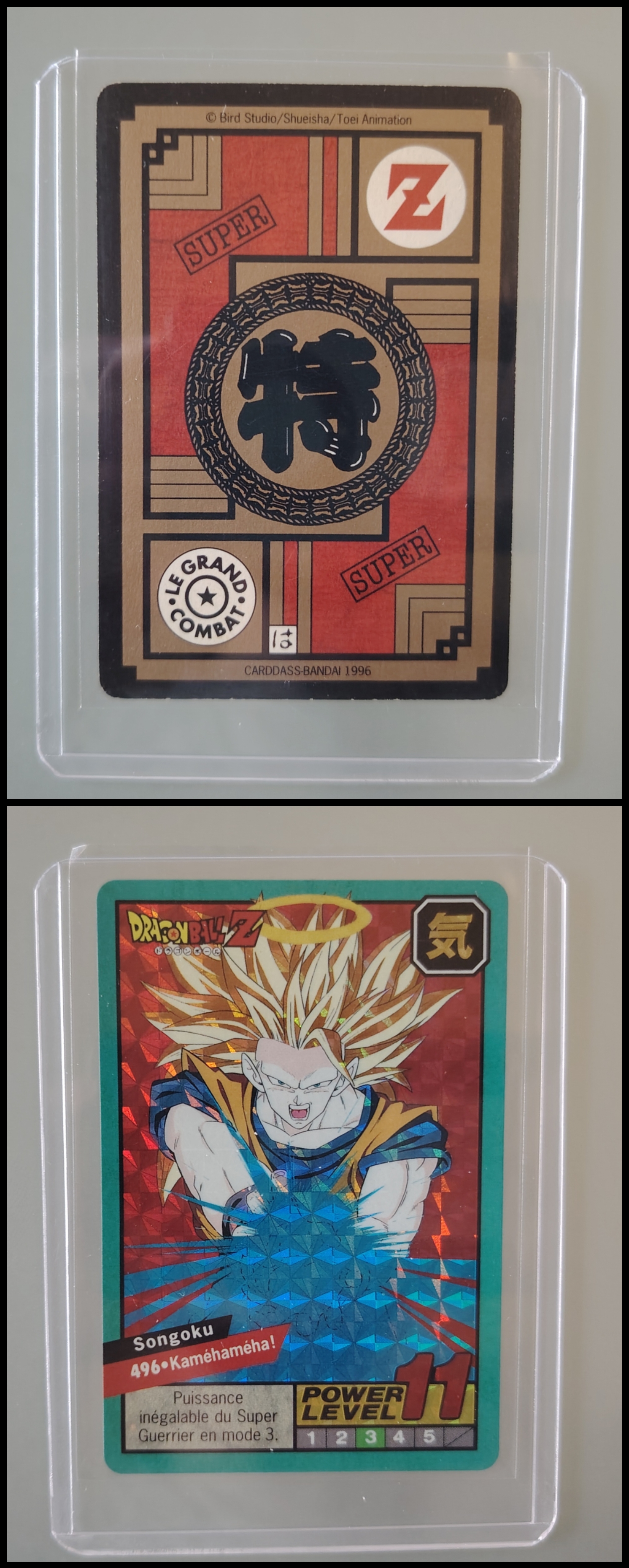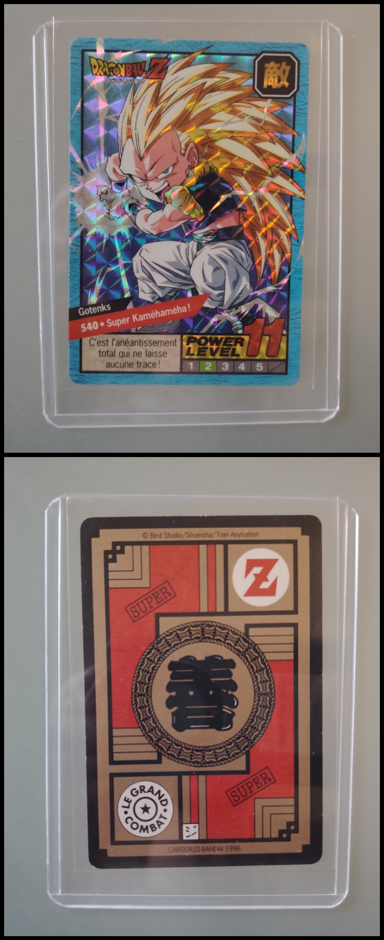 Lot de 247 cartes des séries françaises Carddass et Le Grand Combat (1995 à 1998) + 7 boosters vides + 1 classeur + 1 pocket box + 1 mini classeur, dont voici le détail : - Lot de 36 cartes Carddass Hondan part 16 : HS, 1, 2, 3, 4, Héro : 1, 2, 3, 4, 5, 6, 7, 8, 9, 620, 622, 623, 624, 626, 627, 628, 631 (prism), 632 (prism), 633, 634, 635, 636, 637, 638, 639, 640, 641, 642, 643, 644, 645, année 1995. - Lot de 34 cartes Carddass Hondan part 17 : 5, 6, 7, 9, 10, 12, 13, 14, 15, 16, 18, 19, 20, 21, 22, 23, 24, 25, 26, 27, 28, 29, 30, 31, 32, 33, 34,35, 37, 38 (prism état moyen), 39, 40, 41, 42, année 1995. - Lot de 34 cartes Carddass Hondan part 20 : 127, 128, 129, 131, 132, 133, 134, 135, 136, 137, 138, 139, 140, 141, 142, 144, 145, 146, 147, 148, 149, 150, 152, 153, 156, 157, 158, 160, 161, 162, 163, 164, 165, 166 Année 1996. - Lot de 32 cartes Le Grand Combat part 2 : 485 (Prism), 486, 487, 488, 489, 490, 494, 2 cartes 496 (double prism + face B), 497, 499, 501, 502, 504 507 (prism face B), 508, 509, 511, 512, 514, 515, 516, 517, 518 (prism état moyen), 520, 521, 522, 523, 524, 525, 526 (prism face B état Moyen), 528, année 1996. - Lot de 6 cartes Le Grand Combat part 3 : 540 (Prism), 551(Prism face B), 531, 555, 566, 572, année 1996. - Lot de 25 cartes Le Grand Combat part 4 : HS (état moyen), 575, 576, 578, 580, 582, 583, 586, 587 Prism (Face A / B décollées), 588, 590, 591, 592, 595 (Prism), 599, 601, 604, 606 (Prism), 607, 608, 610, 611, 614, 616, année 1996. - Lot de 10 cartes Le Grand Combat part 5 : 630, 633, 638, 642, 643, 646, 649, 651, 654, 656, année 1996. - Lot de 9 cartes Le Grand Combat part 6 : 668, 677, 684, 686, 688, 691, 693, 698, 703, année 1997. - Lot de 14 cartes part 7 : 710, 711, 712, 717, 721, 722, 723, 728, 729, 735, 736, 740, 746, 747, année 1997. - Lot de 36 cartes Le Grand Combat part 8 : 750, 751, 752, 753, 754, 755, 756, 757, 759, 761, 762, 763, 765, 766, 767, 768, 769, 772, 773, 774, 775, 776, 777 (Hidden Prism), 778, 779, 780, 781, 783, 784, 785, 786, 787, 788, 789, 791, 792, année 1998. - Lot de 11 cartes Le Grand Combat part 9 : 808, 809, 810, 812, 816, 823, 824, 825, 828, 831, 834, année 1998. - Lot de 7 boosters vides Carddass Hondan part 2, 4, 5, 6, 7, 9. - 1 Classeur avec 6 feuilles de rangement de la part 5 de 1996. - 1 boîte pocket Carddass. - 1 mini classeur dépliants. État : Bon état général sauf si mention, chaque cartes est protégées dans une sleeve + toploader. Ce dernier peut éventuellement avoir des traces ou des micros poussières. Veuillez consulter la vidéo pour avoir davantage de visuels, n'hésitez pas a me contacter si vous avez besoin de photos complémentaires.