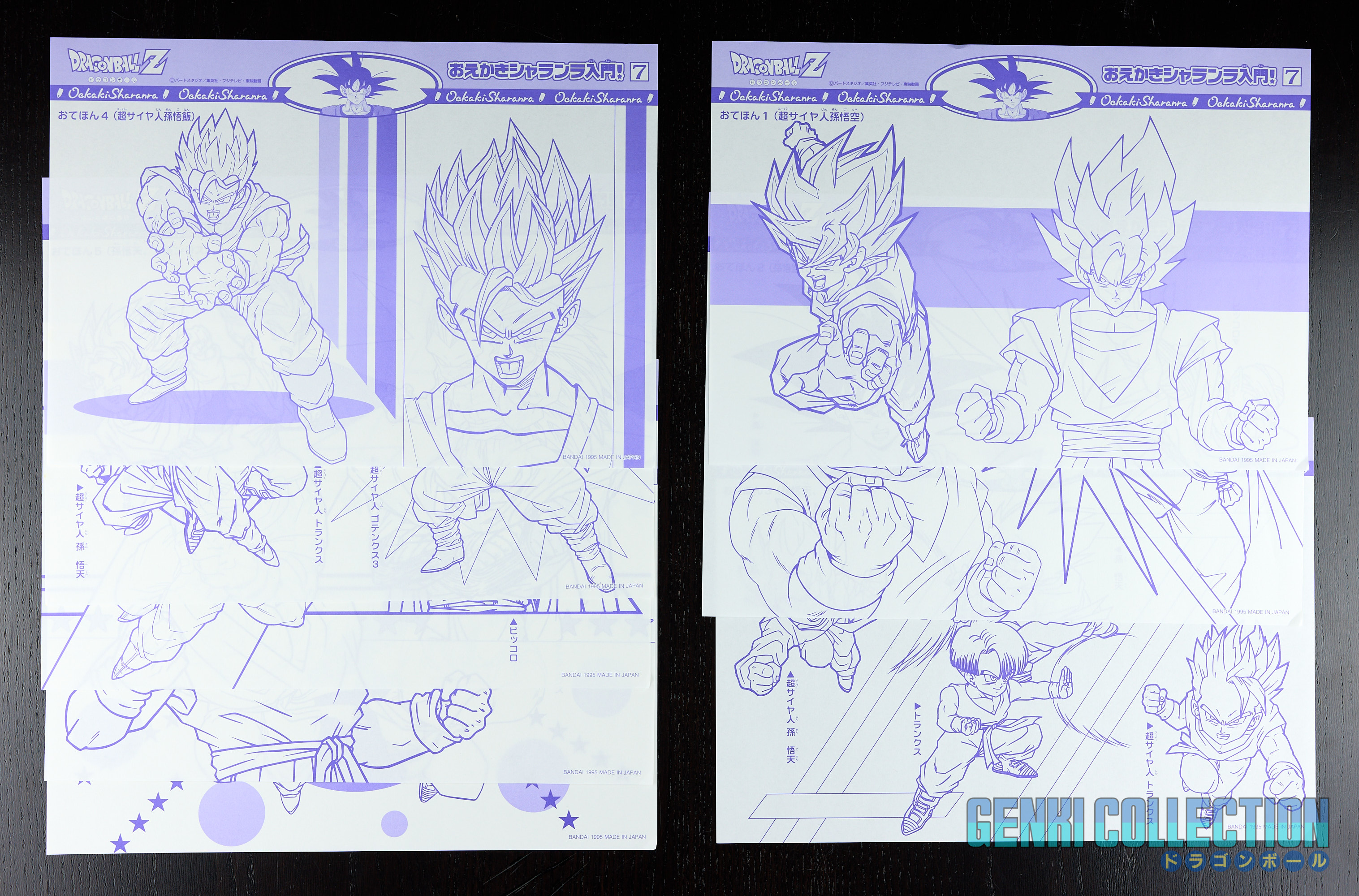 Extension kit à dessiner Dragon Ball Z Oekaki Sharanra se composant d'un set de 8 planches au format A4 à reproduire via un planche lumineuse et de quelques. Bandai 1995.