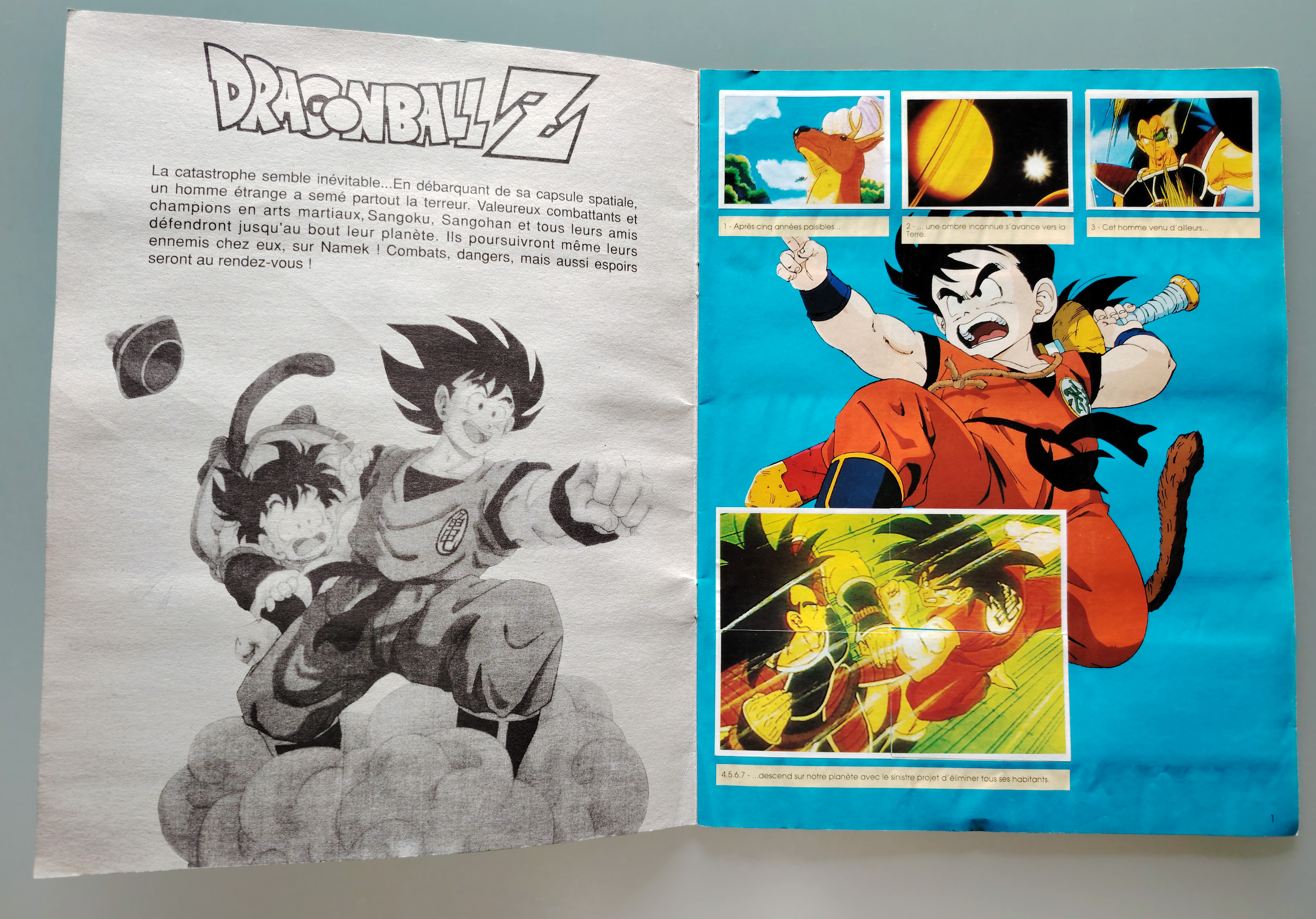 Complete Dragon Ball Z french Panini album + 2 boosters (1991)