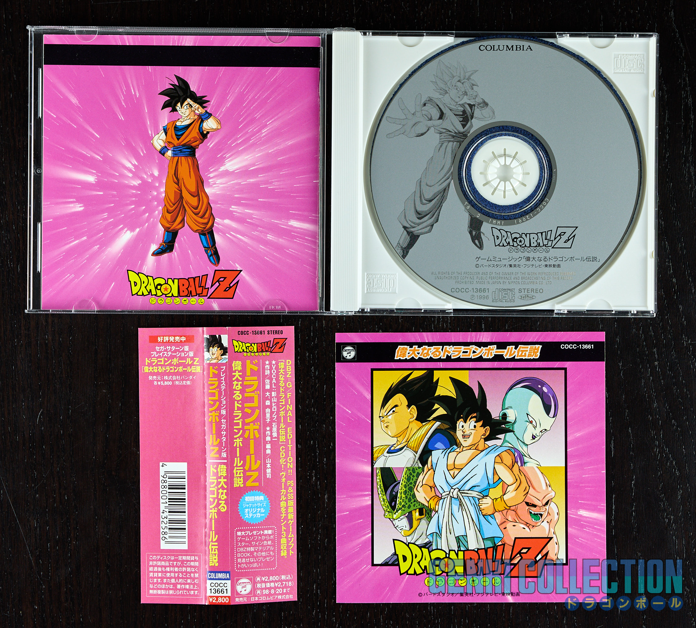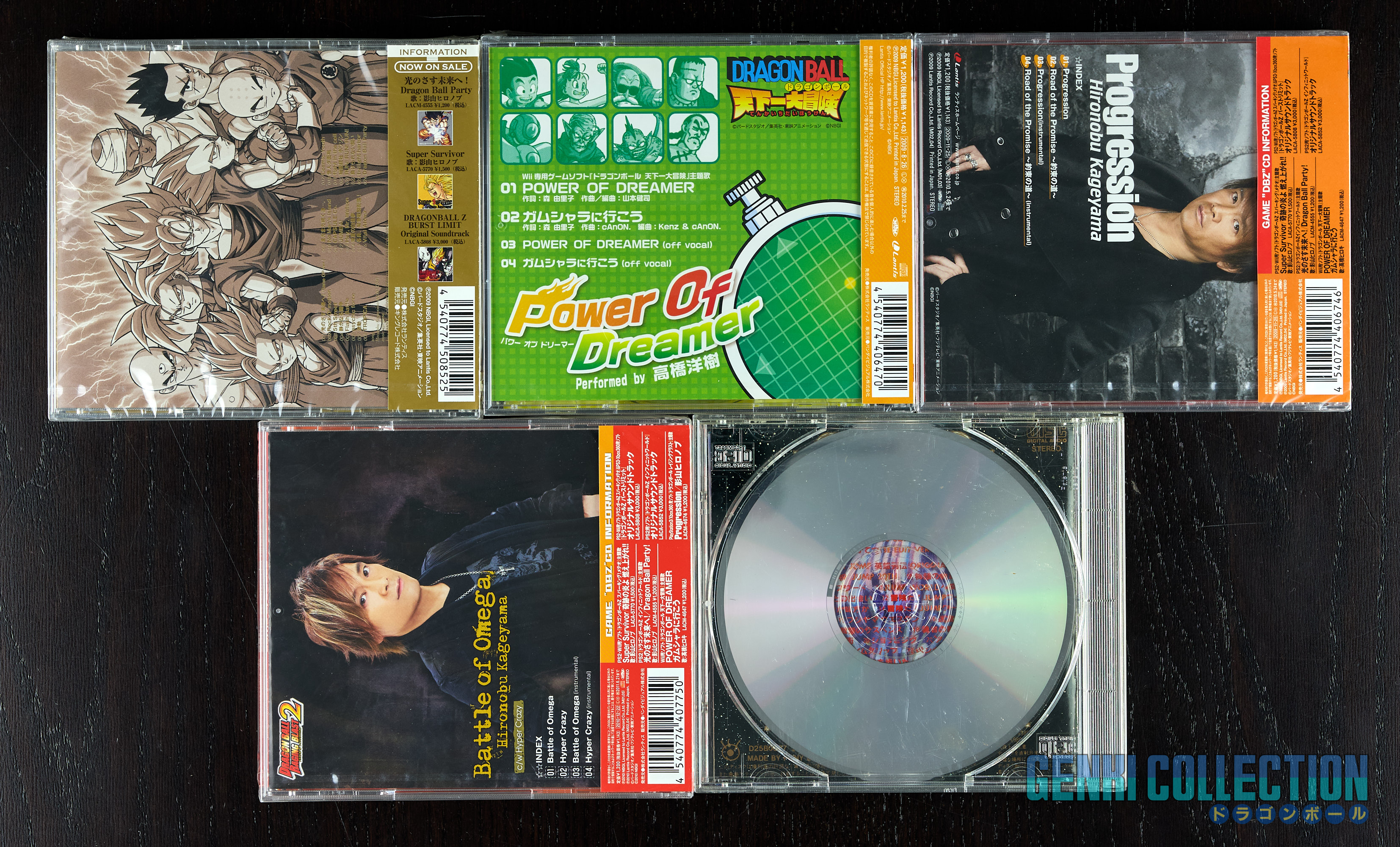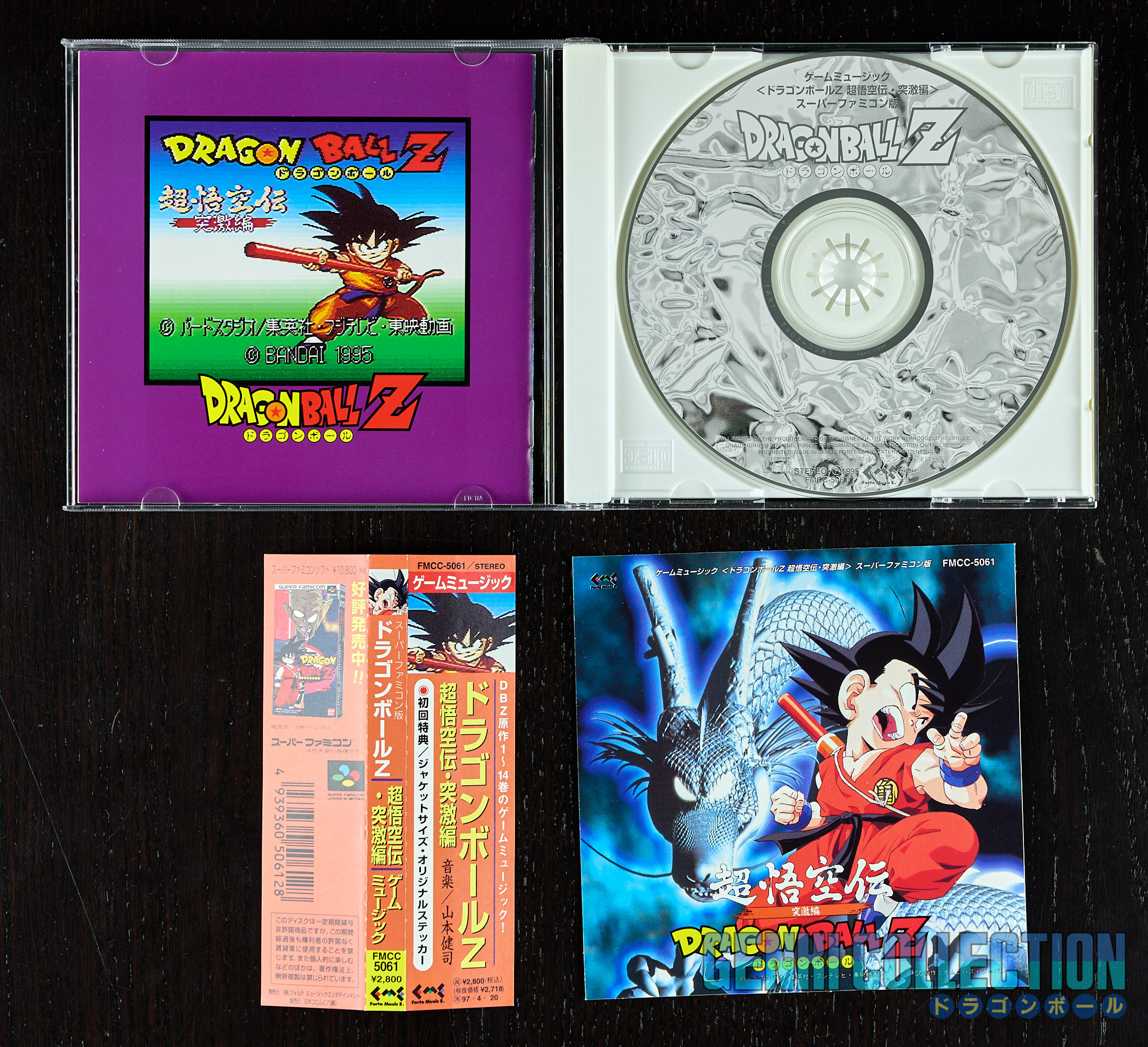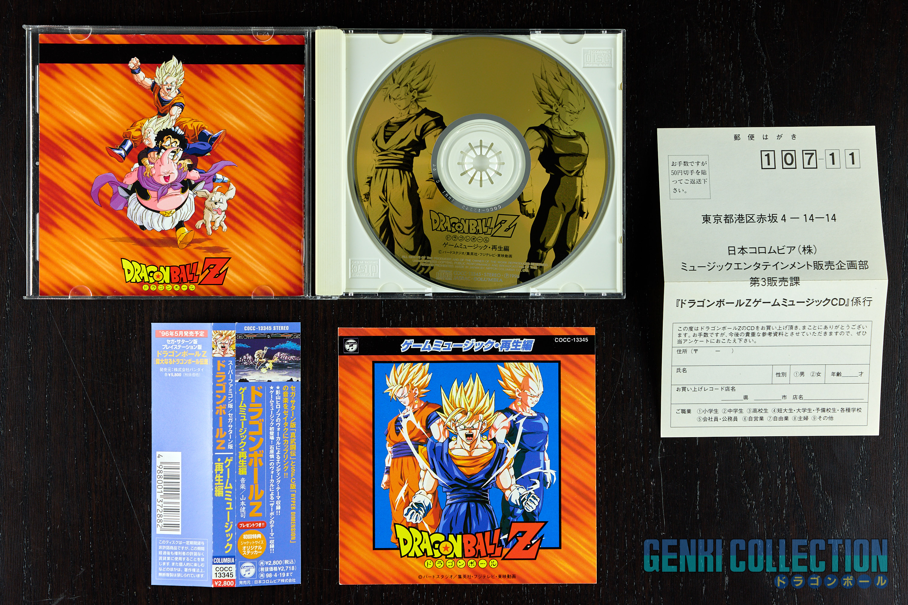 Magnifique set comprenant 20 CD audios Dragon Ball et Dragon Ball Z basés sur les jeux vidéos. Tous les albums sont en excellent état, CD non rayés, livrets présents, ainsi que chaque Obi (spine card). Chaque album est protégé sous sleeve. Le set comprend : - Famicom Jump Hero Retsuden (1989 - Pony Canyon) avec posters + sticker prism + sticker de tranches non décollés. - Dragon Ball Z Gaiden Saiyajin Zetsumetsu Keikaku (1993 - Forte Muscic Entertainment) avec illustration en noir et blanc inédite. - Dragon Ball Z Super Butôden (1993 - Columbia) avec sticker de la jaquette. - Dragon Ball Z Super Butôden 2 (1993 - Forte Music Entertainment) avec illustration inédite en noir et blanc et sticker de la jaquette. - Dragon Ball Z Super Gokû Den Totsugeki Hen (1995 - Forte Music Entertainment) avec sticker de la jaquette. - Dragon Ball Z Game Music Kakusei Hen (1995 - Columbia) avec sticker de la jaquette. - Dragon Ball Z Game Music Saisei Hen (1996 - Columbia) avec sticker de la jaquette. - Dragon Ball Z Game Music Tanjô Hen Ultimate Battle 22 (1995 - Forte Music Entertainment) avec sticker de la jaquette. - Dragon Ball Z Idainaru Dragon Ball Densetsu (1996 - Columbia) avec sticker de la jaquette. - Dragon Ball Z Final Bout Soundtrack (1997 - Zain Records). - Dragon Ball Z & Z2 Original soundtrack (2005 - Team Entertainment) avec DVD Bonus des coulisses de la réalisation du clip du jeu. Dragon Ball Z3 Ore wa Tokoton Tomaranai!! - Kusuburu Heart ni Hi o Tsukero!! (2005 - Team Entertainment). - Dragon Ball Z 3 Original soundtrack (2005 - Team Entertainment). - Super Survivor (2008 - Lantis). - Dragon Ball Z Burst Limit Original soundtrack (2008 - Lantis). - Dragon Ball Z Infinite World Hikari no Sasu Mirai he! (2008 - Lantis). - Dragon Ball Z Infinite World Original soundtrack (2009 - Lantis). - Dragon Ball Power of Dreamer (2009 - Lantis). - Dragon Ball Raging Blast Progression (2009 - Lantis). - Dragon Ball Raging Blast Battle of Omega (2010 - Lantis).