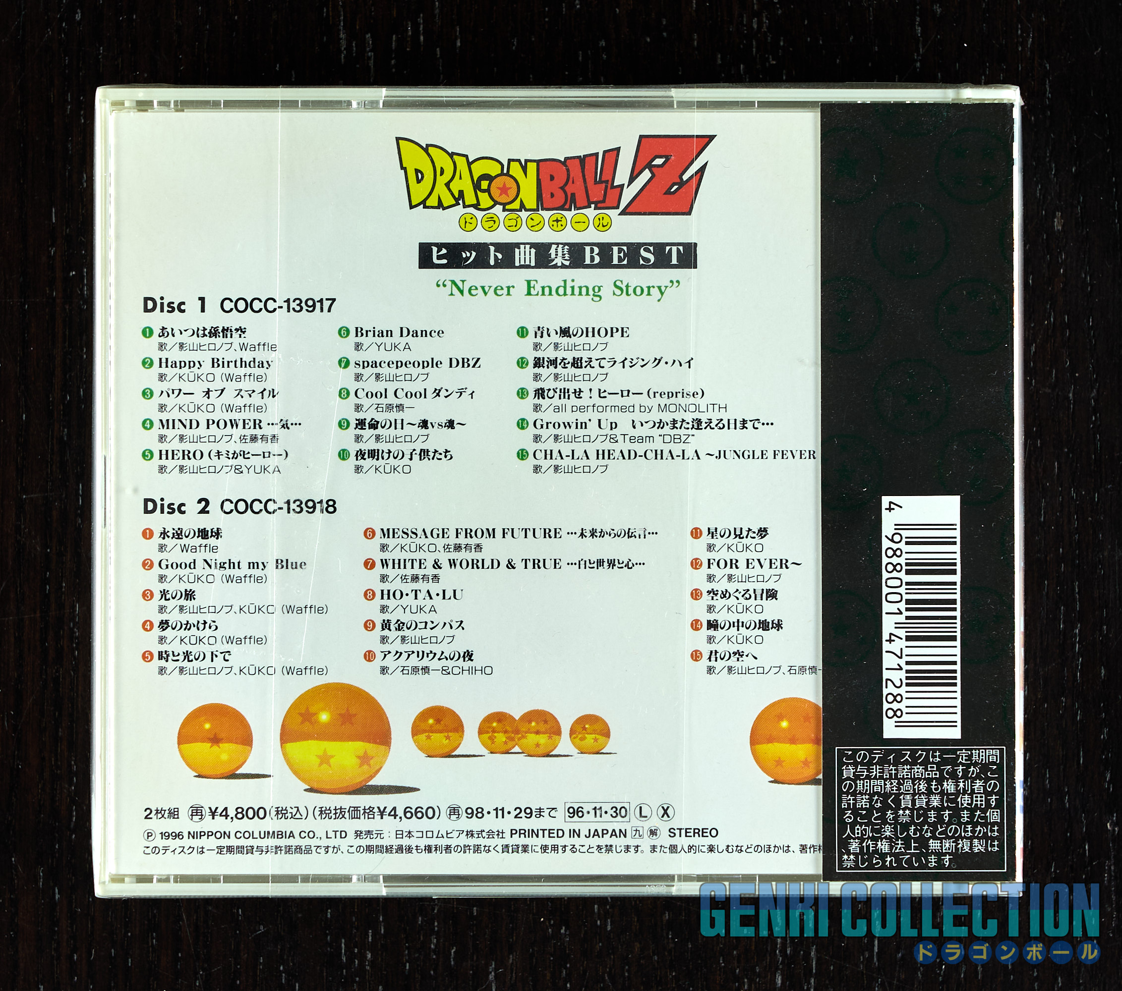 Lot comprenant 5 albums + 1 coffret de sélections musicales Dragon Ball Z, ainsi que des CD dédiés à des remix, tous en excellent état avec Obi, dont voici le détail : - Dragon Ball Z Book'n CD Series avec couverture rigide (très dur à trouver en très bon état, ce qui est le cas ici) et livret inclus. (1991 - Columbia). - Digital Dragon Ball The World. (1994 - Columbia). - Dragon Ball Z Music Fantasy. (1995 - Forte Music Entretainment). - Dragon Ball Z The Best Selections. (1995 - Forte Music Entretainment). - Dragon Ball Z Hitto Kyokushû BEST "Never Ending Story" 2 discs (1996 - Columbia) - Dragon Ball Z Best Remix 2006½ Special. (2006 - Columbia).