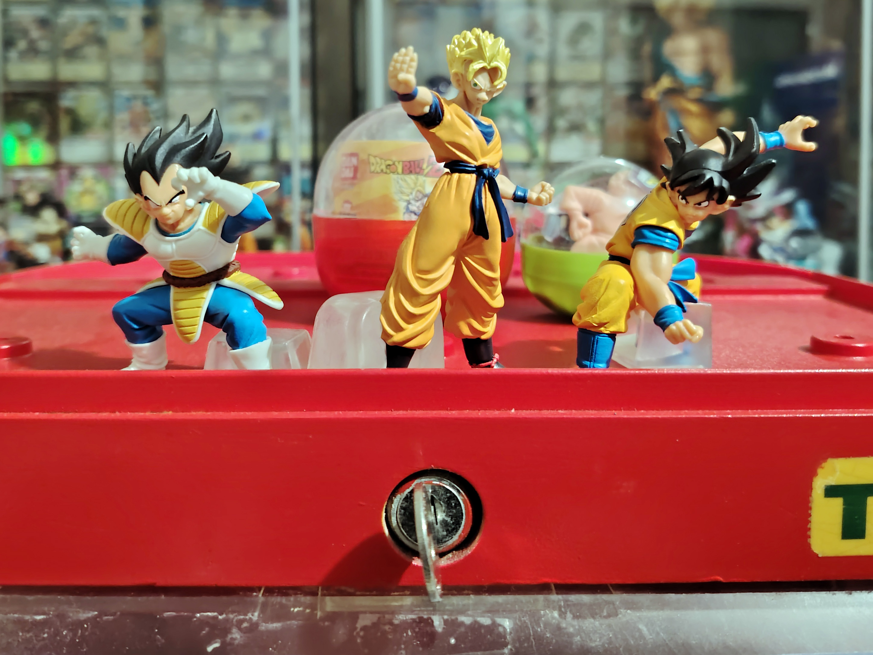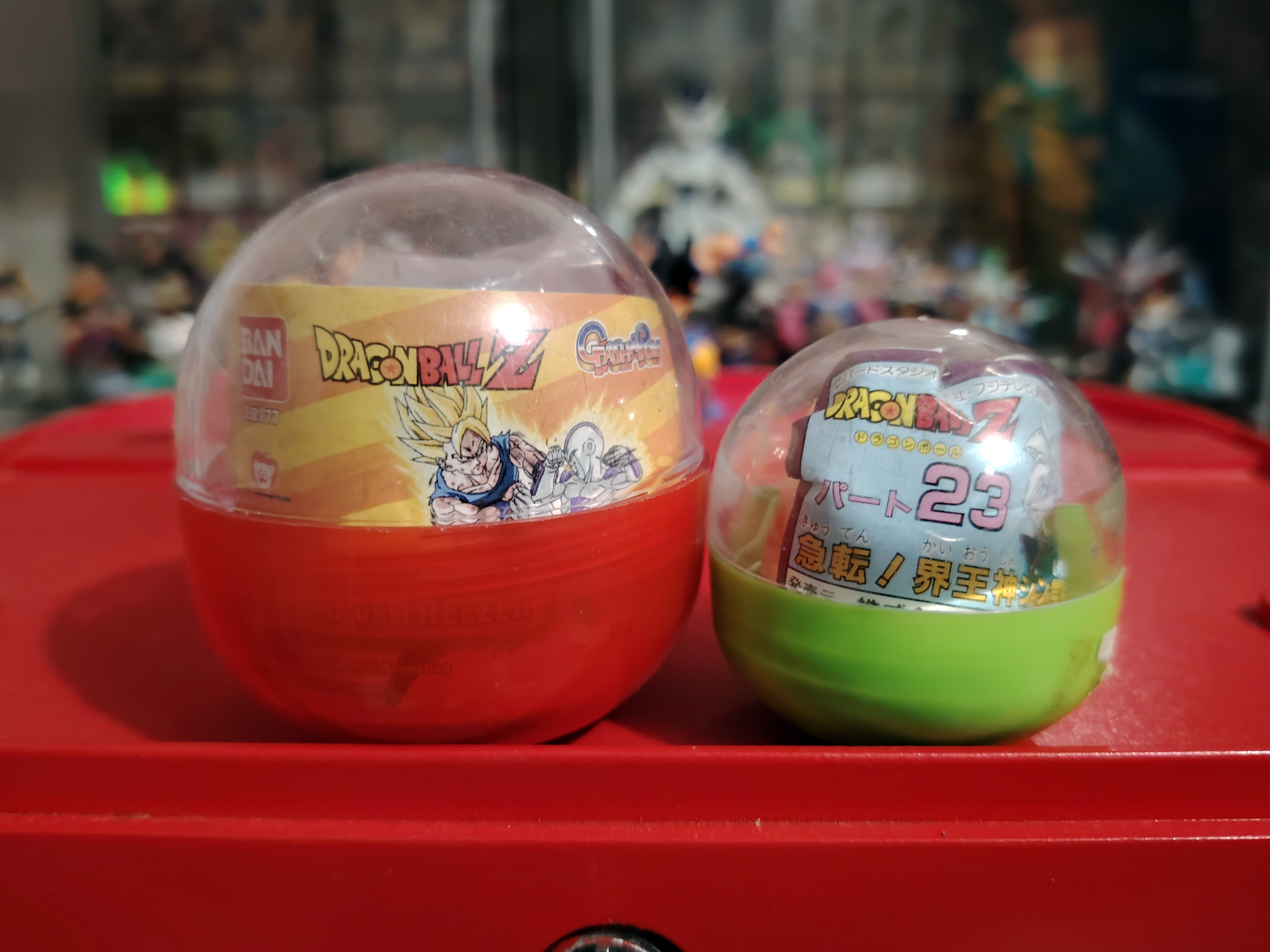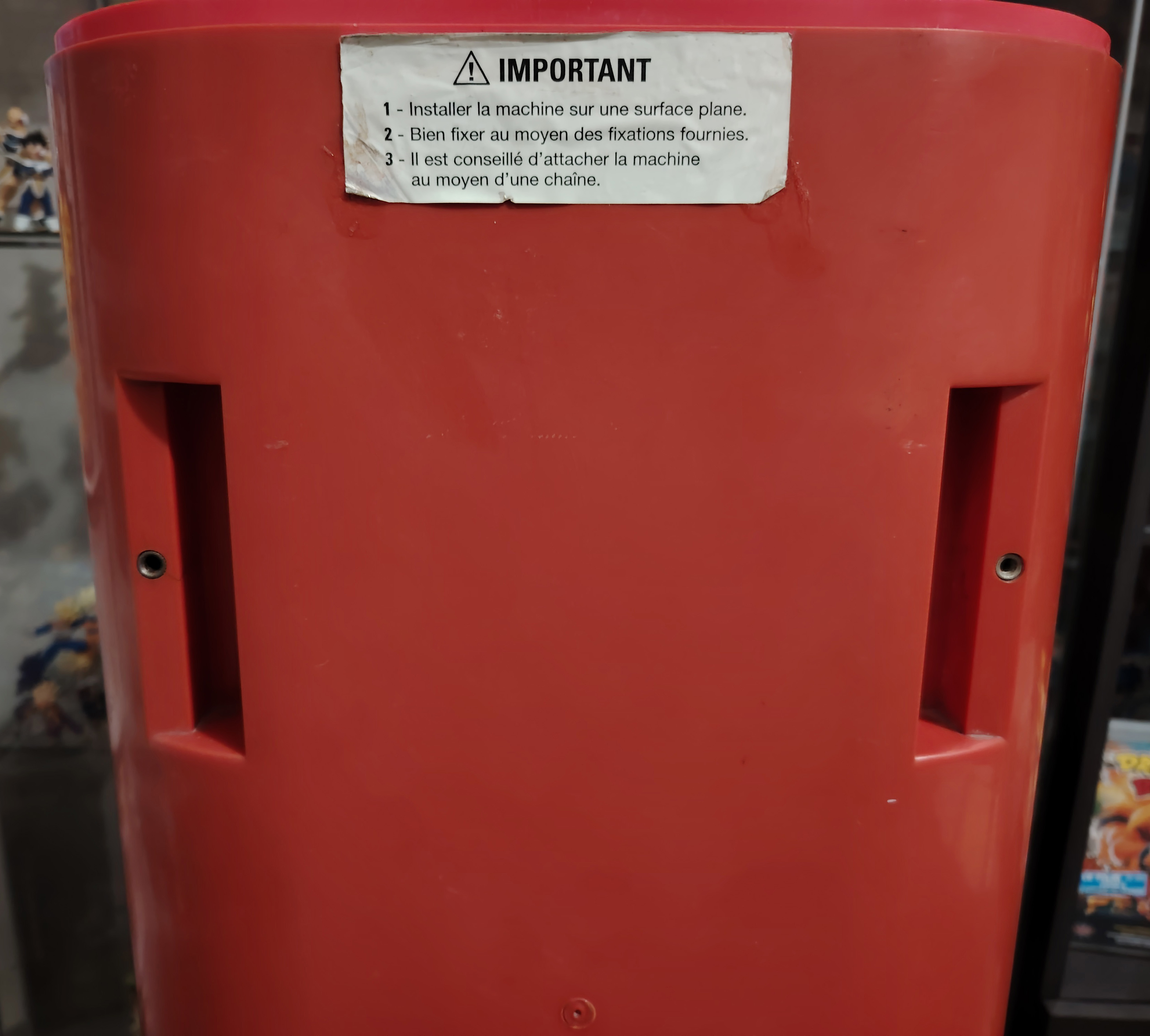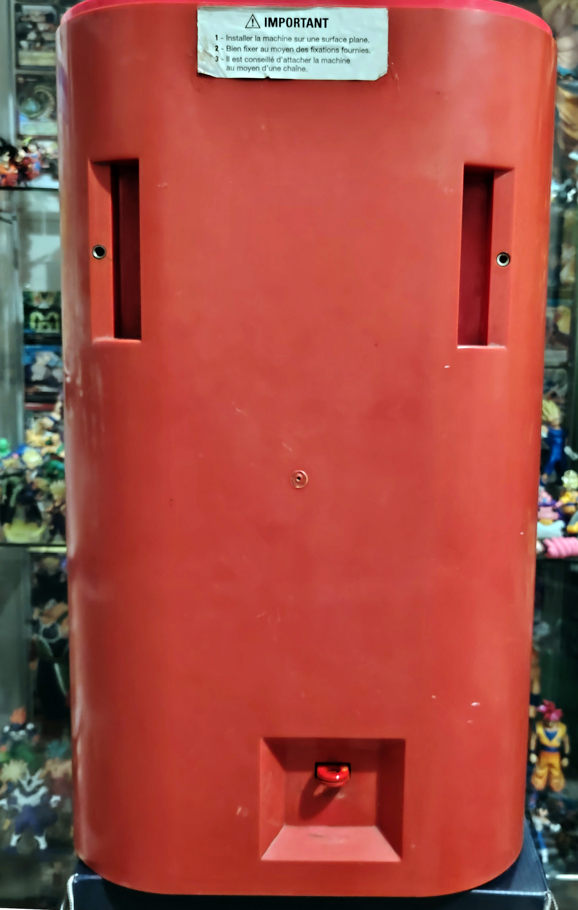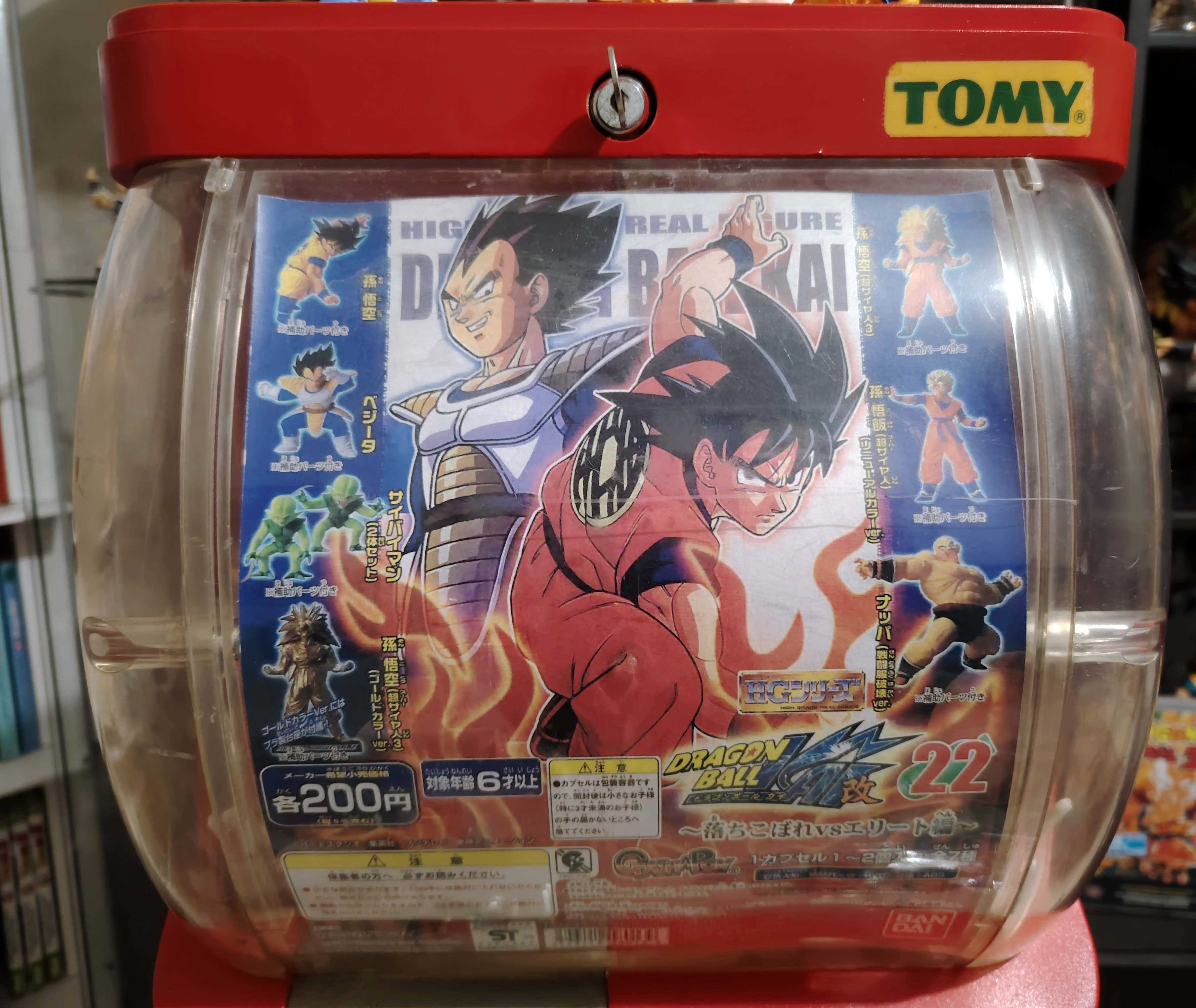 Vending machine (distributeur) à Gashapon Tomy sorti au début des années 2000 et en bon état général. Il est fourni avec 2 clés d'origine ainsi que l'affiche pour la Sortie des Gashapons Dragon Ball Kai HG part 22 + 3 Gashapons de la gamme HG 22 visibles sur l'affiche : Goku, Vegeta, Gohan du futur Super Saiyan, ainsi qu'une boule avec une figurine de Goku et Freezer scellée, une autre boule comprenant Satan et Erasa, et 5 boules vides.