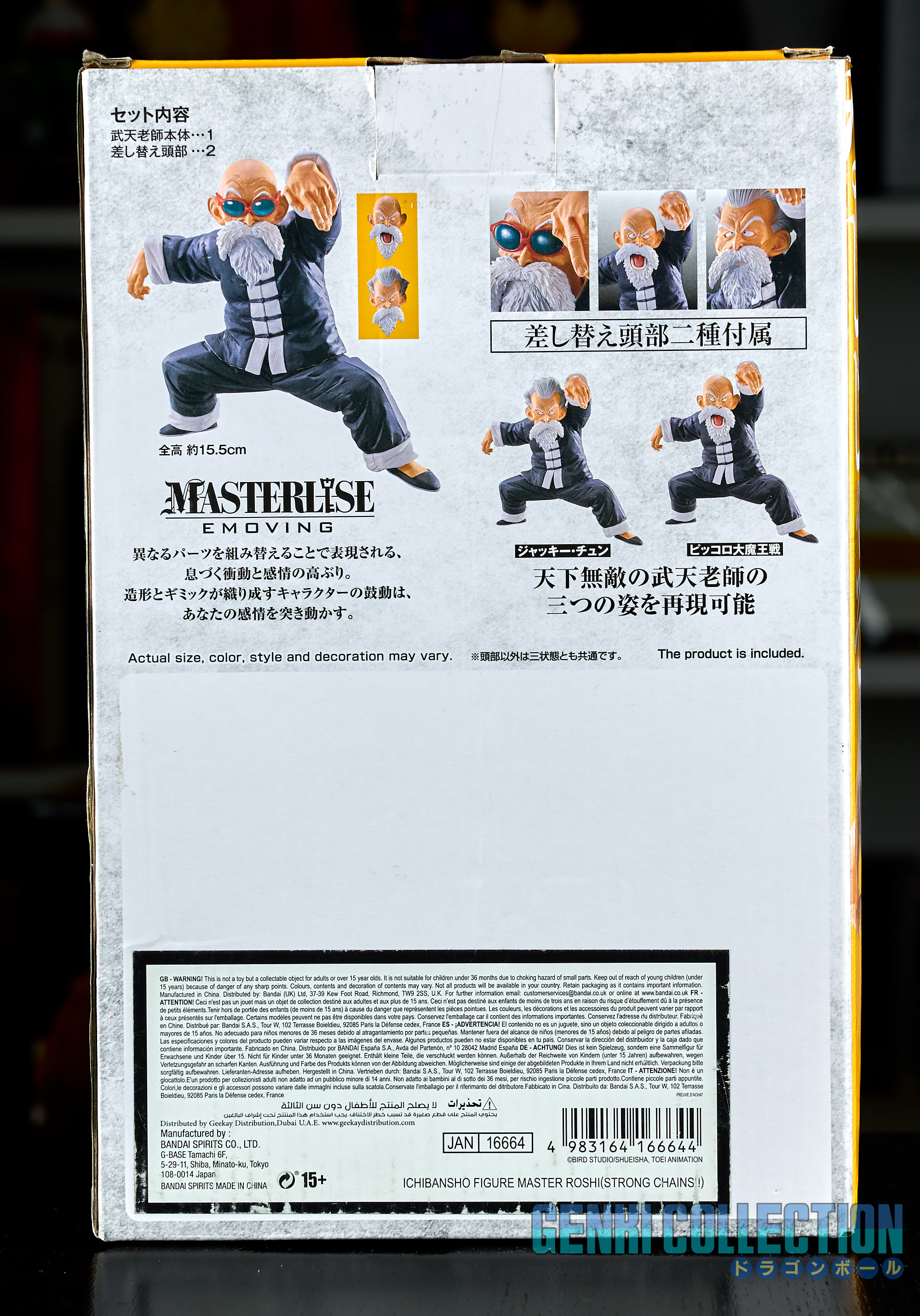 Lot de 2 figurines en boîtes Ichibansho de la série Dragon Ball "Stong Chains!!" sortie en 2020. Le lot inclus Muten Rôshi (Kame Sennin) avec ou sans lunettes et une tête de Jacky Chun et Kuririn. La boîte est Muten Rôshi est un peu abîmée, Kuririn est en très bon état.