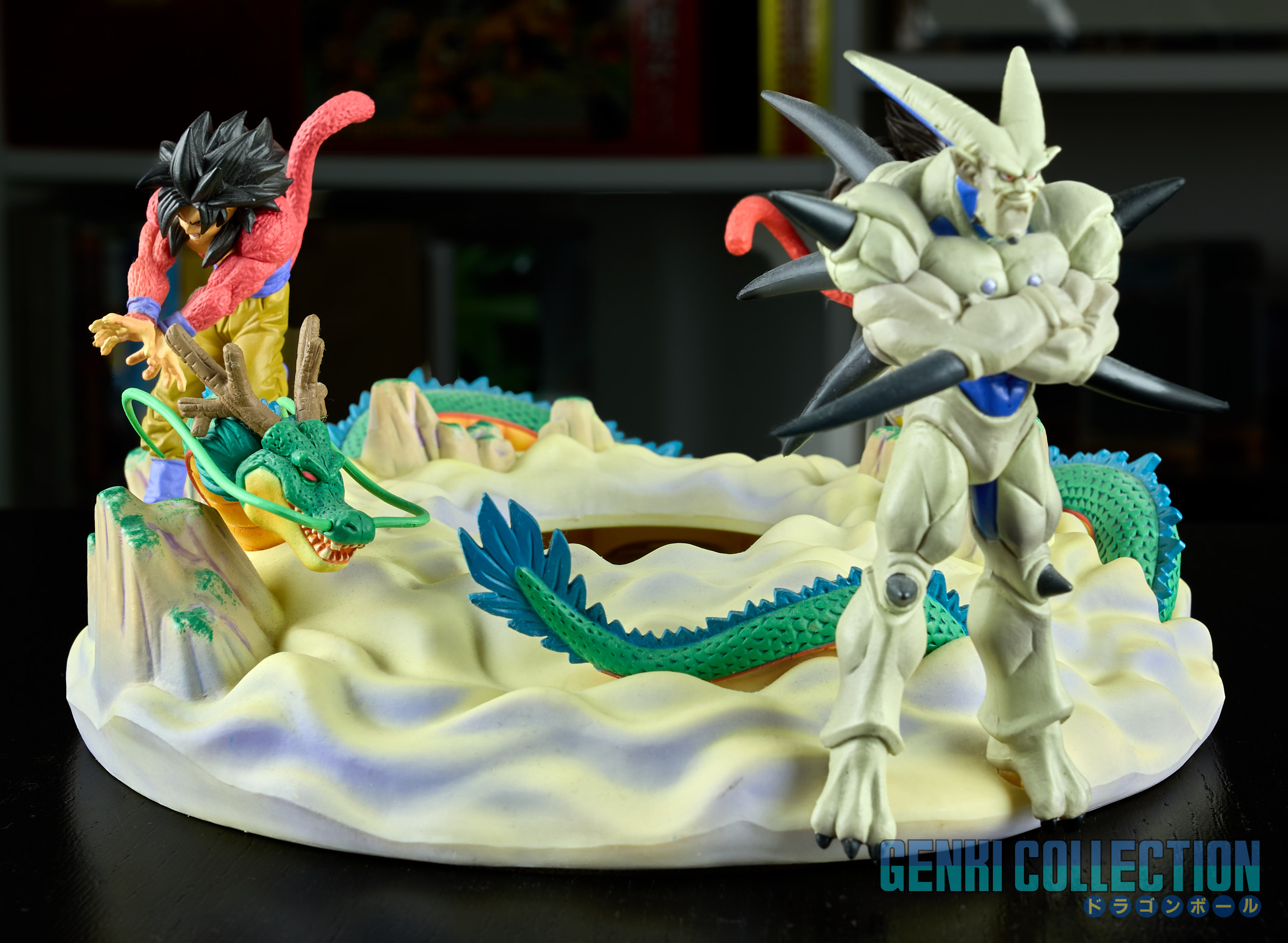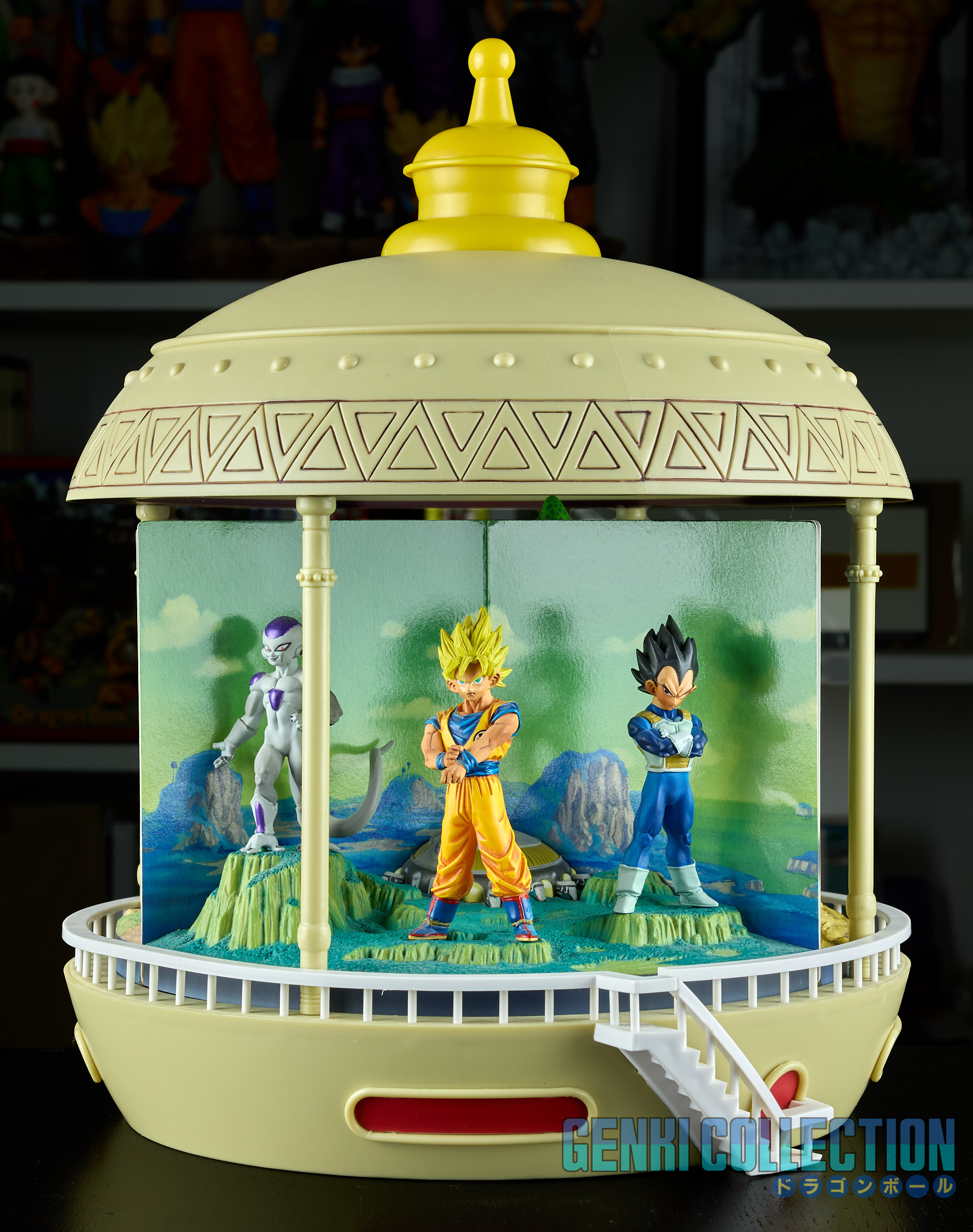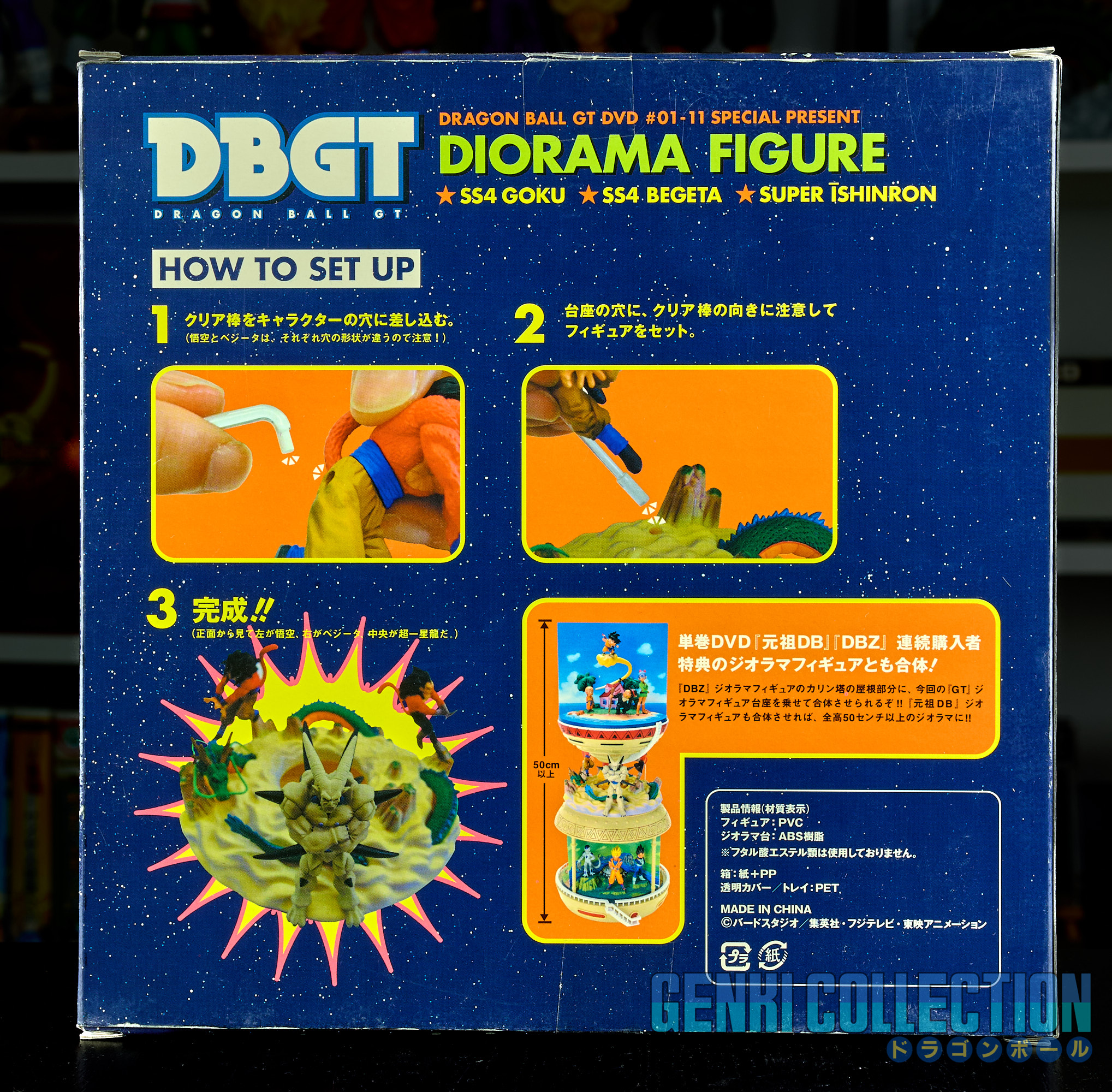 - Diorama Dragon Ball GT (Gokû Super Saiyan 4, Vegeta Super Saiyan 4 et Î Shinron ou Omega Shenron), celui-ci peut s'insérer entre la Tour Karin et le palais de Kami-sama.