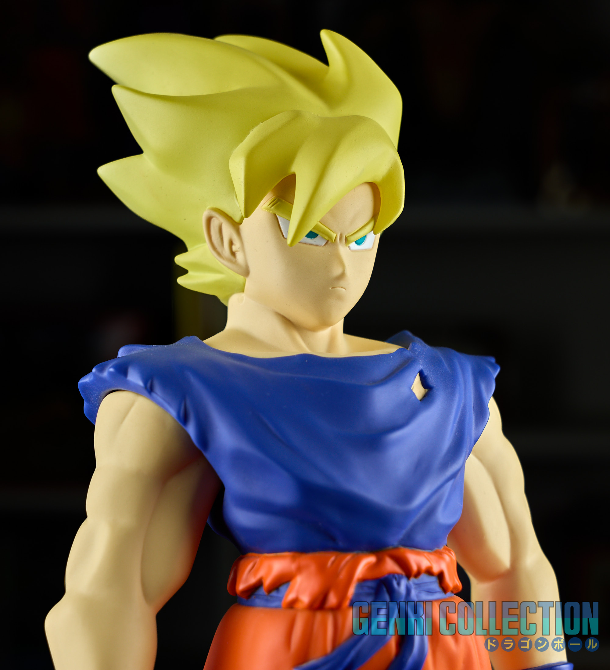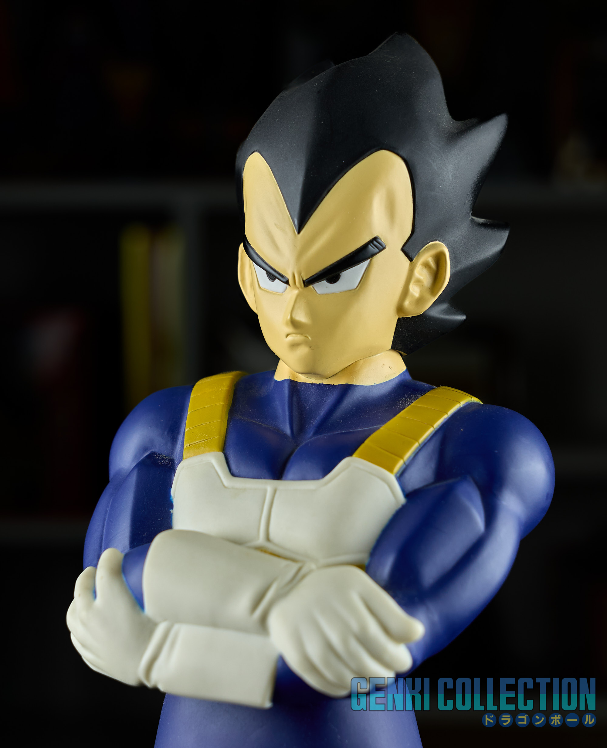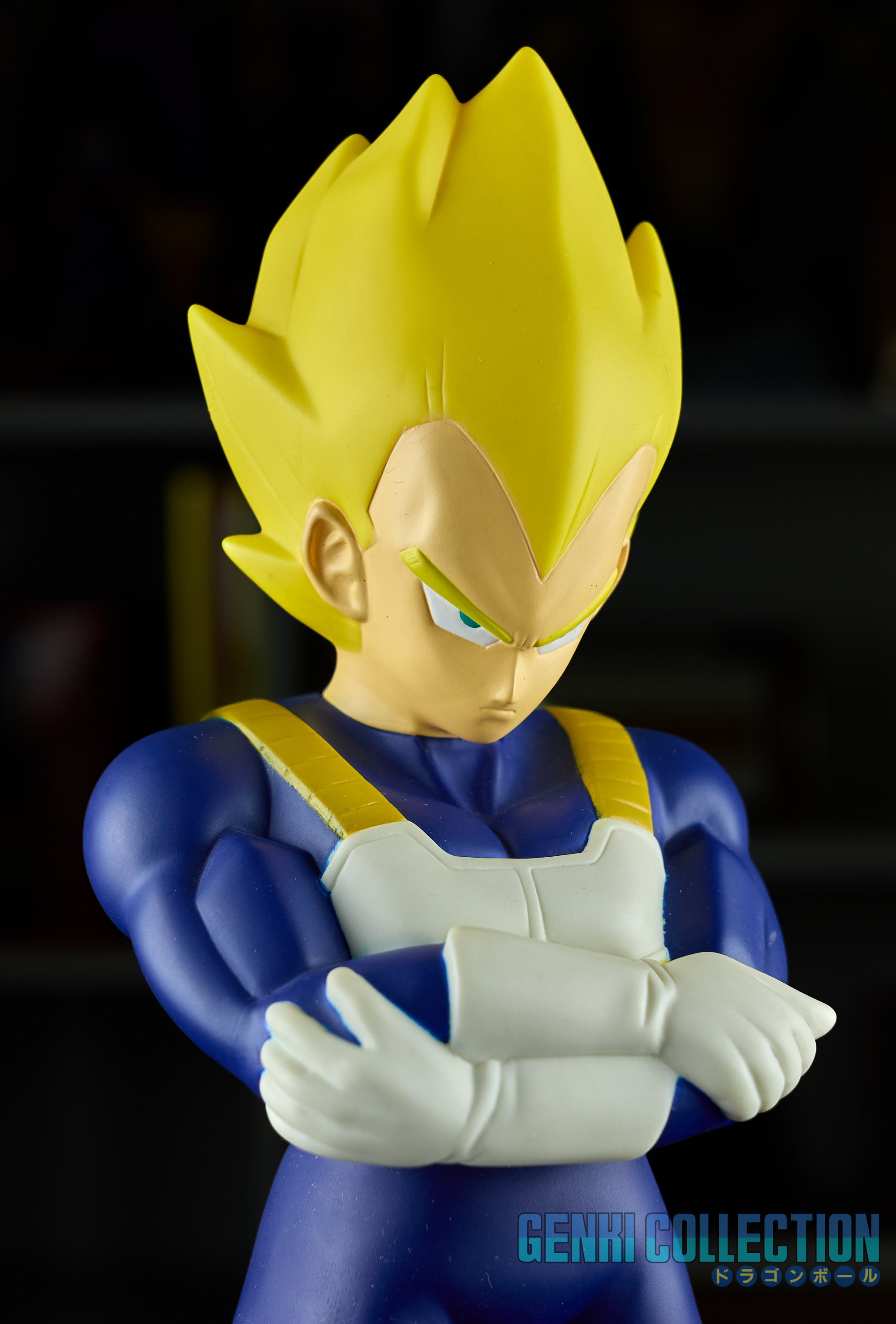 Lot of 5 soft vinyl figures (approximately 30 cm) "Big Sofubi" released in 2003, featuring Super Saiyan Goku, Vegeta, Super Saiyan Vegeta, Trunks, and Piccolo. Good condition with some minor cosmetic flaws; provided with their bases (optional to use).