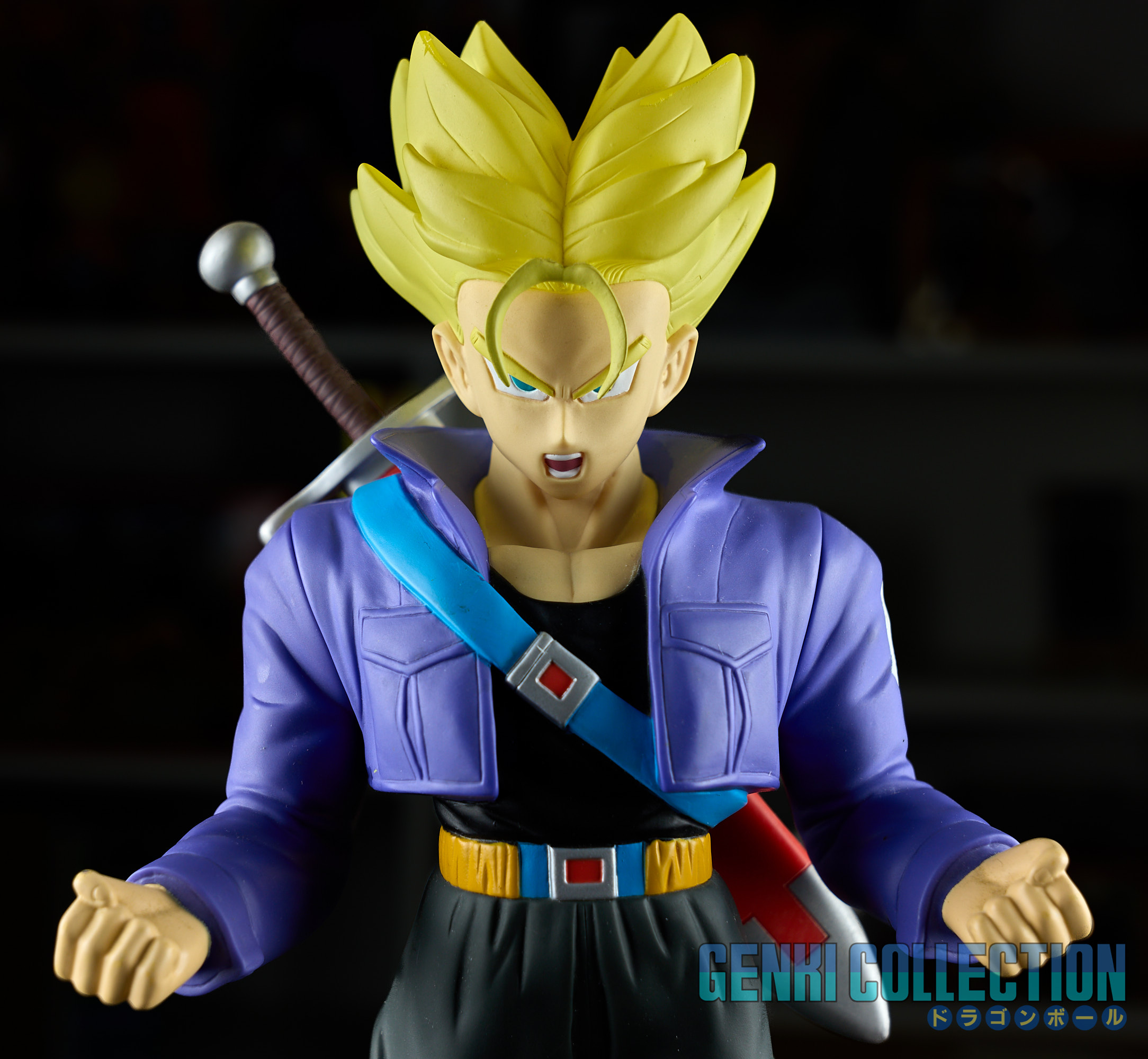 Lot de 5 figurines en vinyle d'environ 30 cm "Big Sofubi" sorties en 2003, représentant les personnages de Gokû Super Saiyan, Vegeta, Vegeta Super Saiyan, Trunks et Piccolo. Bon état avec quelques petits défauts esthétiques, fournies avec leur socle (facultatifs à utiliser).