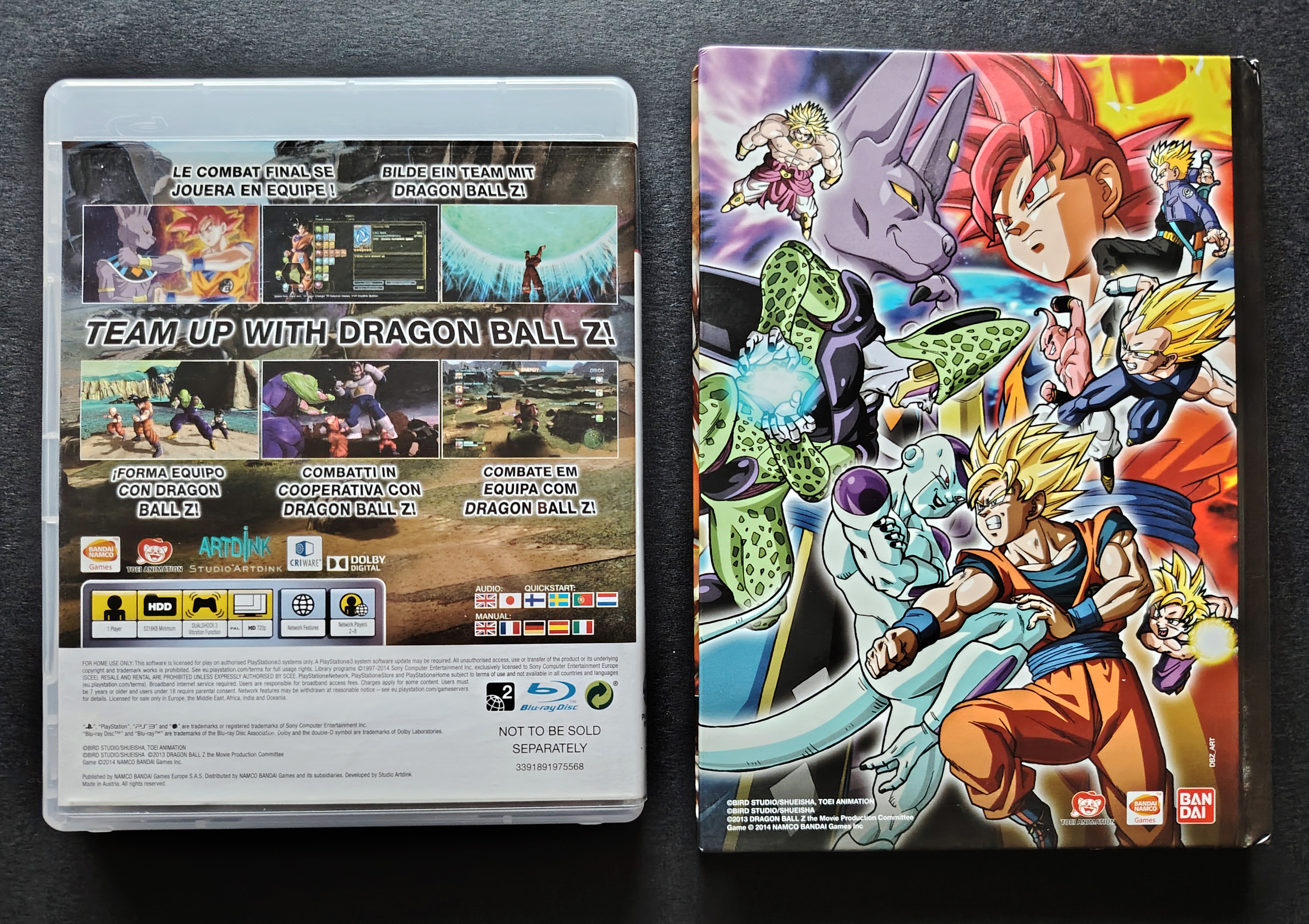 Jeu Plasytation 3 Dragon Ball Z : Battle of Z + Art Book, version Française, développeur Artdink, éditeur Namco Bandai, sorti en 2014. Les coins de l'Art Book sont légèrement abîmés.