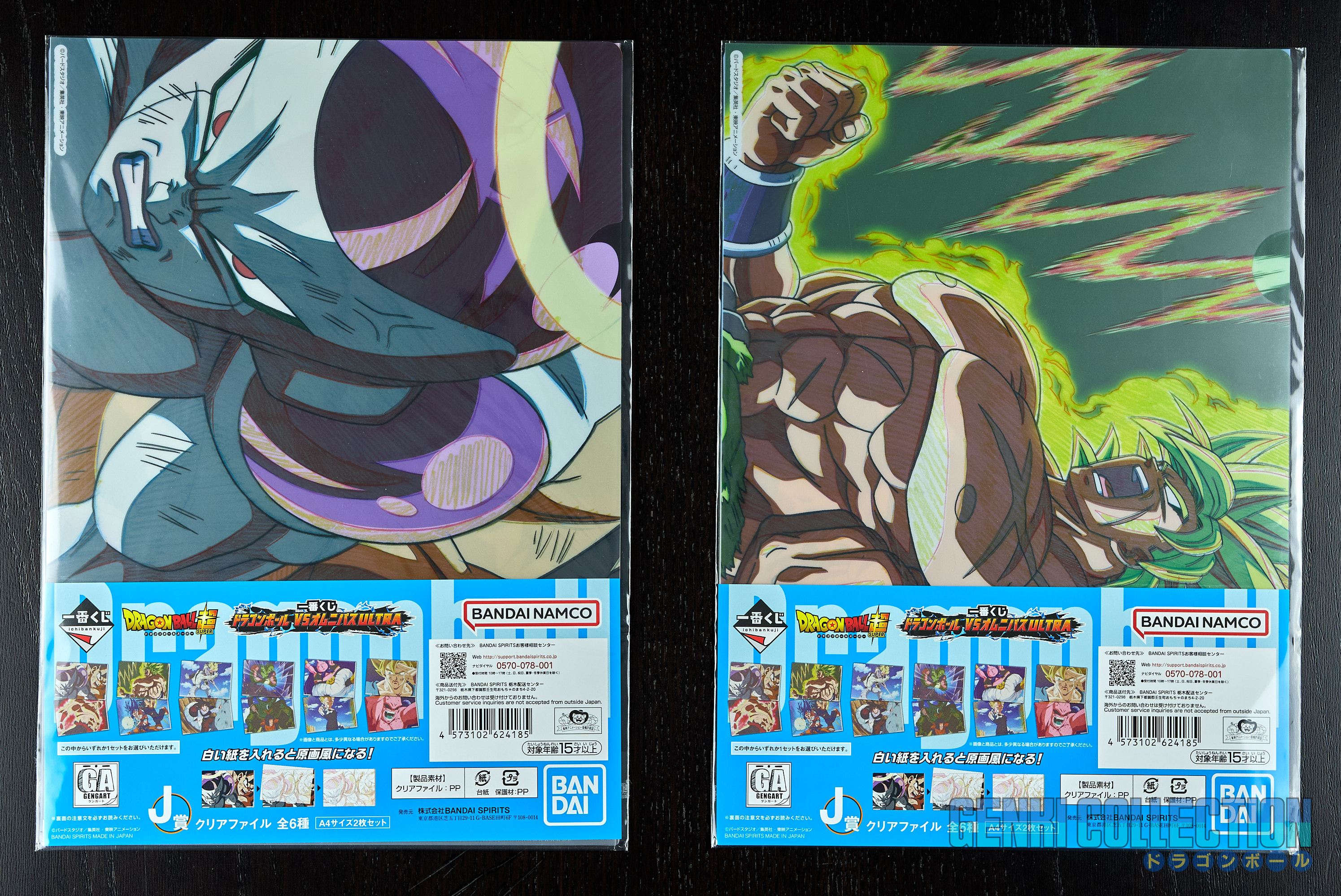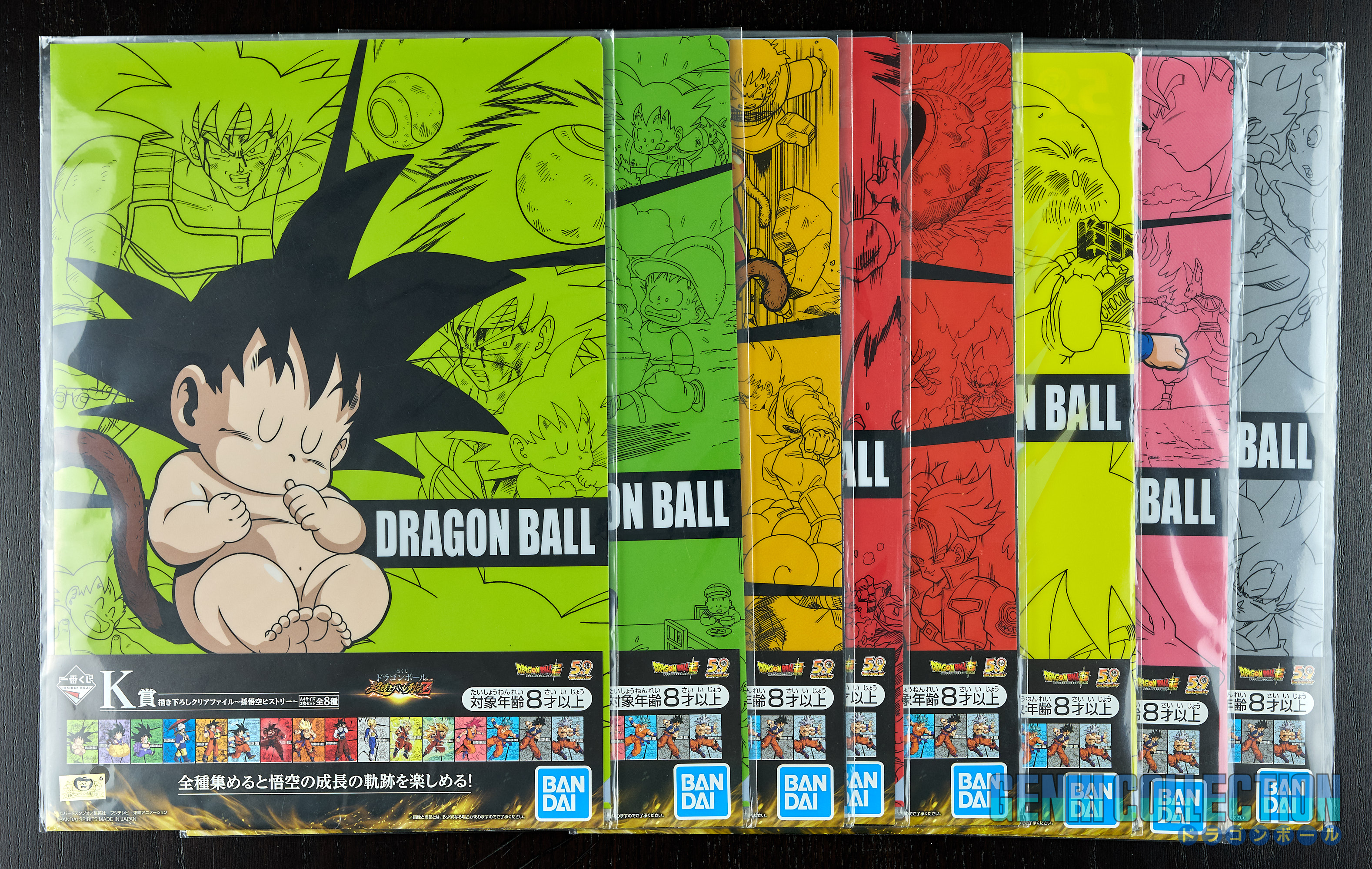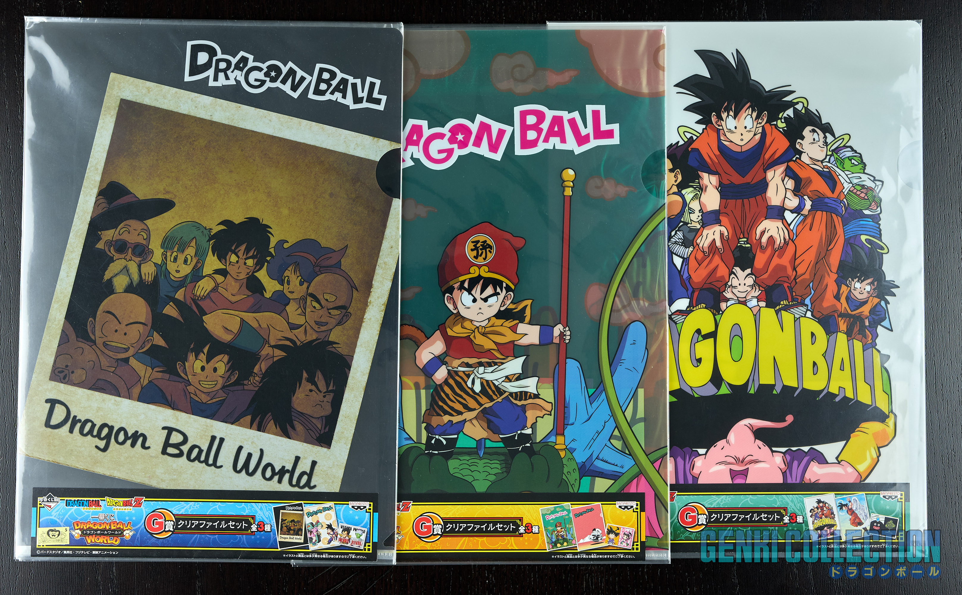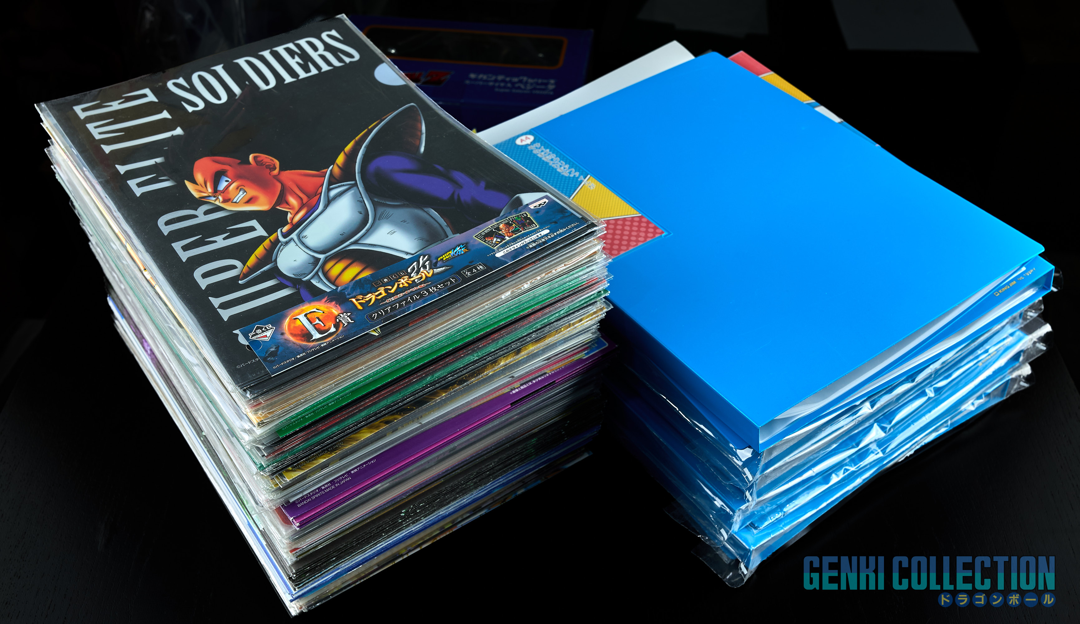 Set of 346 Dragon Ball clear files (plastic folders in A4 or A5 format for some), consisting of 325 clear files distributed across 20 Ichiban Kuji lottery full sets (2011 to 2024) and 21 independent clear files (individual or "Not for Sale"), all in excellent condition in their original blisters (except for 2 or 3 of them). Set details: