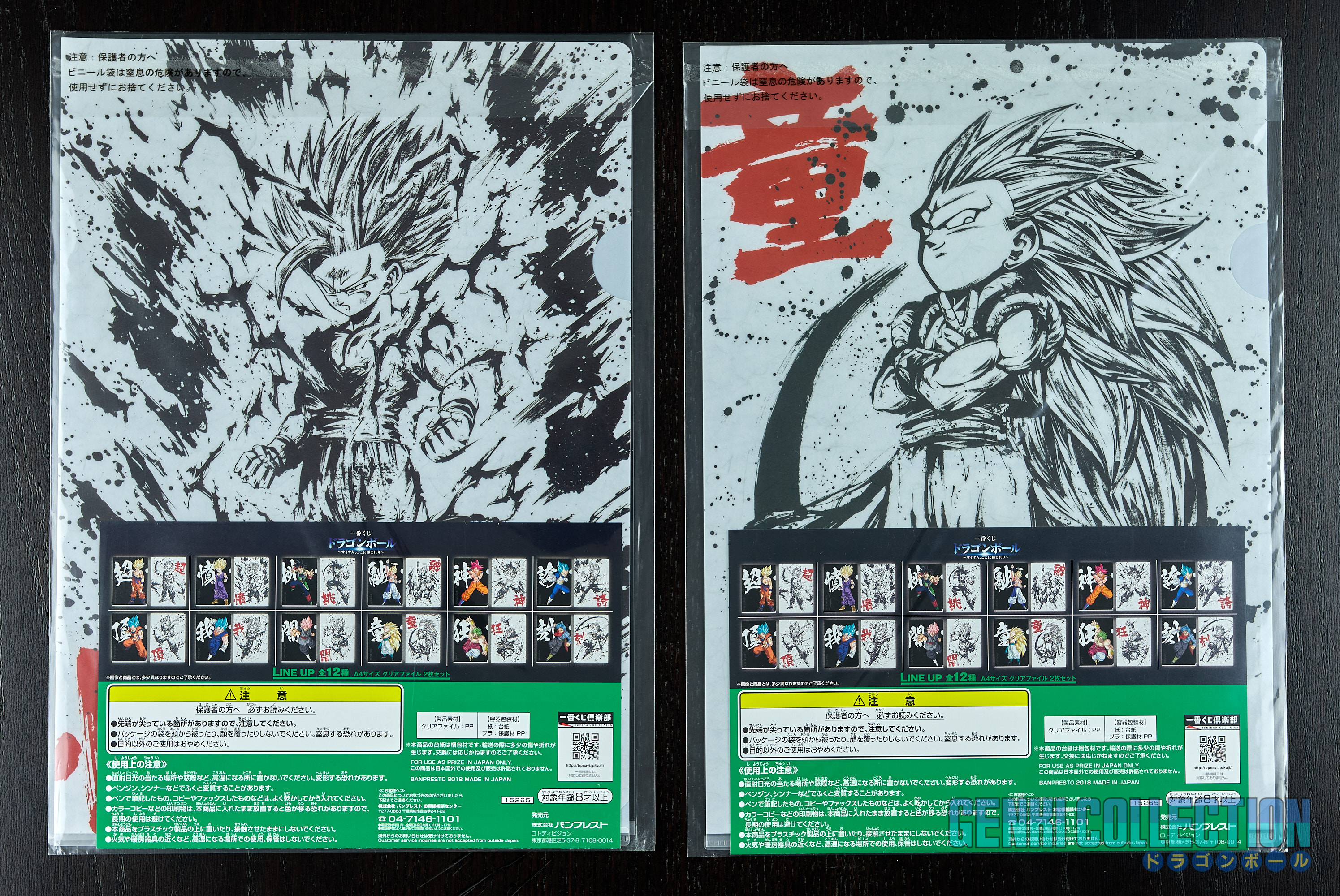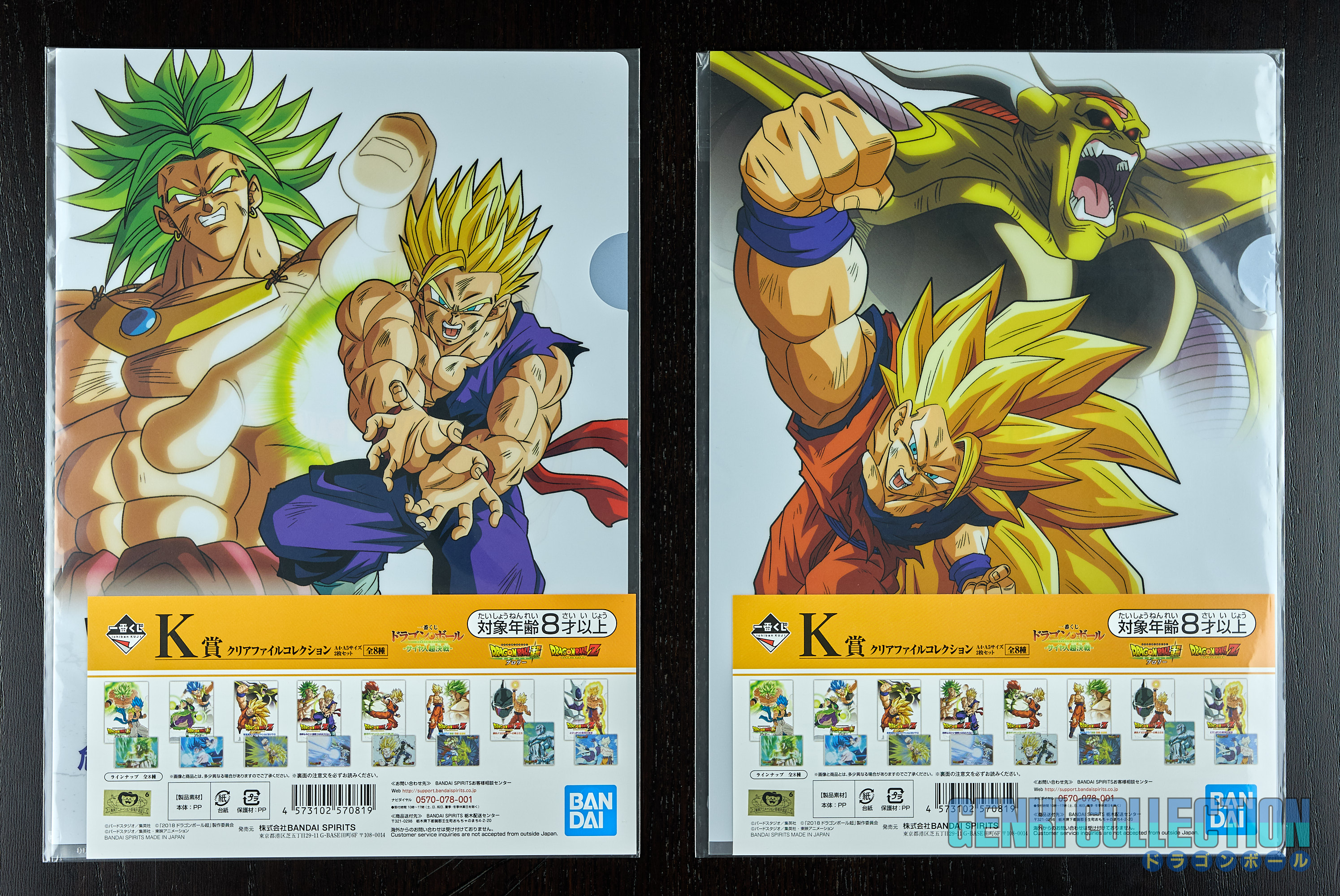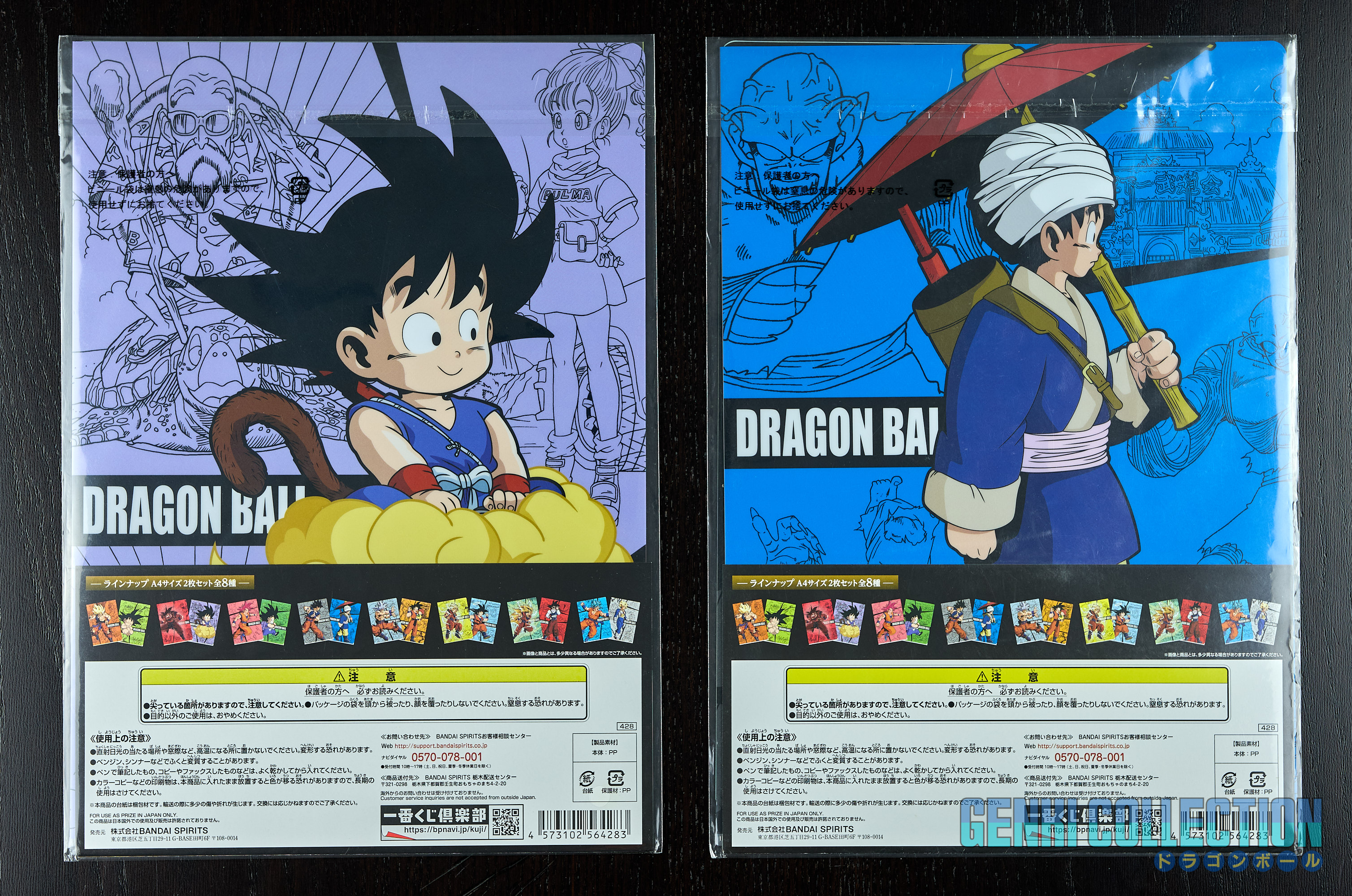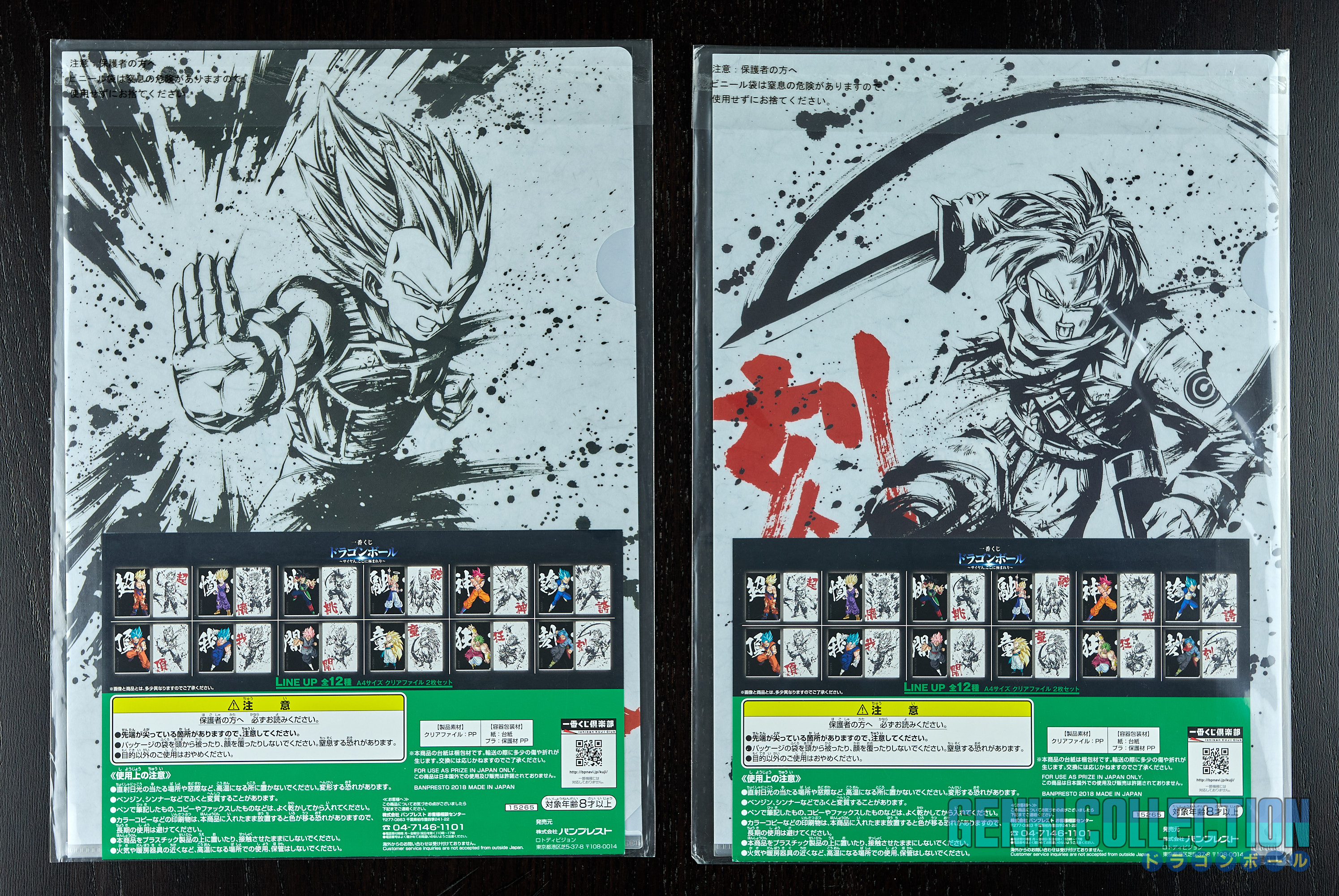 Set of 346 Dragon Ball clear files (plastic folders in A4 or A5 format for some), consisting of 325 clear files distributed across 20 Ichiban Kuji lottery full sets (2011 to 2024) and 21 independent clear files (individual or "Not for Sale"), all in excellent condition in their original blisters (except for 2 or 3 of them). Set details: