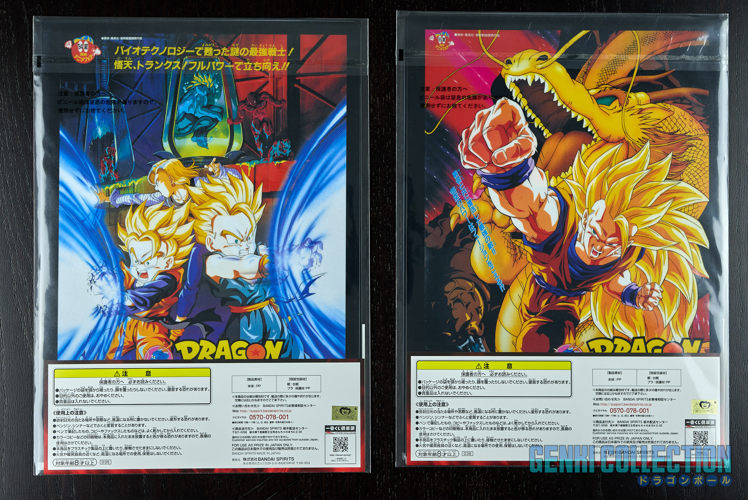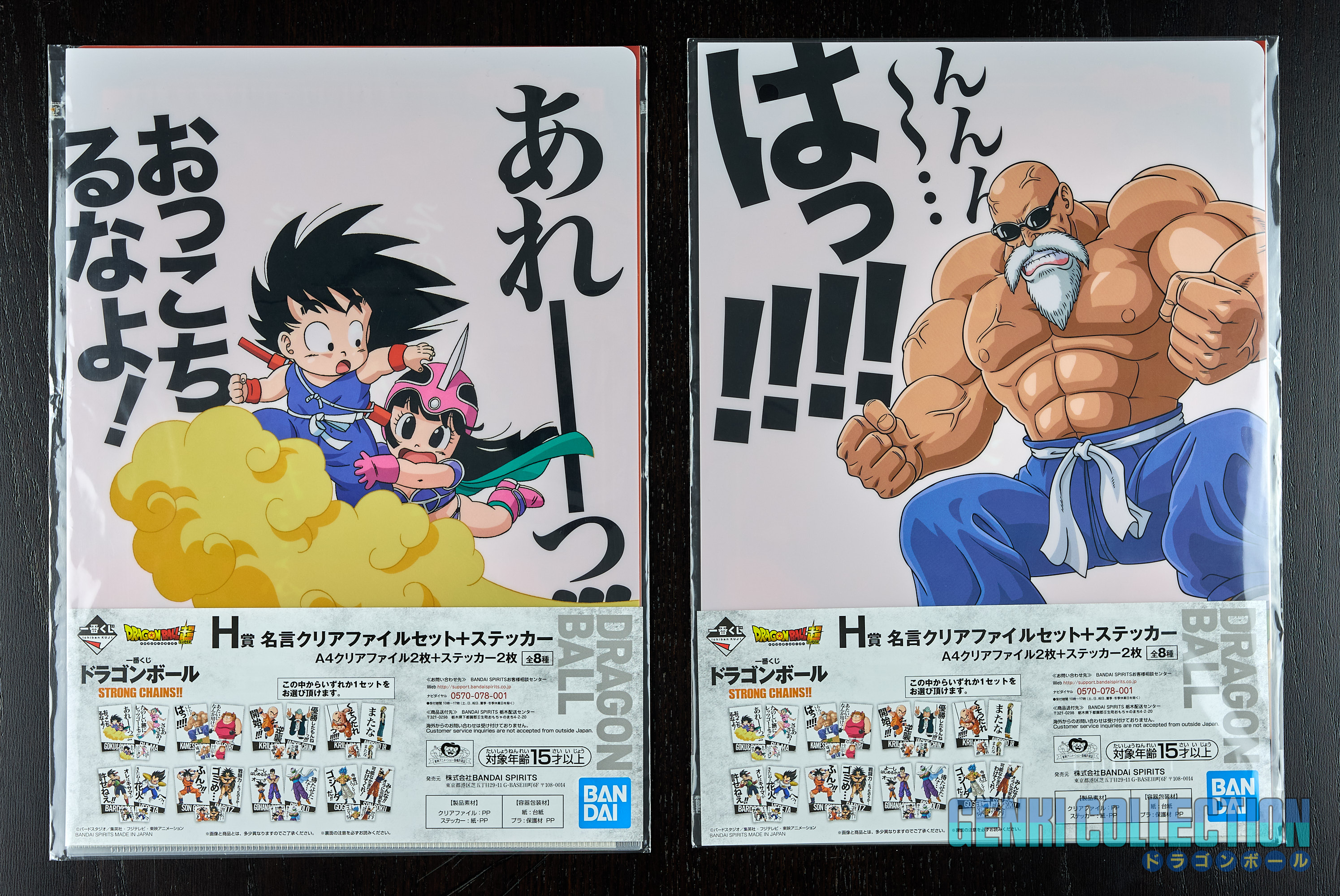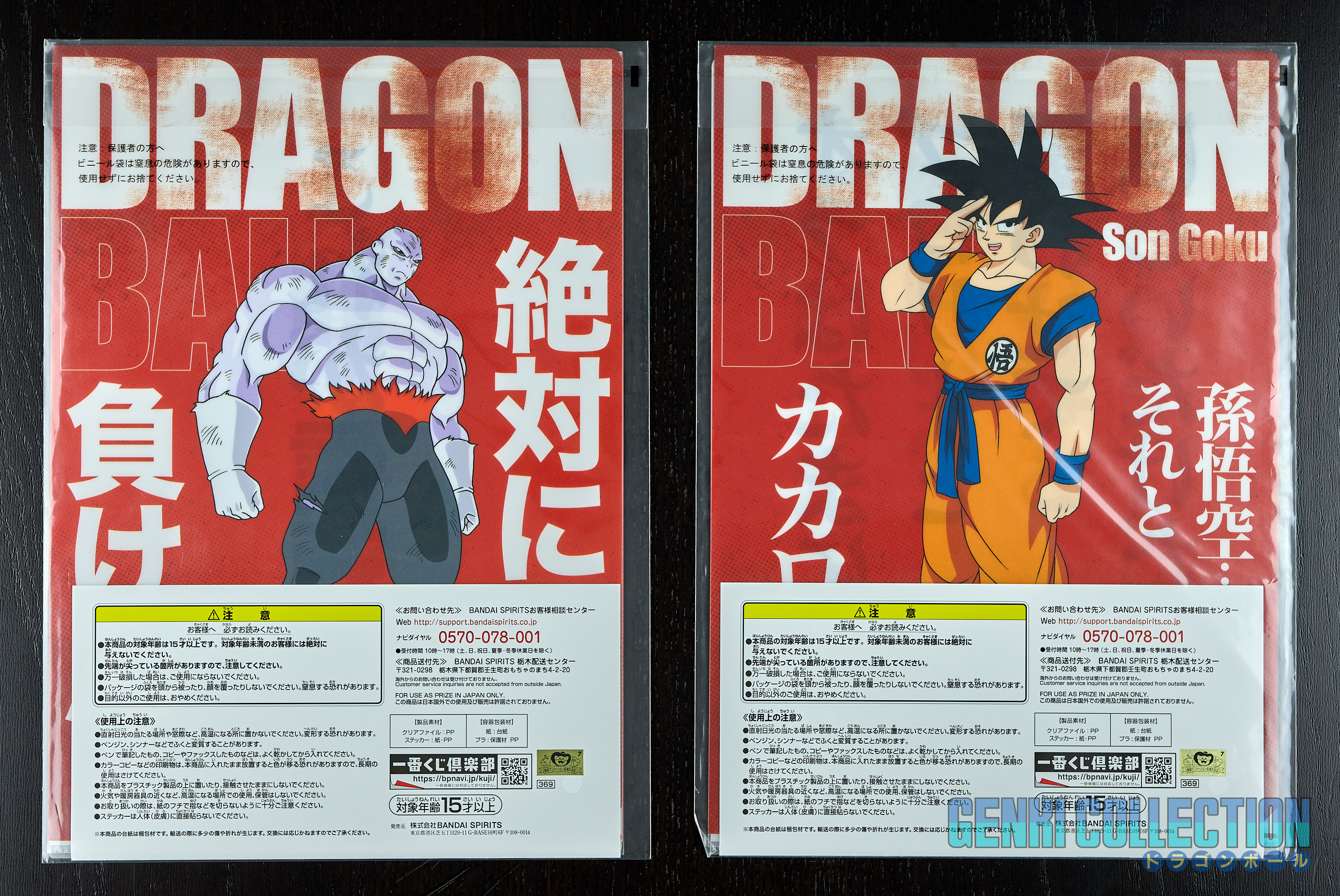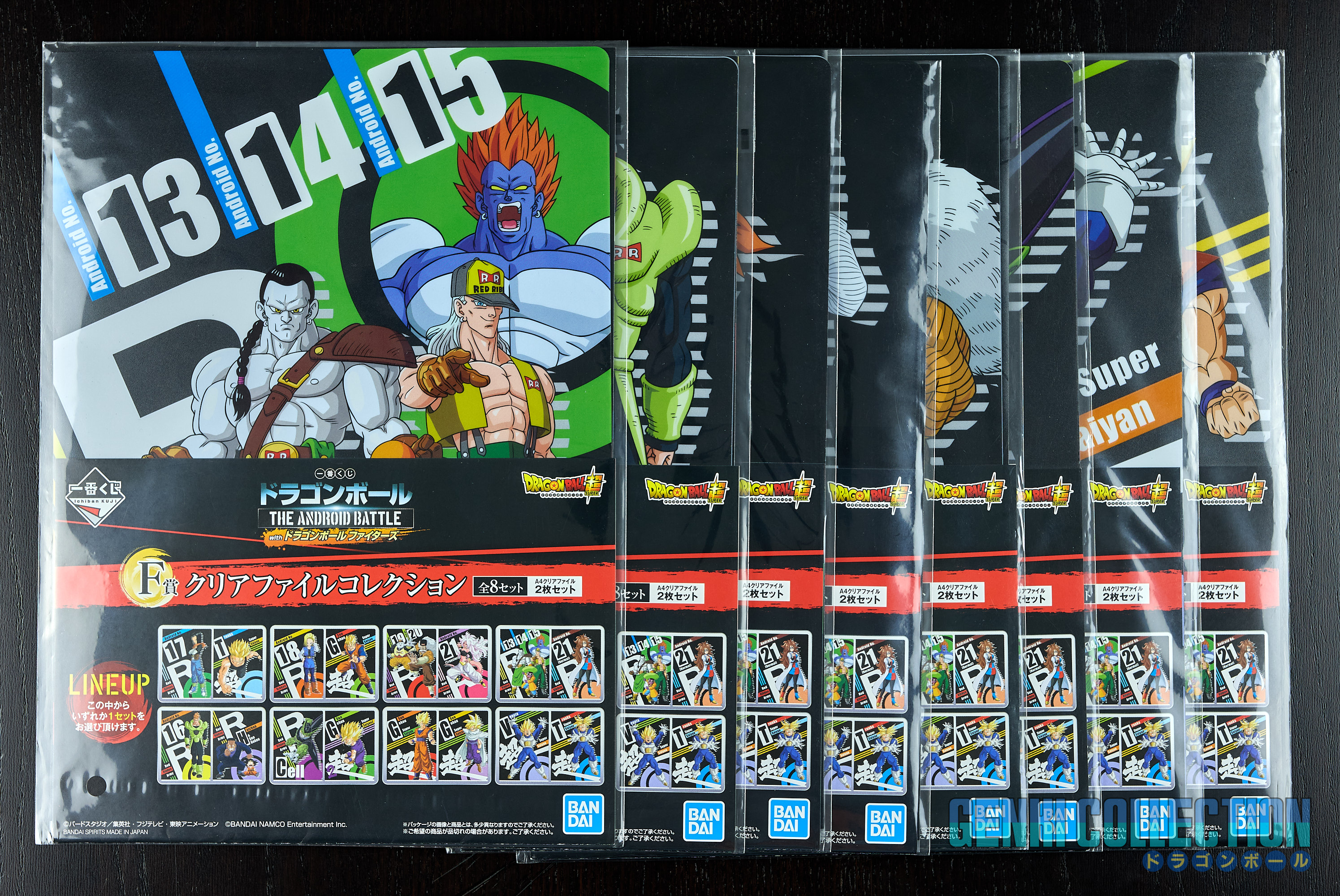 Set of 346 Dragon Ball clear files (plastic folders in A4 or A5 format for some), consisting of 325 clear files distributed across 20 Ichiban Kuji lottery full sets (2011 to 2024) and 21 independent clear files (individual or "Not for Sale"), all in excellent condition in their original blisters (except for 2 or 3 of them). Set details:
