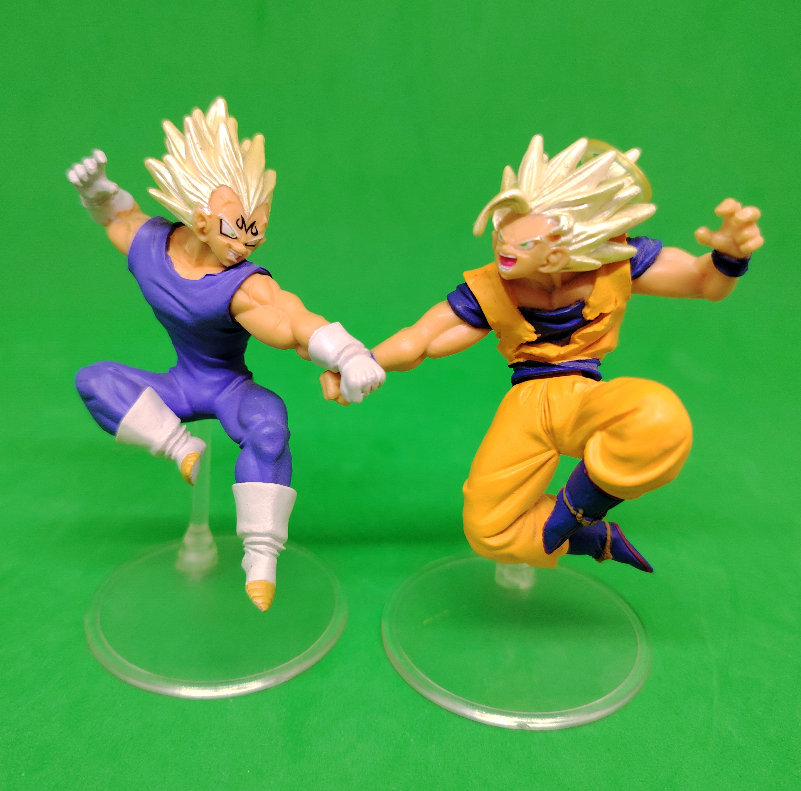 Lot de 11 gashapons Dragon Ball Z HG de séries diverses comprenant 2 Majin Vegeta, Goku Super Saiyan 2, Trunks Super Saiyan du film 9, Goku, Mr. Popo, C-16, C-17, C-18, Trunks et Vegeta. Édités par Bandai.