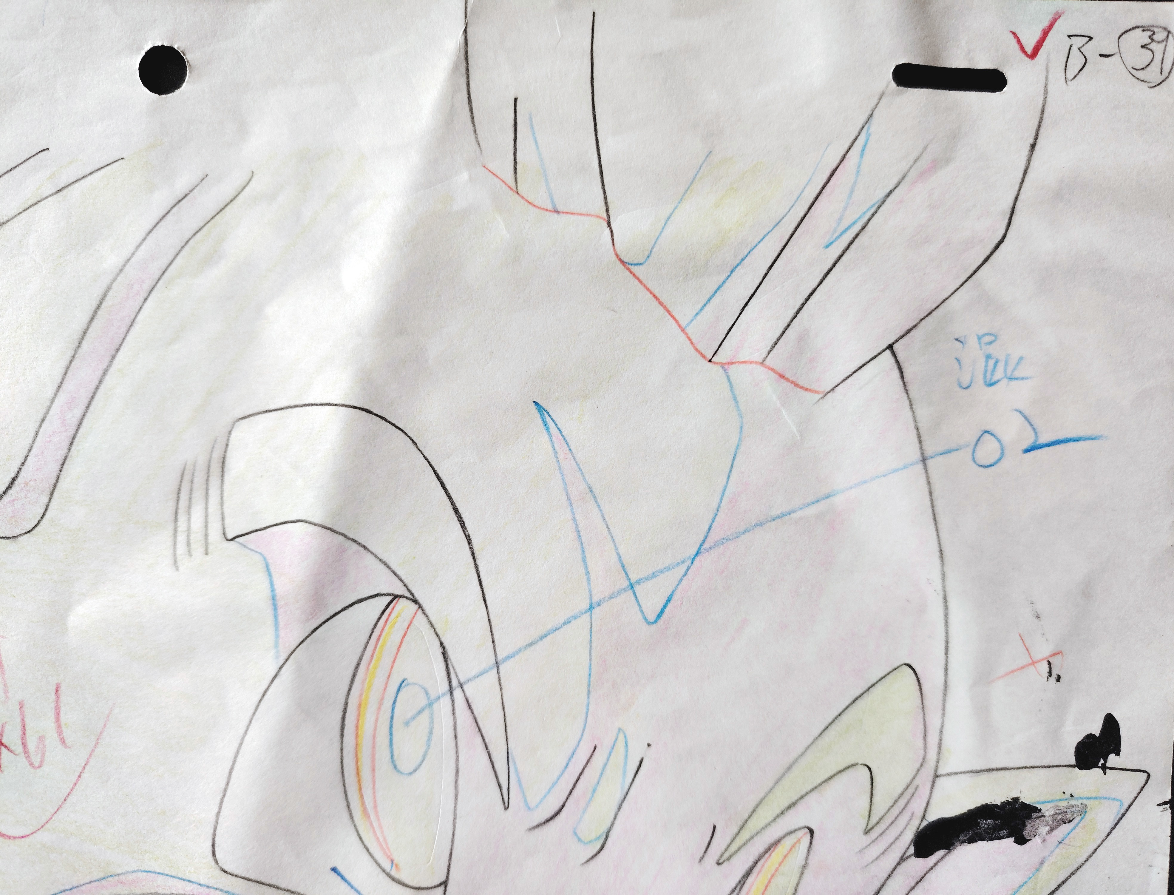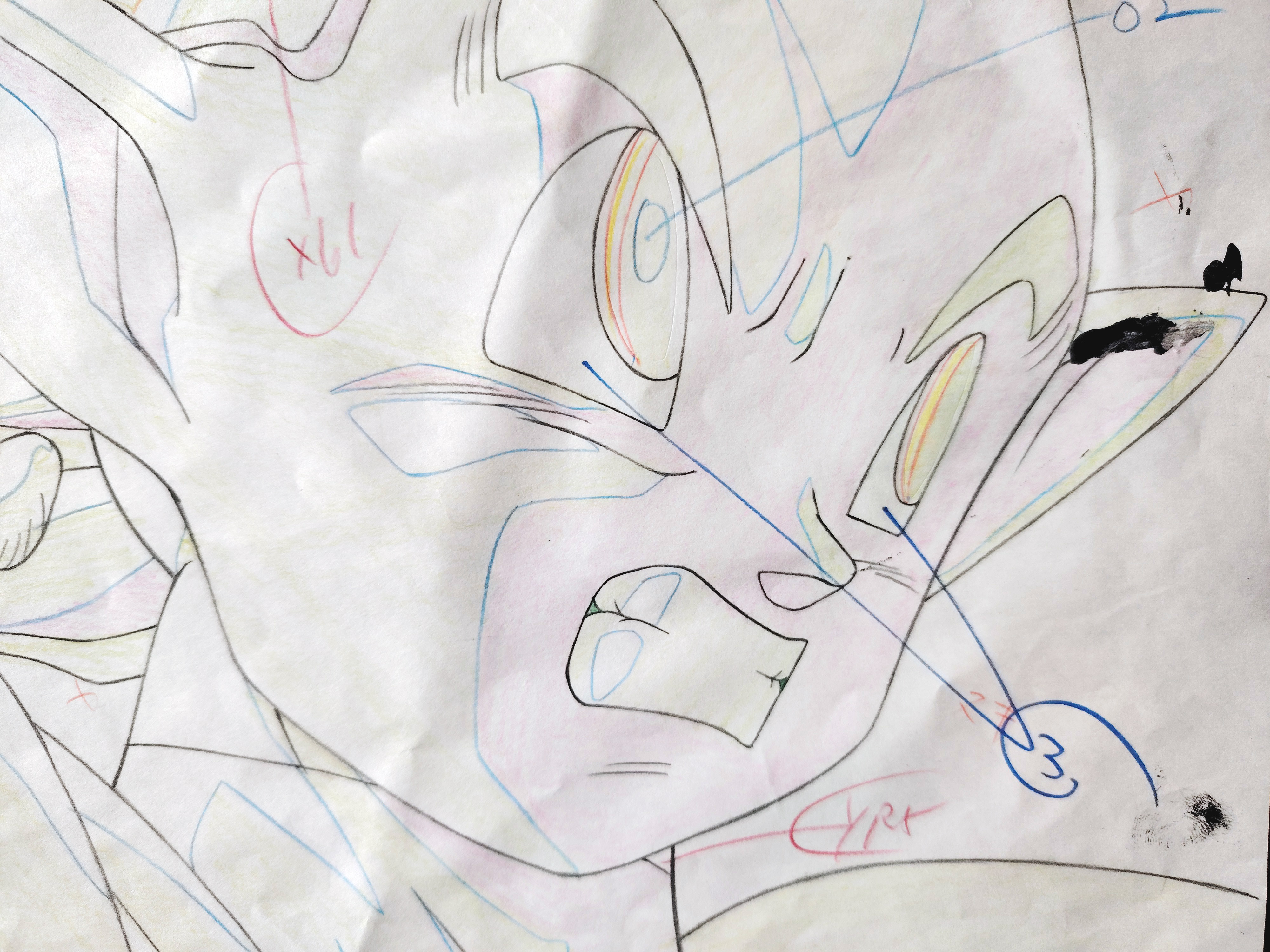 Douga original DRAGON BALL Z à la mine de plomb et au crayon de couleur représentant Minoshia, le petit frère de Tapion, tiré du film 13 "L'attaque du Dragon", "L’Explosion du poing du dragon !! Si Goku n’y arrive pas, qui le pourra ?", "ドラゴンボールZ 龍拳爆発!!悟空がやらねば誰がやる", sorti en 1995 par la Toei animation.