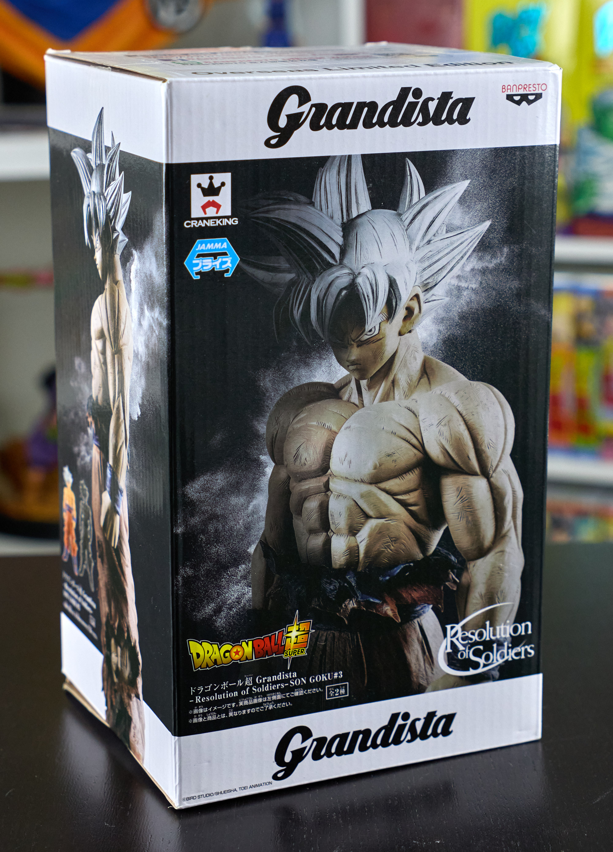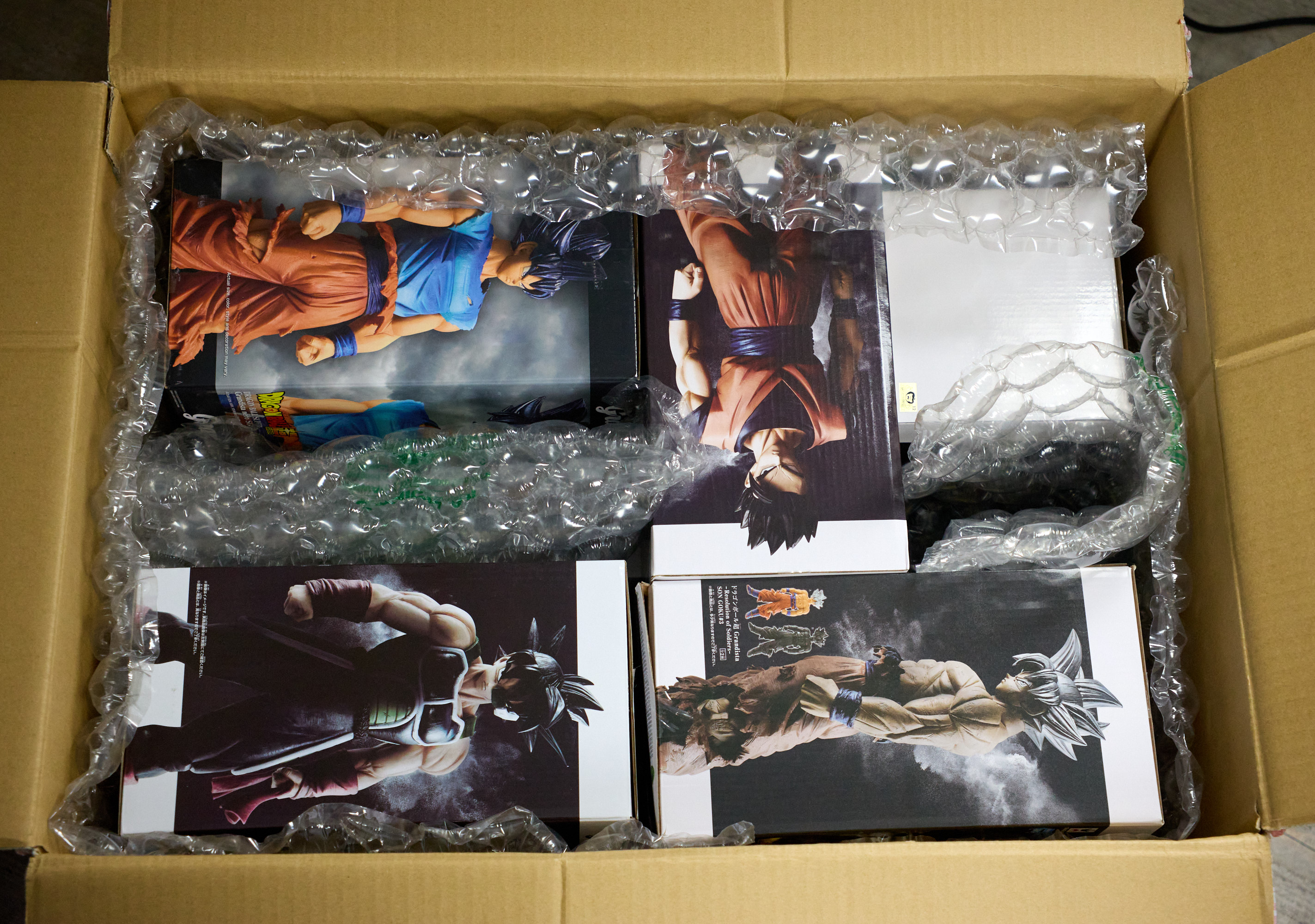 Lot de 8 figurines Grandista & BWCF The BardockLot de 8 figurines dont 7 Grandista : Gotenks (têtes normale et Super Saiyan), Gohan (ultimate), Gogeta Super Saiyan Blue, Bardock, Bardock Super Saiyan (édition Nero avec tête normale et Super Saiyan), Gokû signes de l'Ultra Instinct (édition Nero), Gokû Ultra Instinct maîtrisé (édition Oversea, non distribuée au Japon) boîte un peu abîmée, et une figurine BWCF de Bardock en boîte.