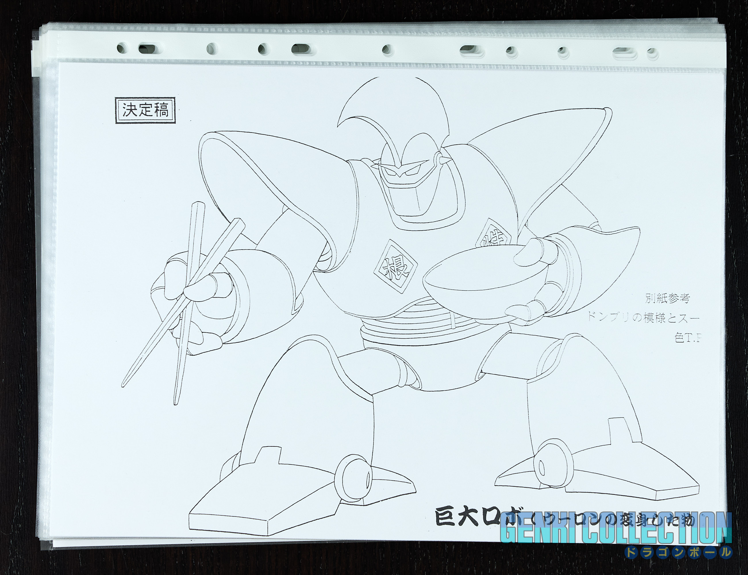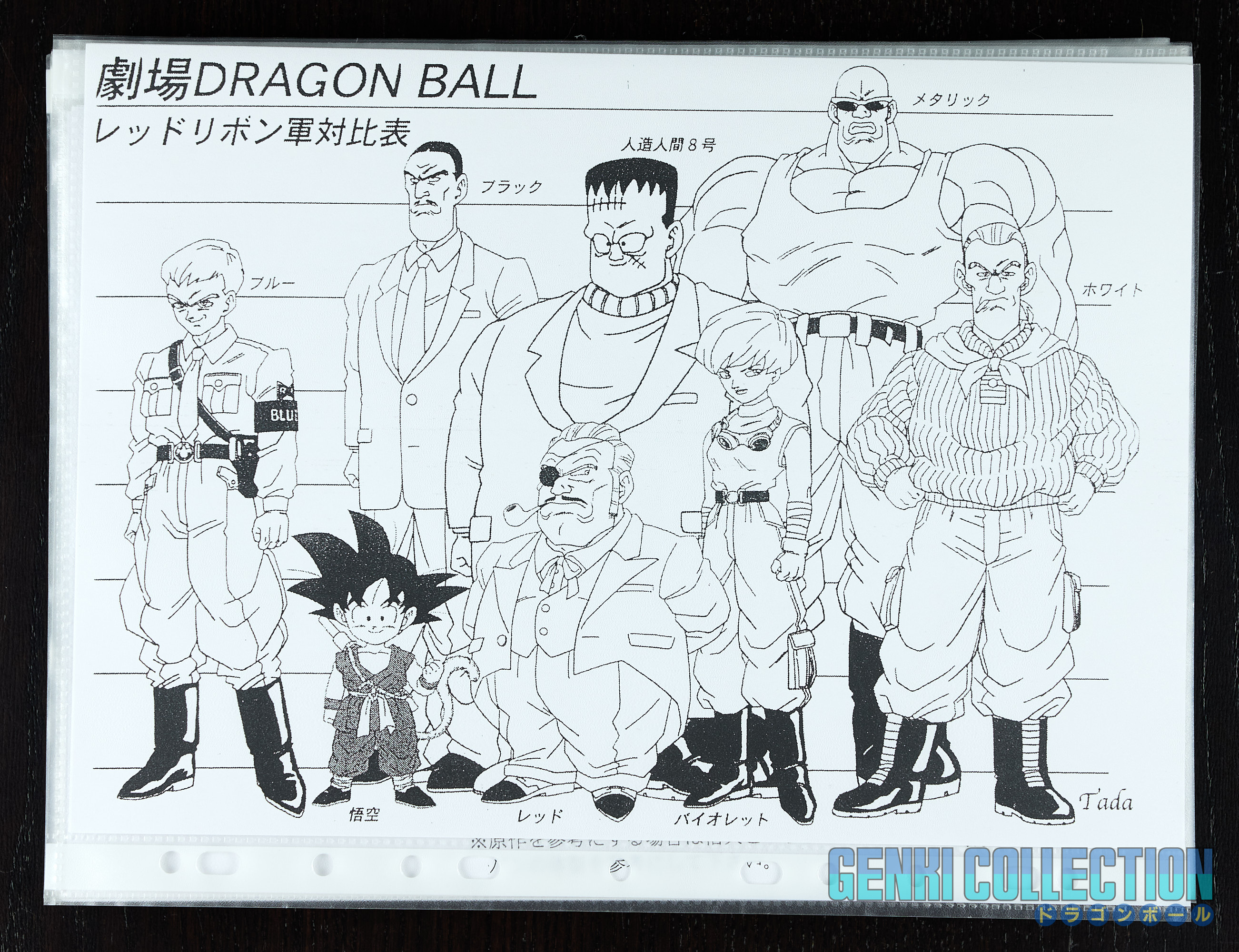 Set of 124 A4-sized (21x29.7cm) settei (model sheet) copies from Dragon Ball movie 4 "Saikyo he no Michi" (The Path to Power), drawn by Tadayoshi Yamamuro as reference models for the Toei Animation studios. In this lot, you will find preparatory sketches of the characters, backgrounds, vehicles, and props used in the movie. The set is supposedly complete (index included).
