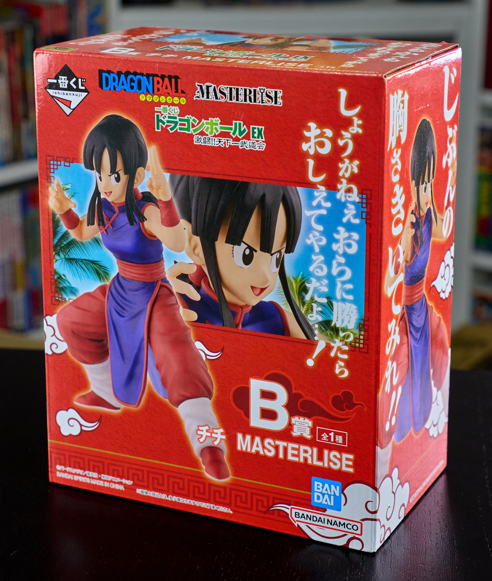 Lot de 5 figurines Ichiban Kuji en boîtes de la série "Budokai Tenkaichi" : Gokû ombrelle, Chichi, Annonceur, Ma Junior (Piccolo Daimaô), Gokû sans turban. Tout en très bon état.