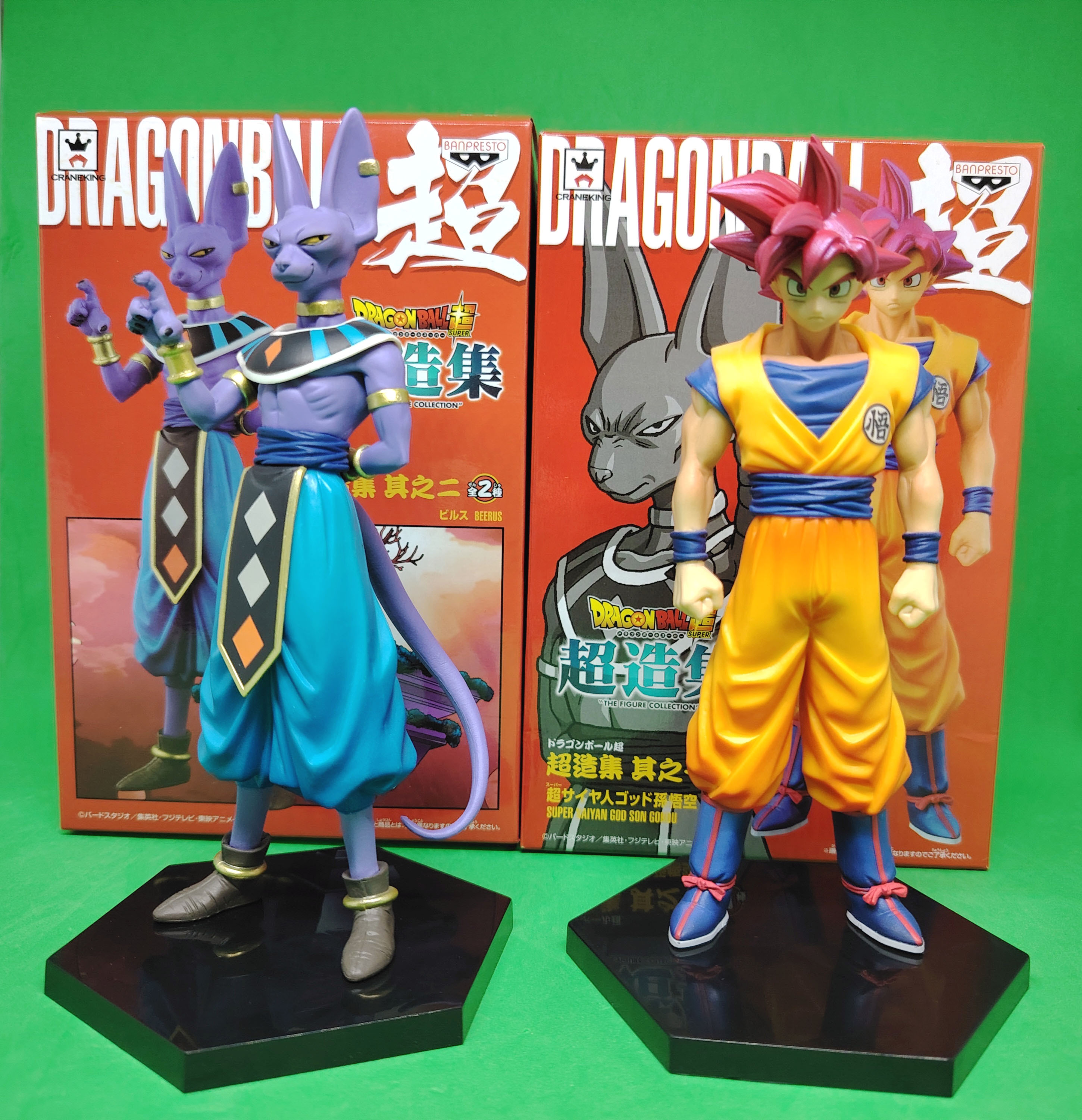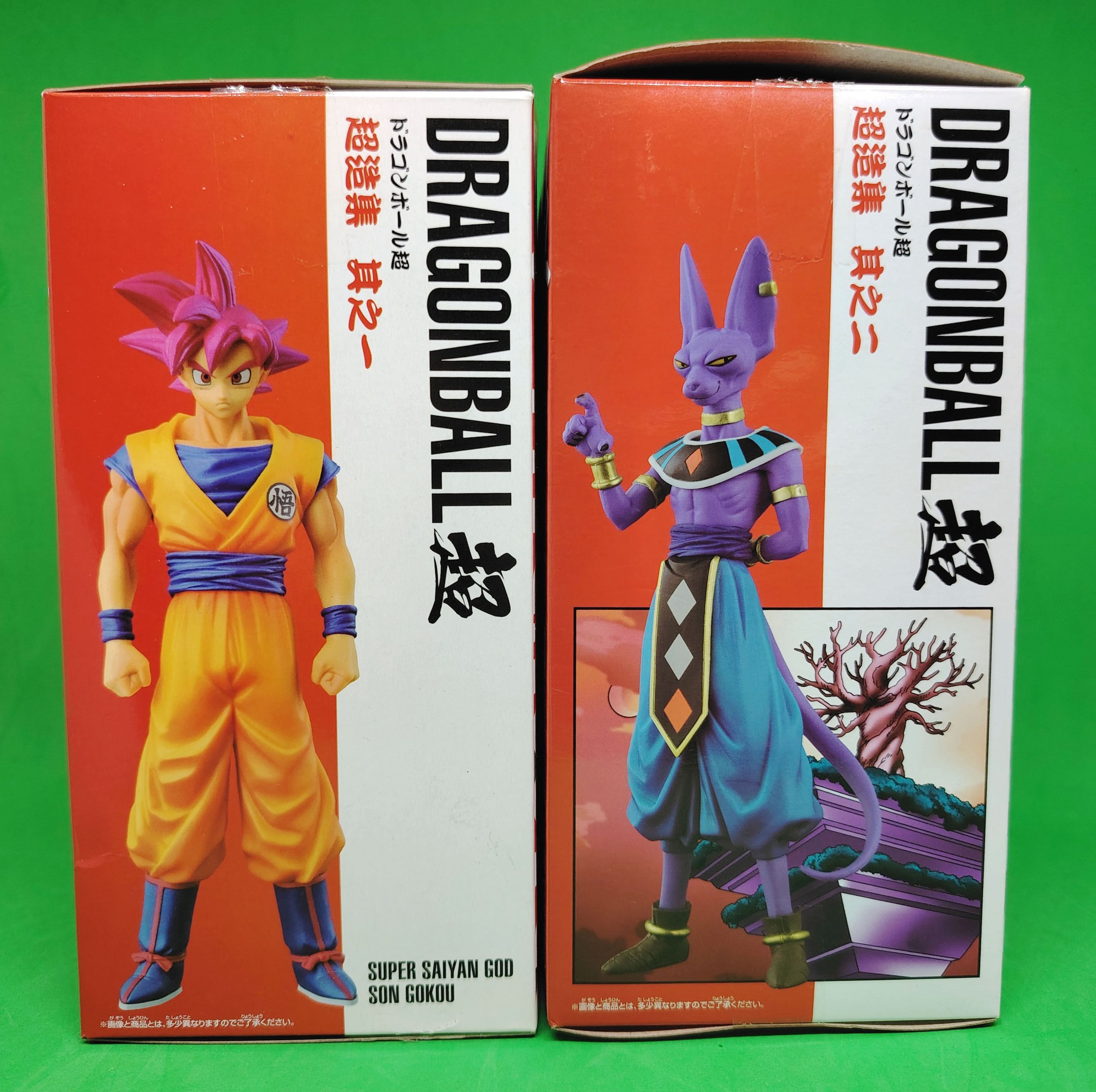 Set of 2 Dragon Ball Super DXF figures, Chozousyu vol 1 Super Saiyan God Goku, released in 2015 & vol 2 Beerus, released in 2016 by Banpresto.