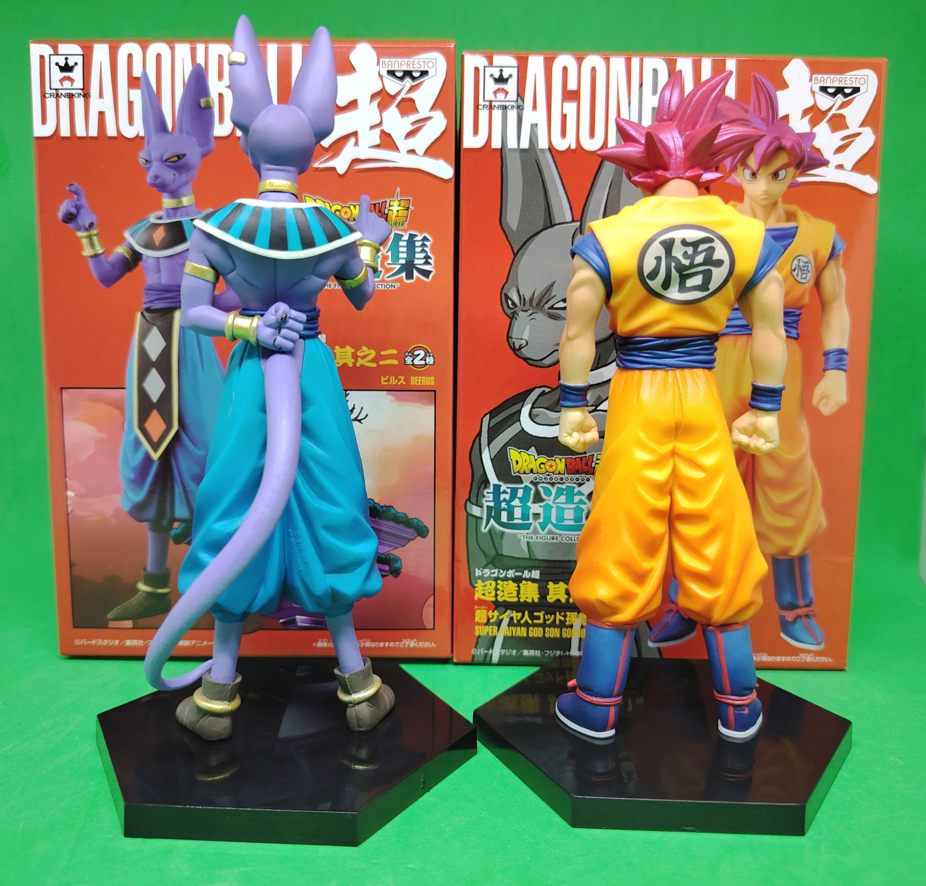 Ensemble de 2 figurines Dragon Ball Super DXF, Chozousyu vol 1 Goku Super Saiyan God, sortie en 2015 & vol 2 Beerus, sortie en 2016 par Banpresto.
