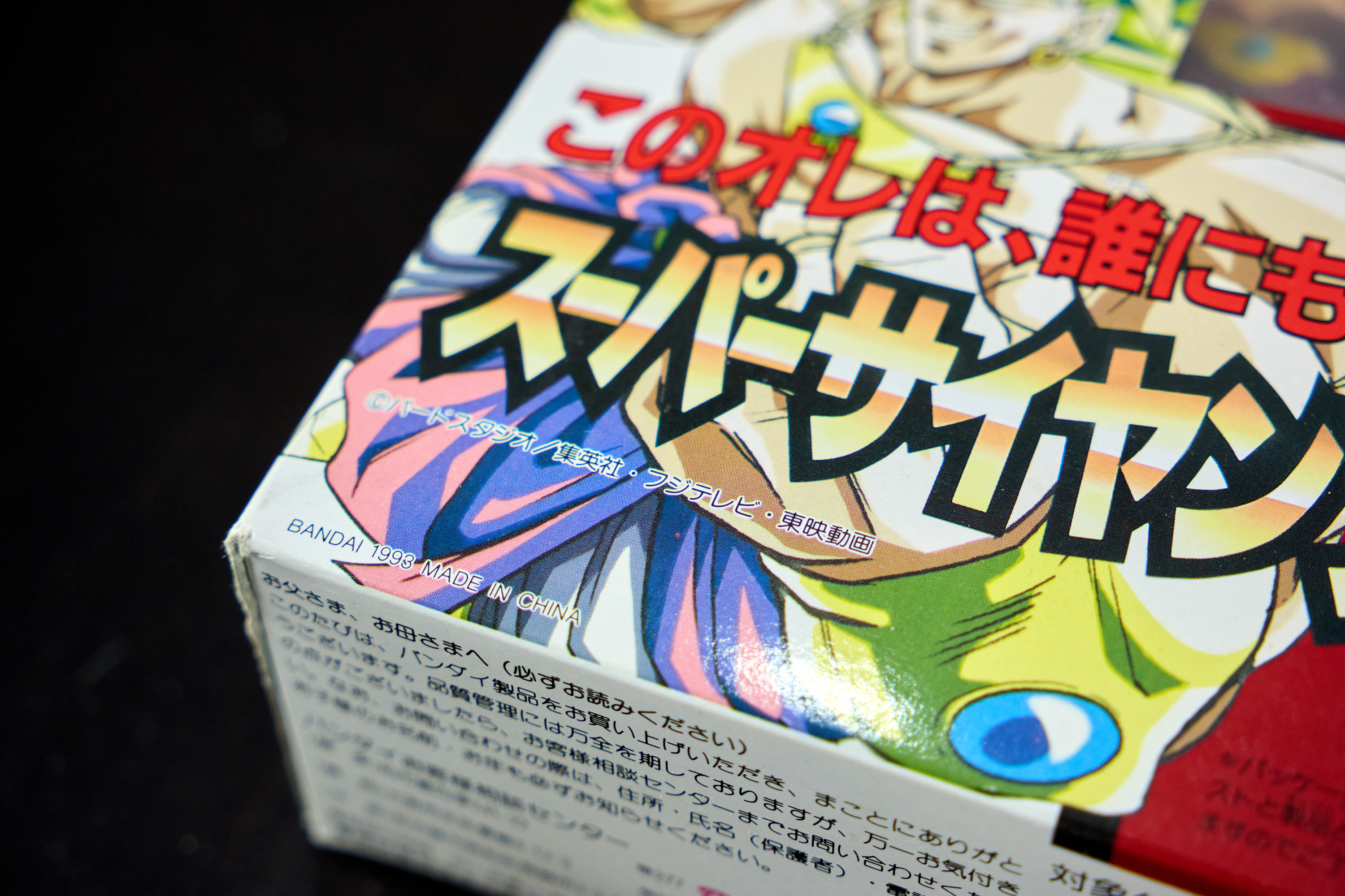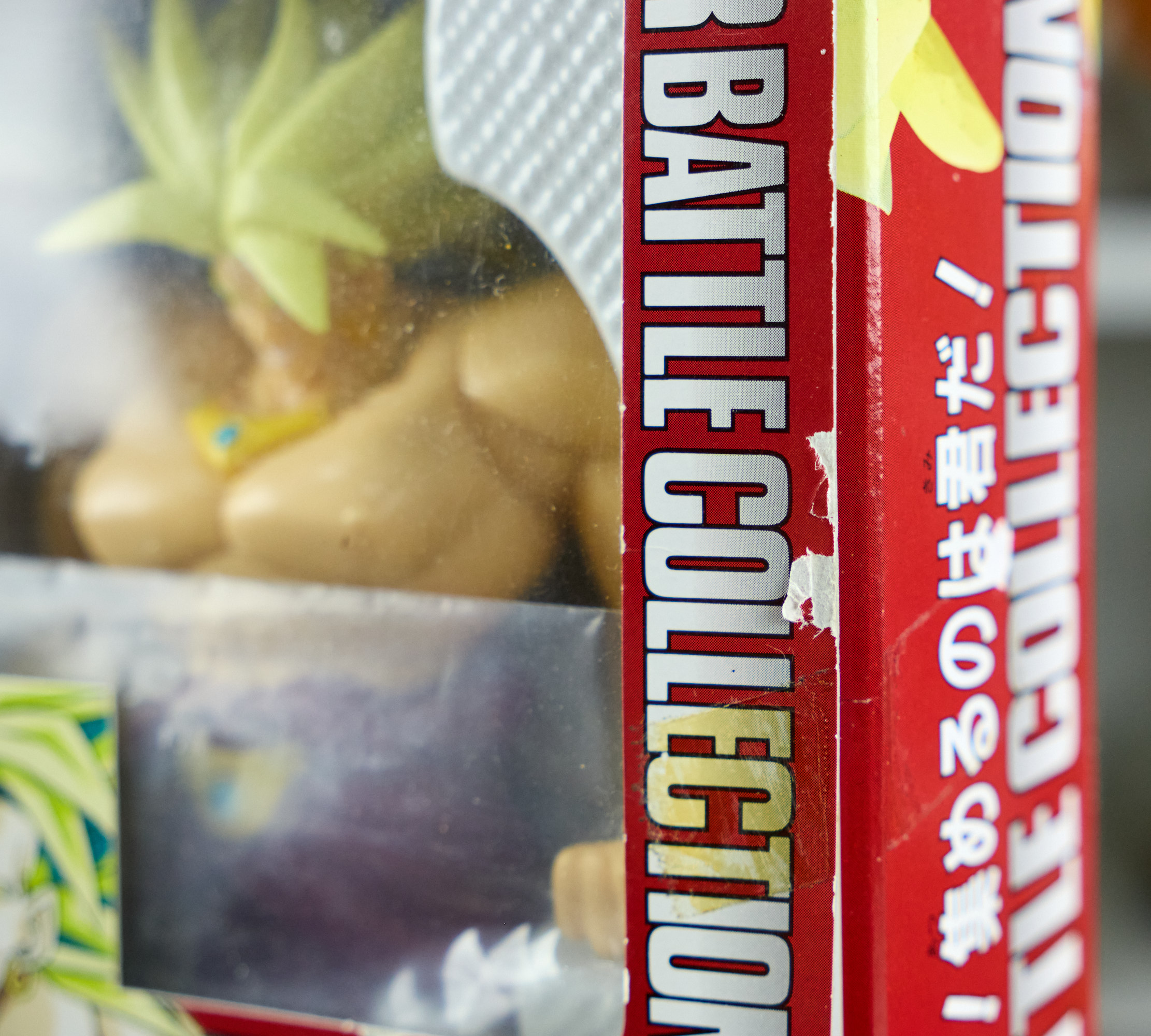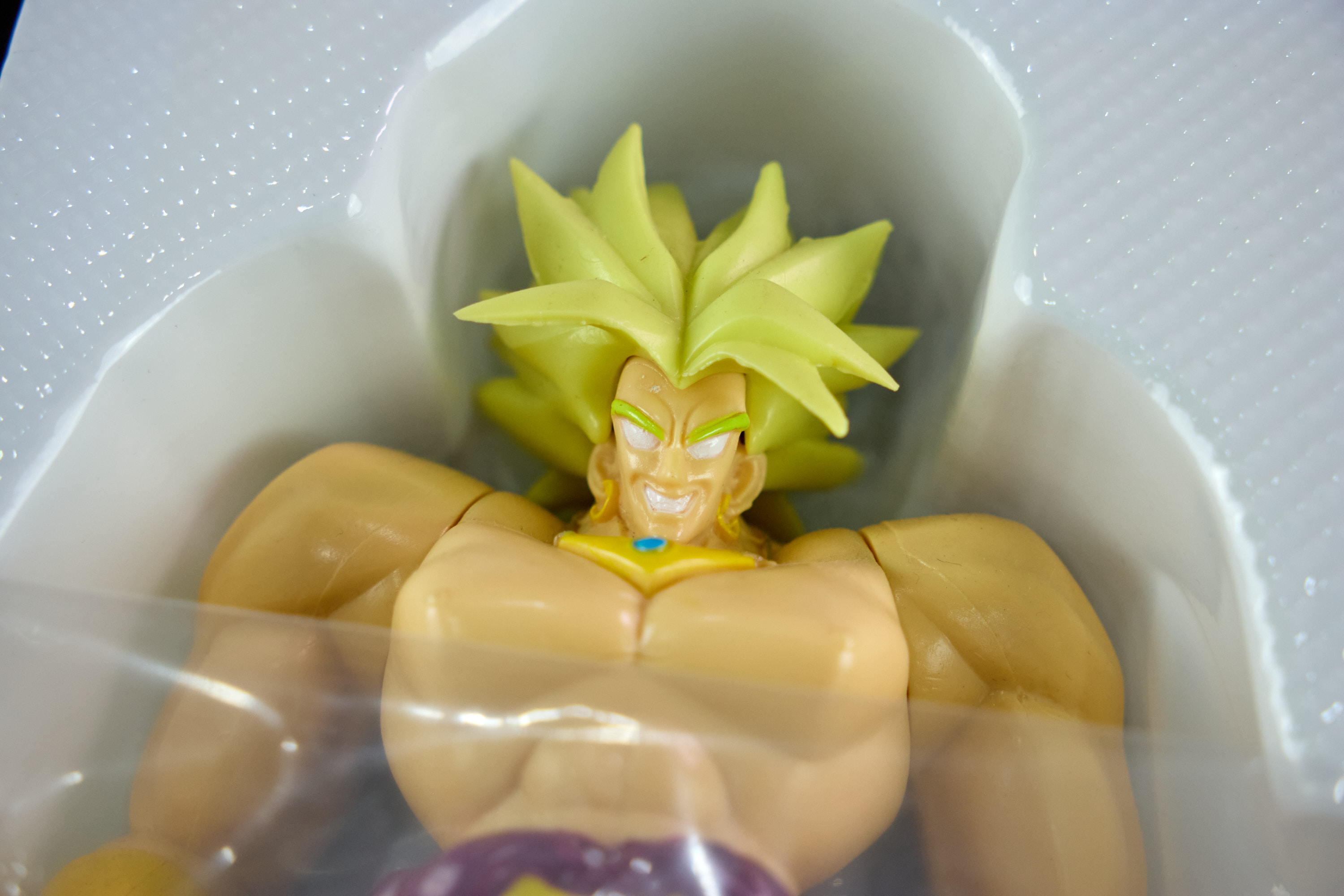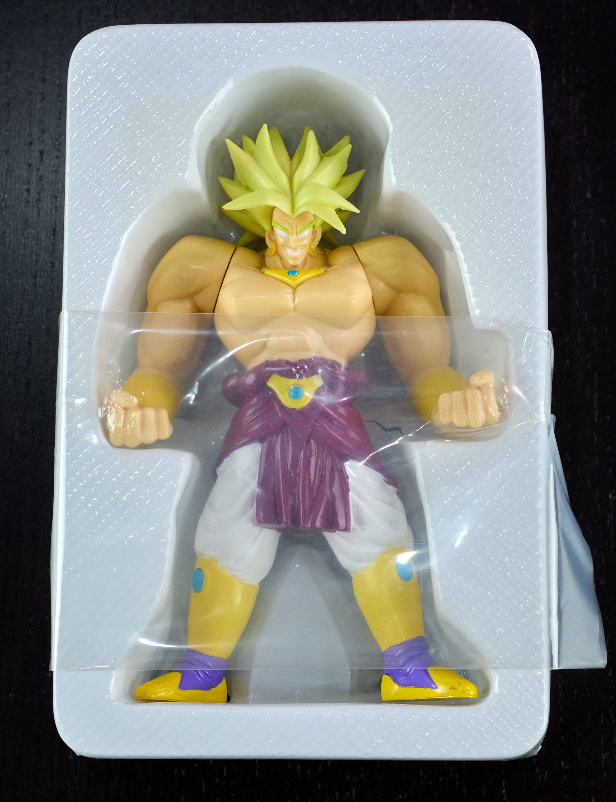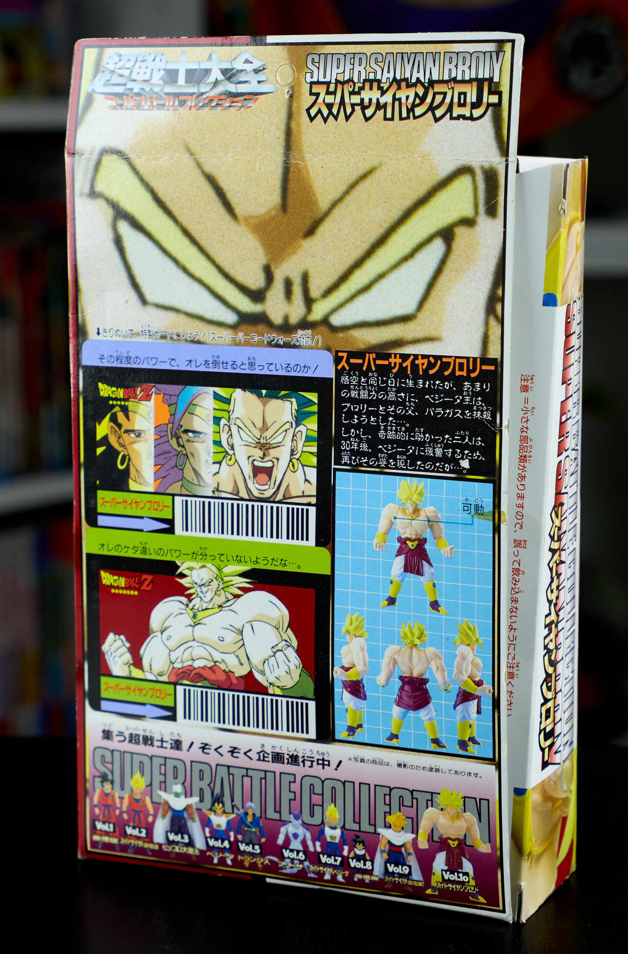 Figurine Super Battle Collection Super Saiyan Broly volume 10. 1ère édition de 1993, Made in China. Modèle particulièrement difficile à trouver, en boîte en bon état, quelques défauts à voir en photos et vidéos. Je pense que la figurine n'a jamais été sortie de son blister intérieur, sans en être certain.