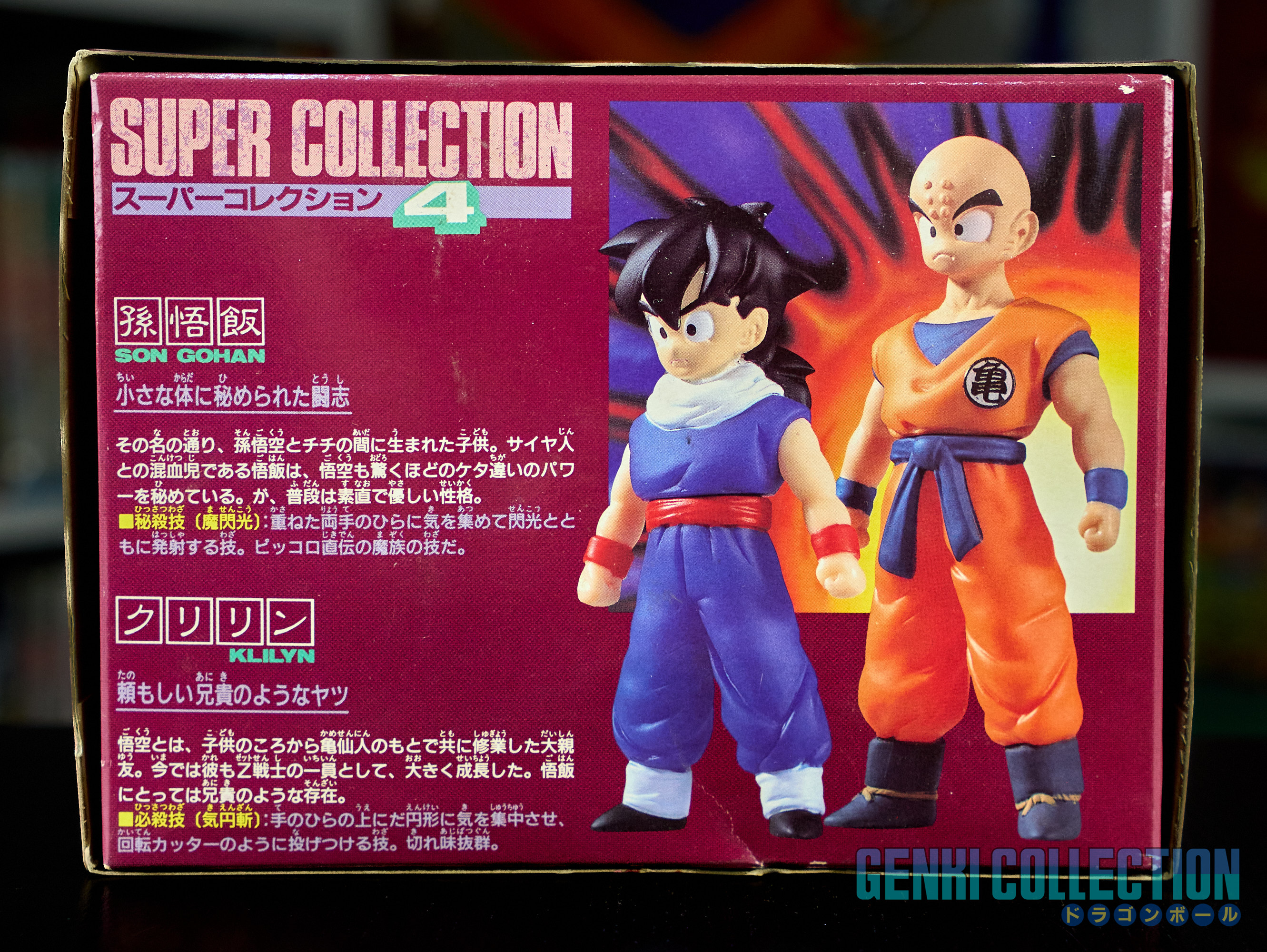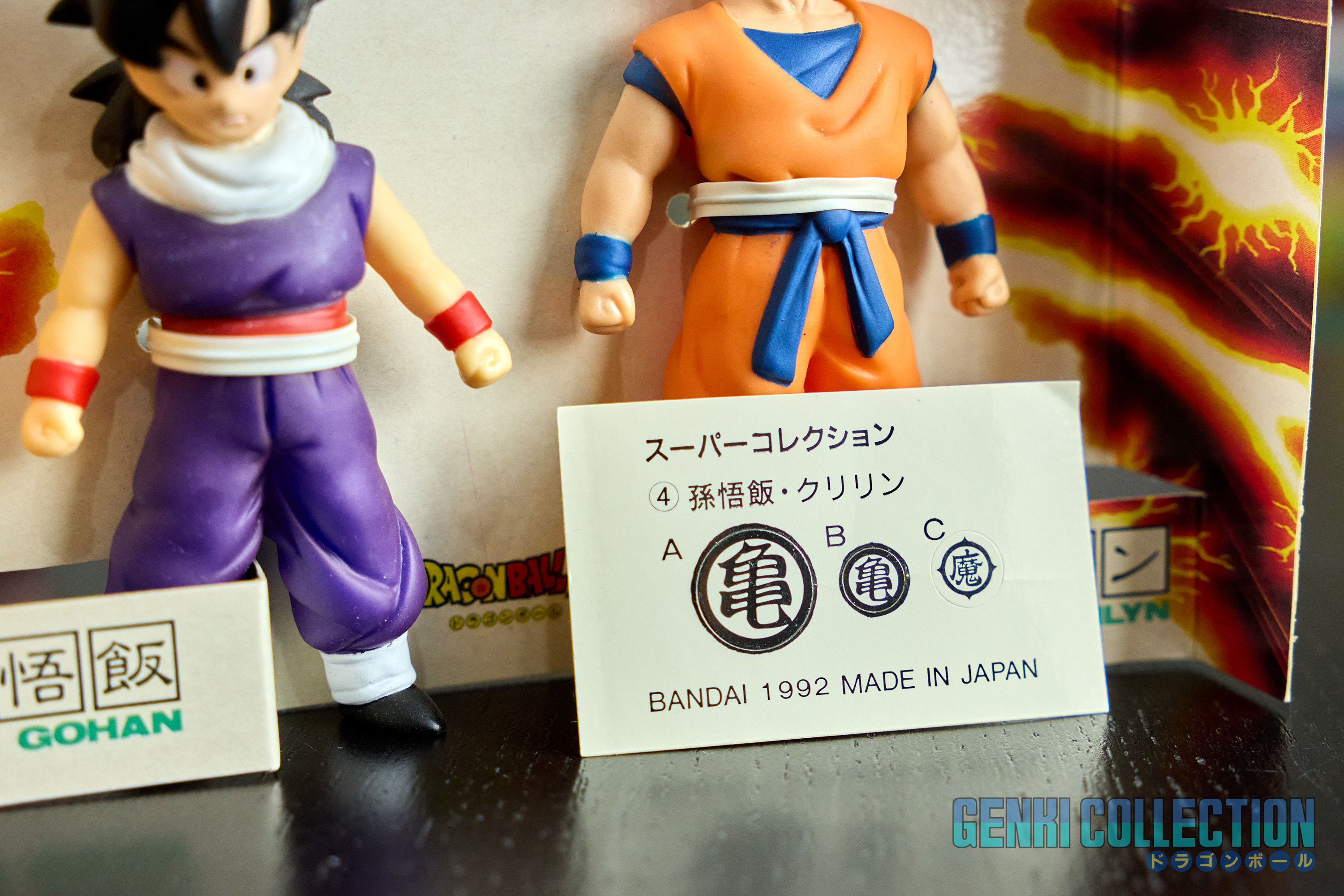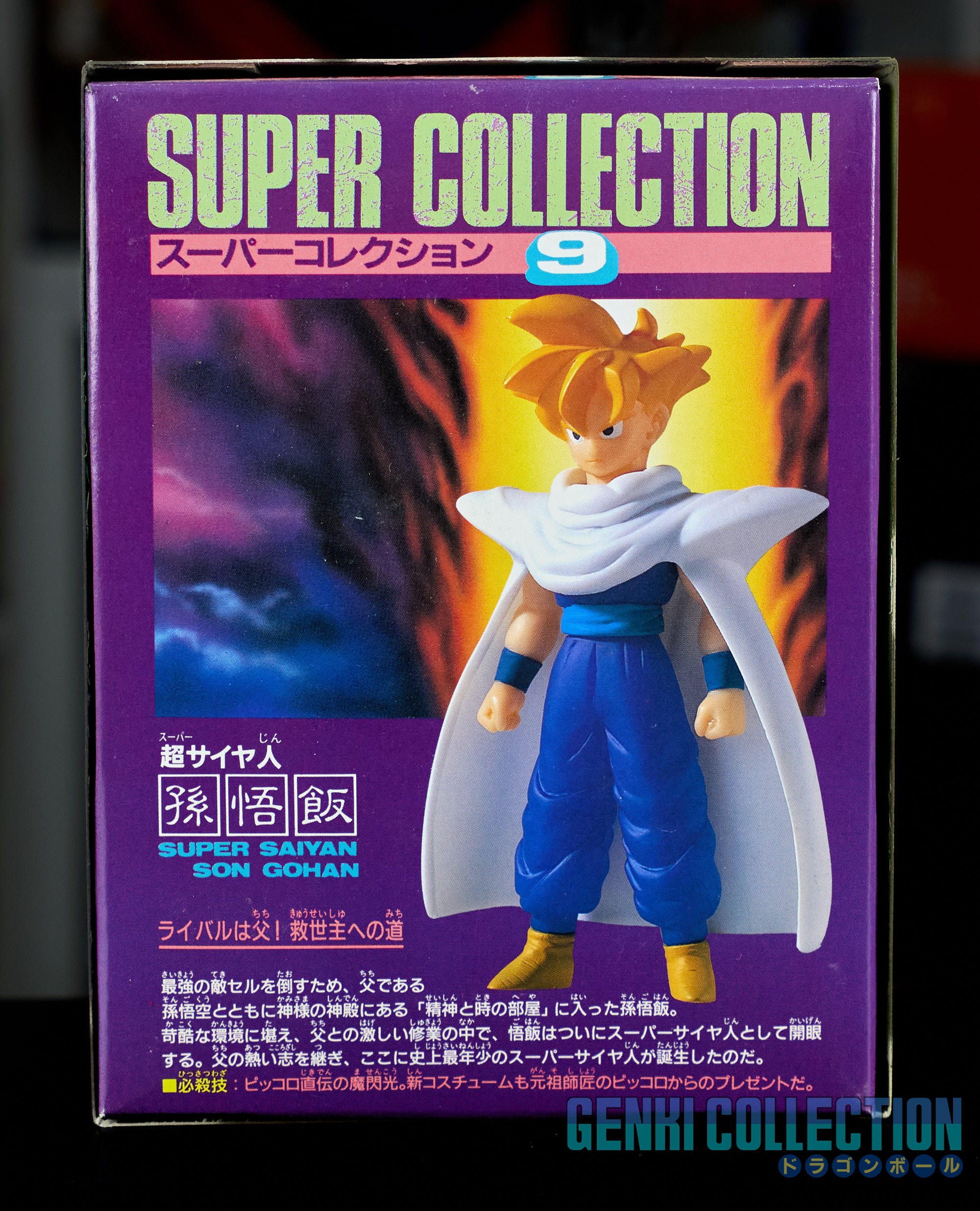 Set complet de 9 figurines Dragon Ball Z Super Collection de 1991 à 1993. Toutes sont complètes, en très bon état général. Seule la vol. 6 de Piccolo est en état un peu moins bon que les autres (boîte sensiblement plus abîmée). Stickers présents pour les vol.1 et 4, ainsi que pour les vol. 7 et 8 avec les épées des Trunks encore en grappes et sous blister. L'une des plus belles séries de figurines de l'époque, pas forcément très connue des collectionneurs.
