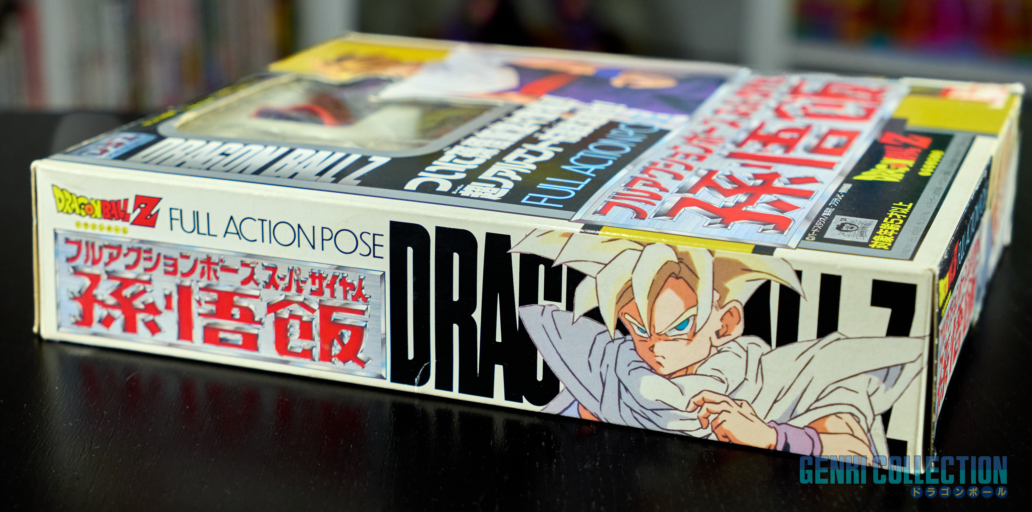 Figurine rare et d'époque de Son Gohan, série Full Action Pose éditée par Bandai en 1993. Boîte un peu abîmée, mais intérieur en excellent état. Les protèges poignets n'ont jamais été collés et les vêtements en tissus sont éclatants et ne présentent aucune usure (comme neufs).La figurine est parfaitement rigide, ce qui est rare, généralement ces modèles sont facilement "désarticulés". Elle n'a donc jamais été manipulée. La notice est également présente.