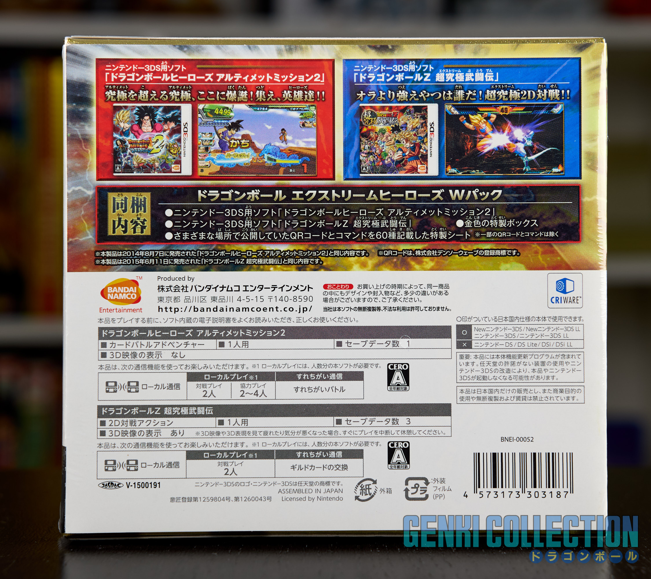 Coffret Collector japonais neuf et scellé DRAGON BALL EXTREME HEROES W PACK 2 jeux NINTENDO 3DSCoffret collector japonais neuf et scellé DRAGON BALL EXTREME HEROES W PACK contenant 2 jeux vidéos DRAGON BALL Z sur console NINTENDO 3DS : DRAGON BALL Z EXTREME BUTÔDEN et DRAGON BALL HEROES ULTIMATE MISSION 2.