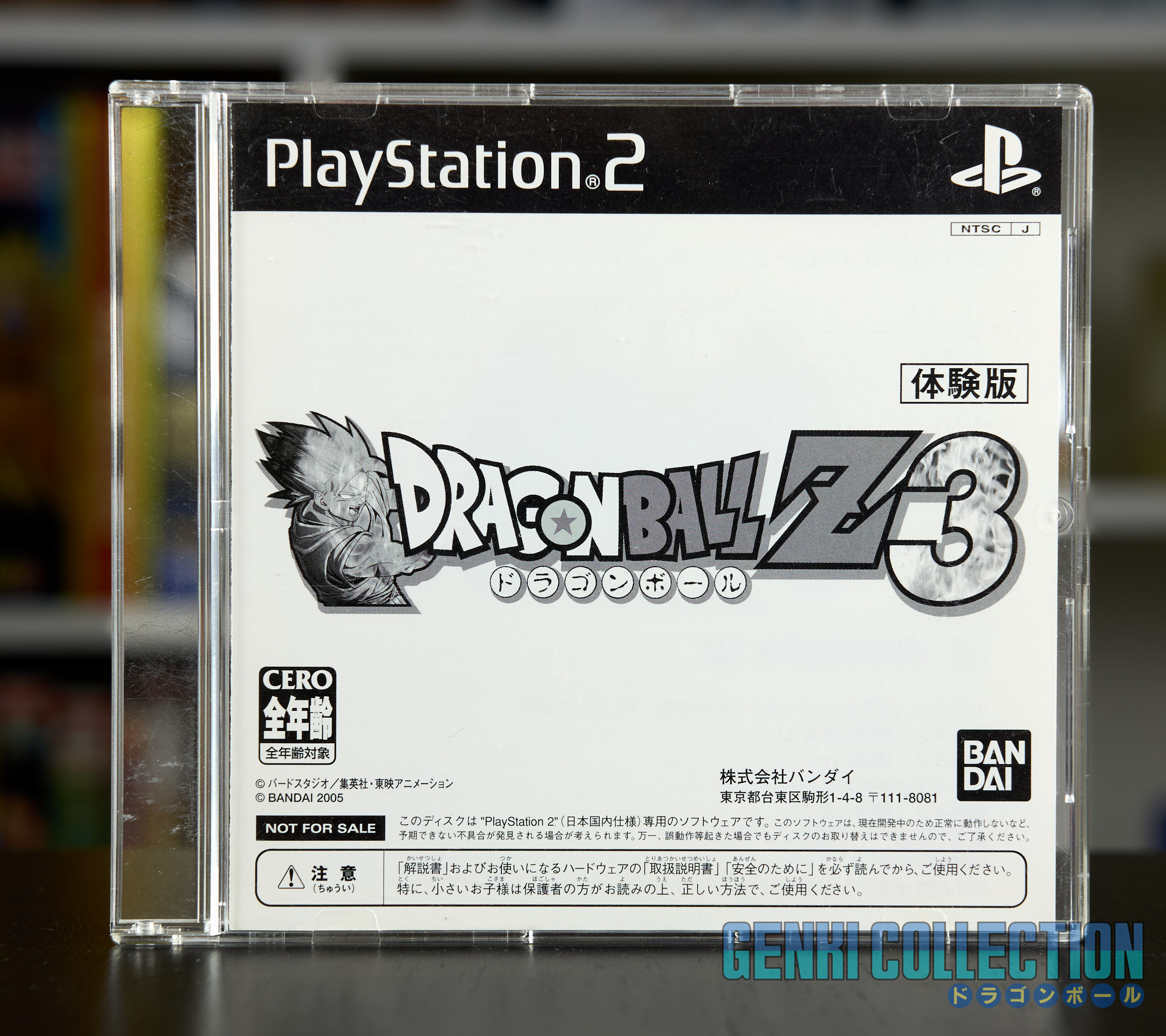 Lot de 2 disques de démos de jeux DRAGON BALL Z + 3 DVD promotionnelsLot comprenant 2 disques de démonstrations des jeux DRAGON BALL Z 3 sur PLAYSTATION 2 (version japonaise) et DRAGON BALL Z BUDOKAI TENKAICHI (version européenne) ainsi que 3 DVD japonais promotionnels des jeux DRAGON BALL Z 3, DRAGON BALL Z SPARKING NEO et SUPER DRAGON BALL Z. Ces produits sont rares car jamais distribués dans le commerce. Ils étaient dédiés aux journalistes pour la promotion des jeux, d'où les mentions "NOT FOR SALE".