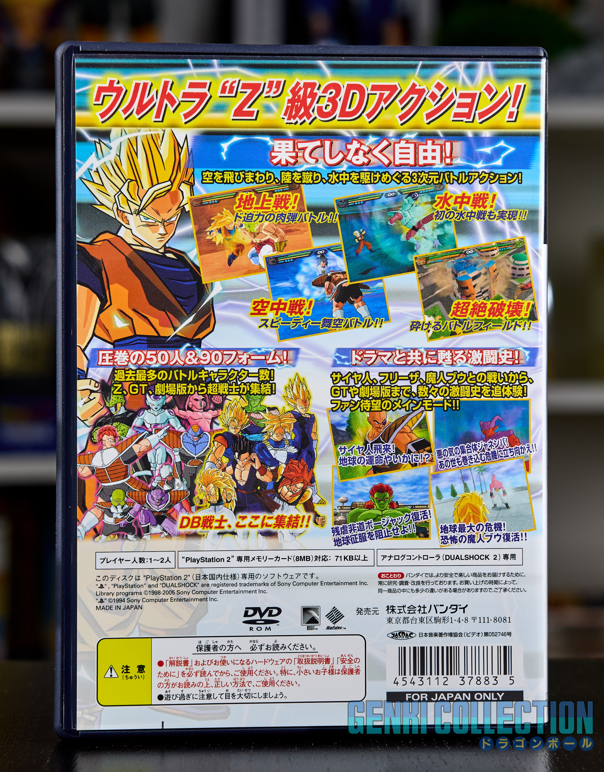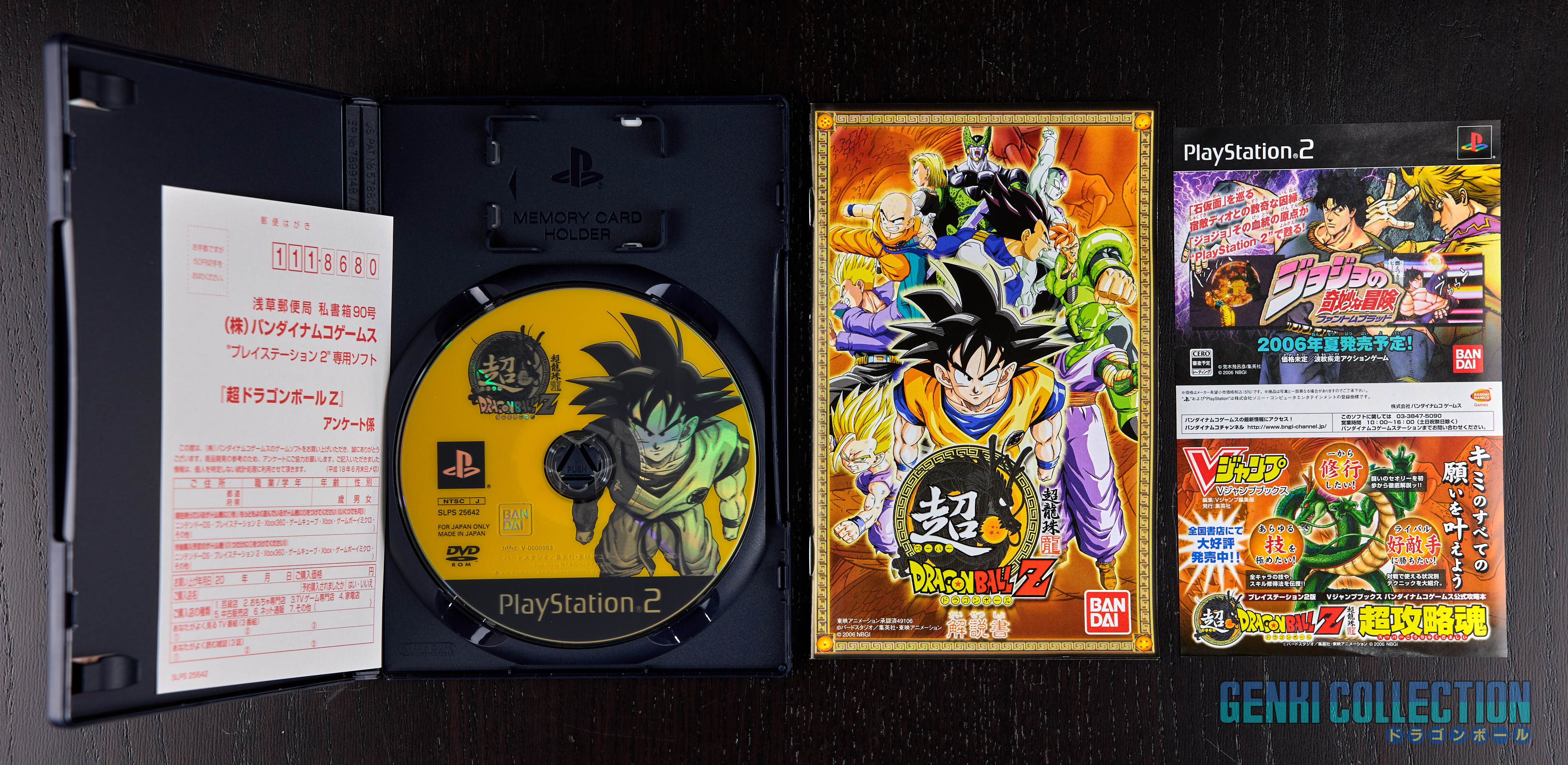 Lot de 5 jeux japonais DRAGON BALL Z ainsi que BATTLE STADIUM DON sur PLAYSTATION 2, présentés dans leur Crystal Box. Les jeux sont complets et en très bon état. - DRAGON BALL Z SPARKING! avec boîte, notice, CD, flyer publicitaire et registered card. - DRAGON BALL Z SPARKING! NEO avec boîte, notice, CD, flyer publicitaire et registered card. - DRAGON BALL Z SPARKING! METEOR avec boîte, notice, CD et registered card. - DRAGON BALL Z INFINITE WORLD avec boîte, notice et CD. - SUPER DRAGON BALL Z avec boîte, notice, CD, flyer publicitaire et registered card. - BATTLE STADIUM DON avec boîte, notice, CD et registered card.