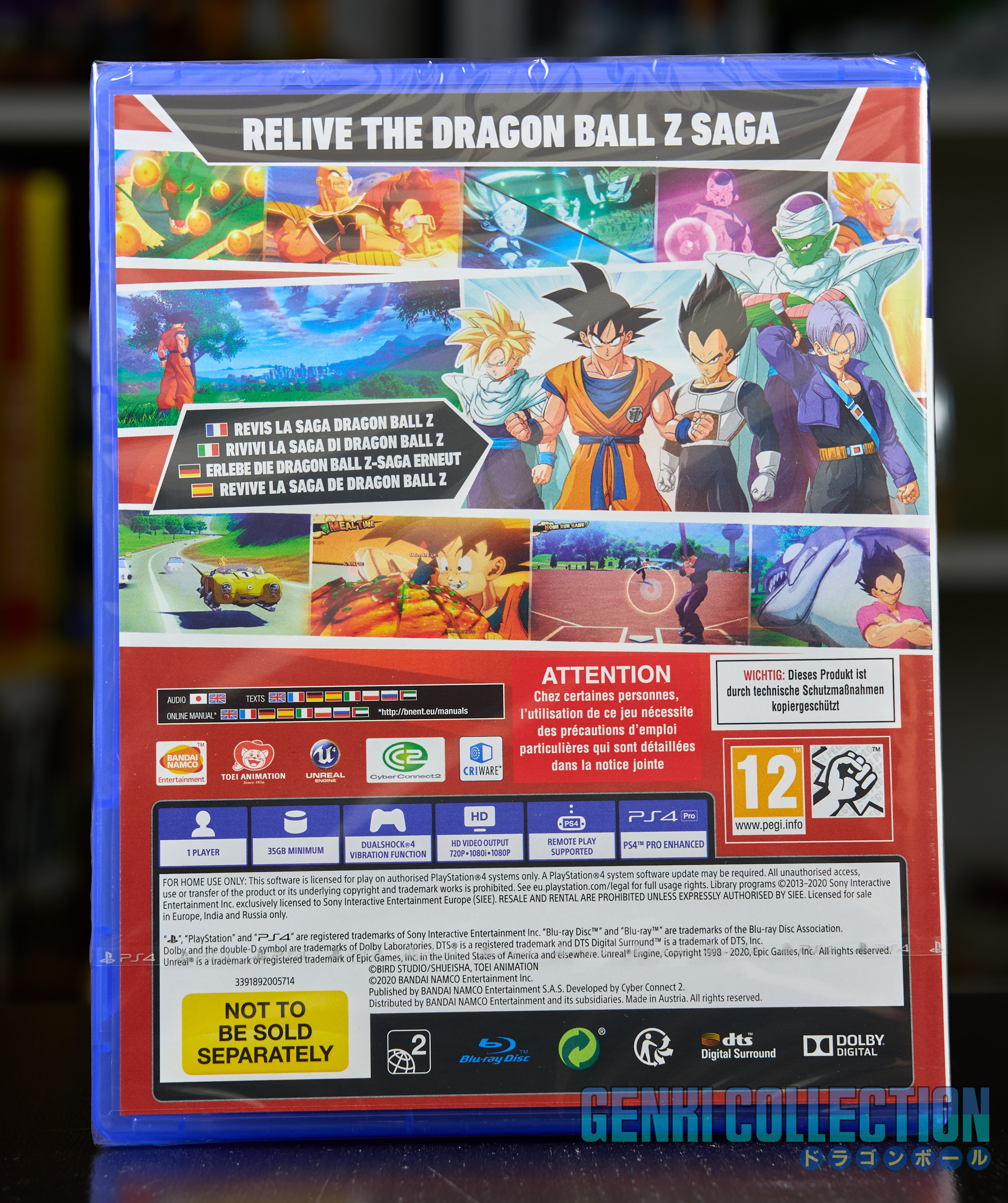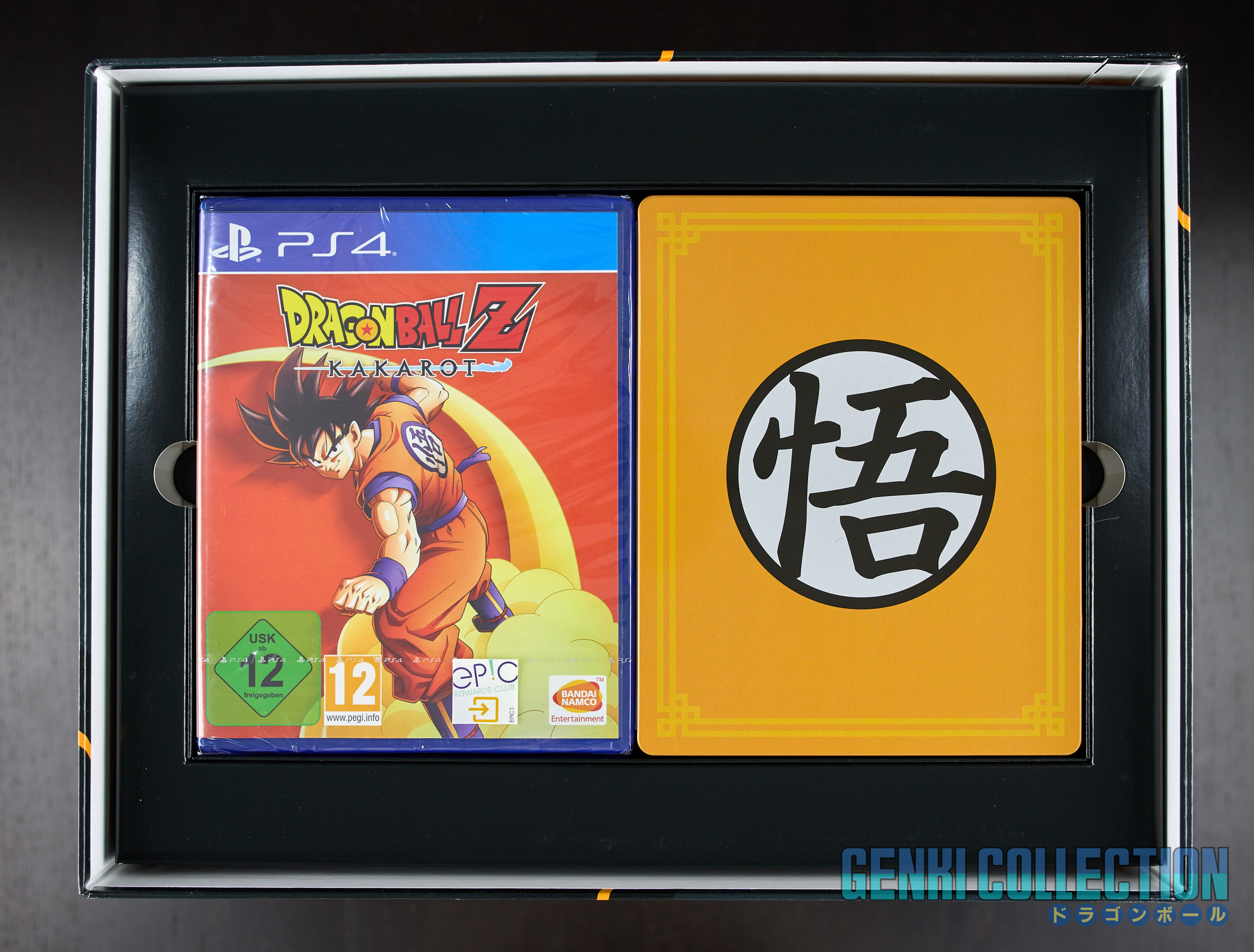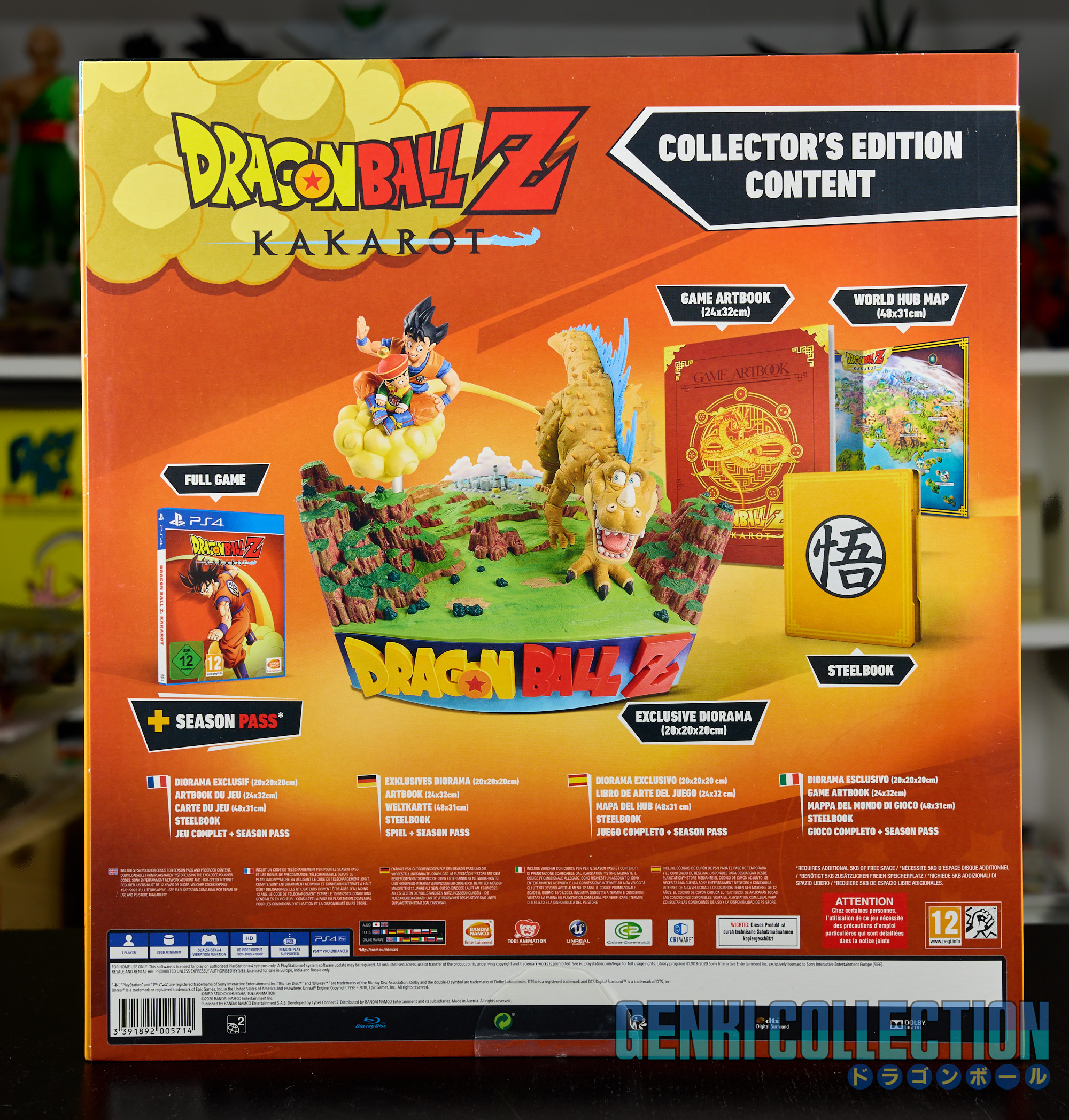 Coffret Collector DRAGON BALL Z KAKAROT sur PLAYSTATION 4Coffret collector du jeu DRAGON BALL Z KAKAROT sur console PLAYSTATION 4. Coffret en excellent état, il a juste été ouvert pour découvrir son contenu. Le jeu est toujours sous blister, le steelbook en très bon état, une mappemonde du jeu sous forme de poster est présente et la figurine n'a jamais été descellé (excepté la boîte). Un artbook en parfait état est également inclus, il contient de nombreux artworks sur le jeu et est vraiment magnifique !