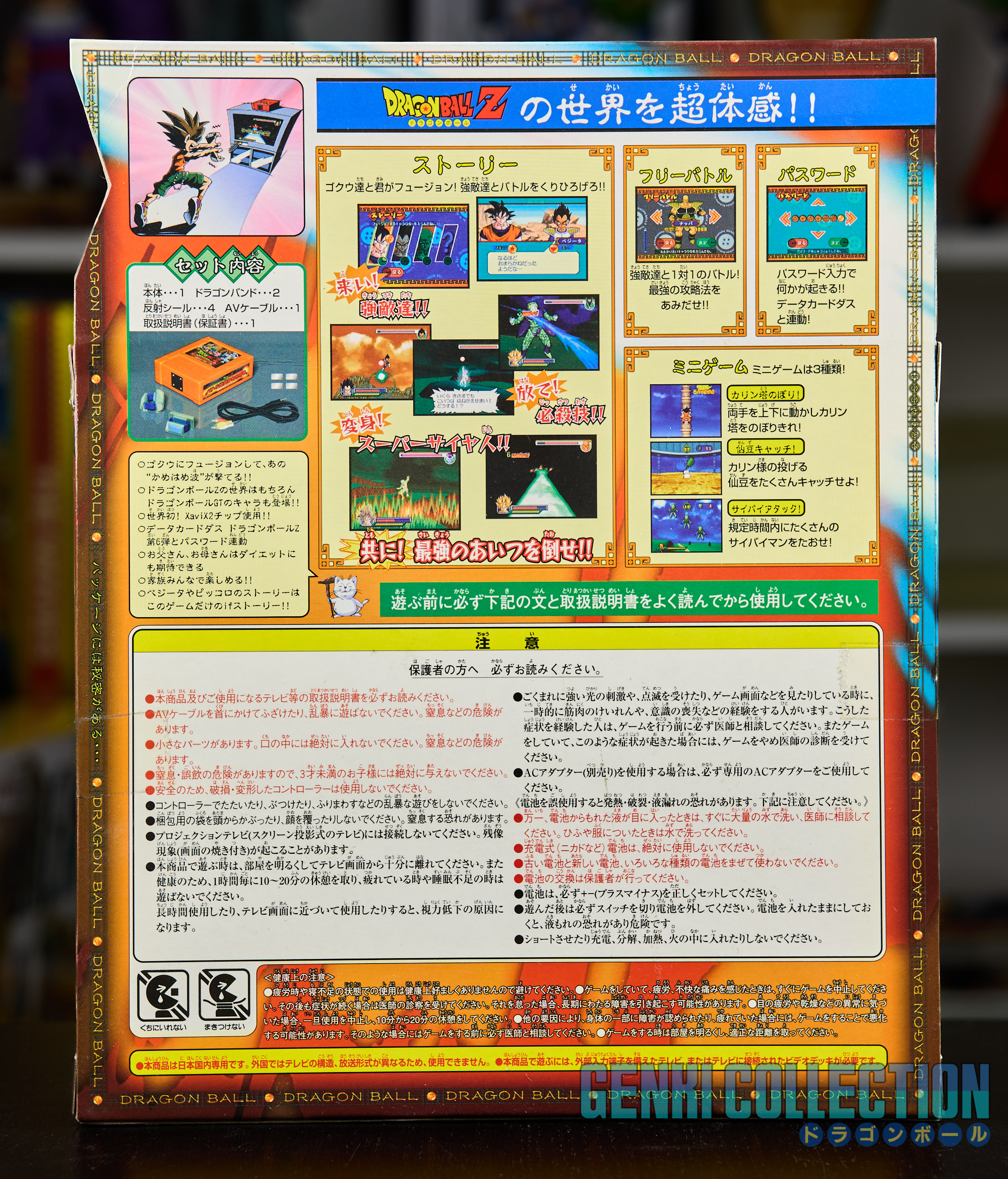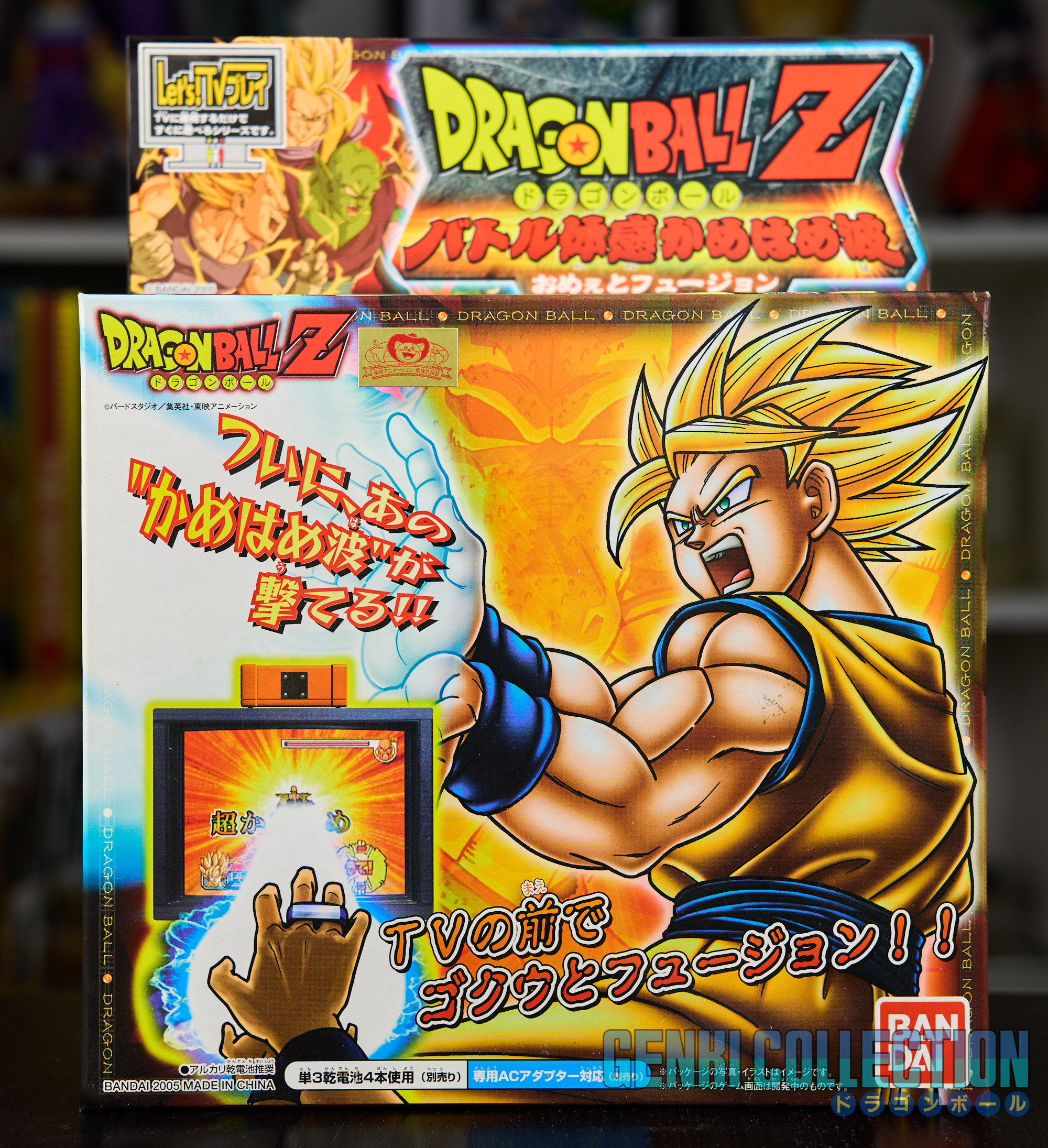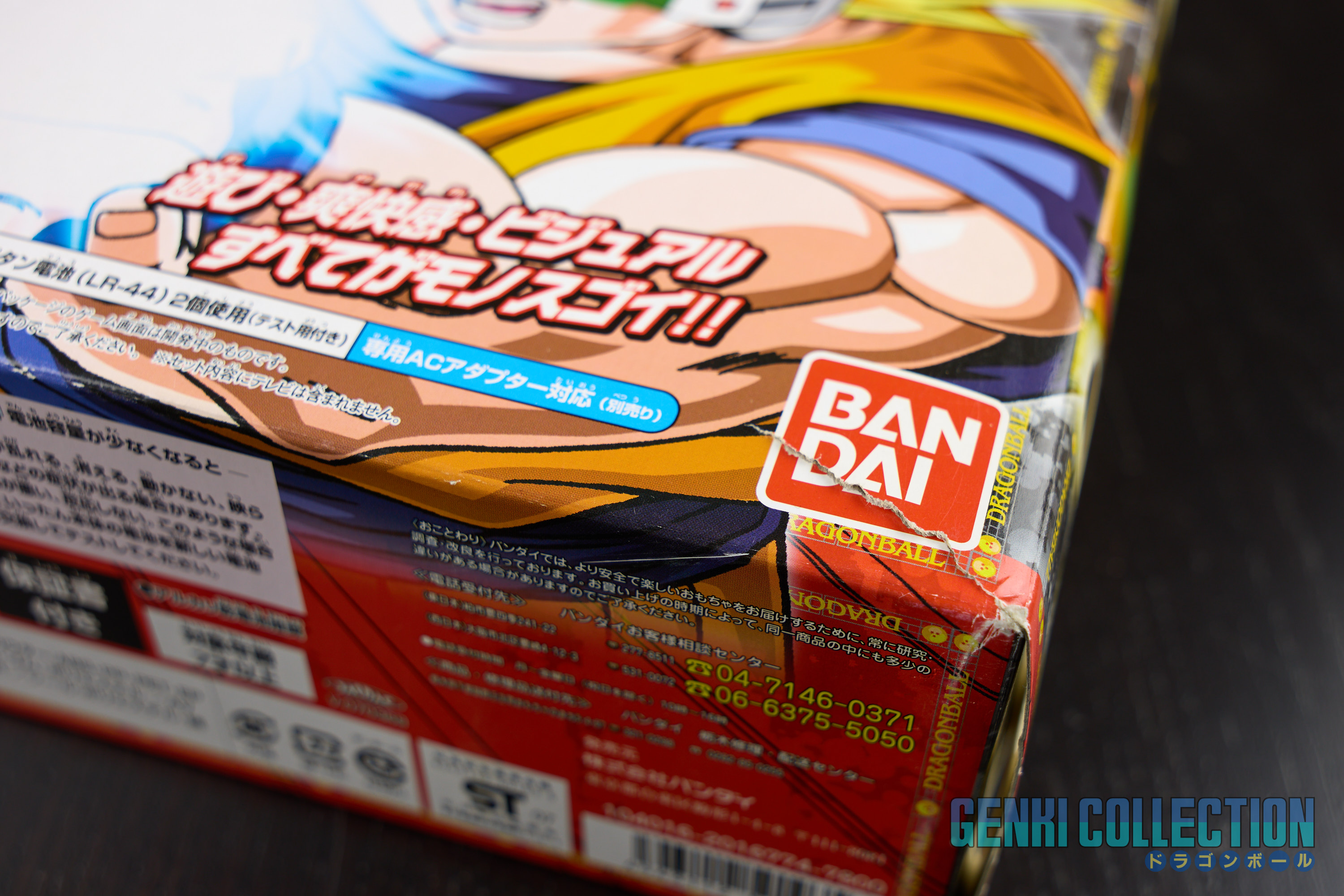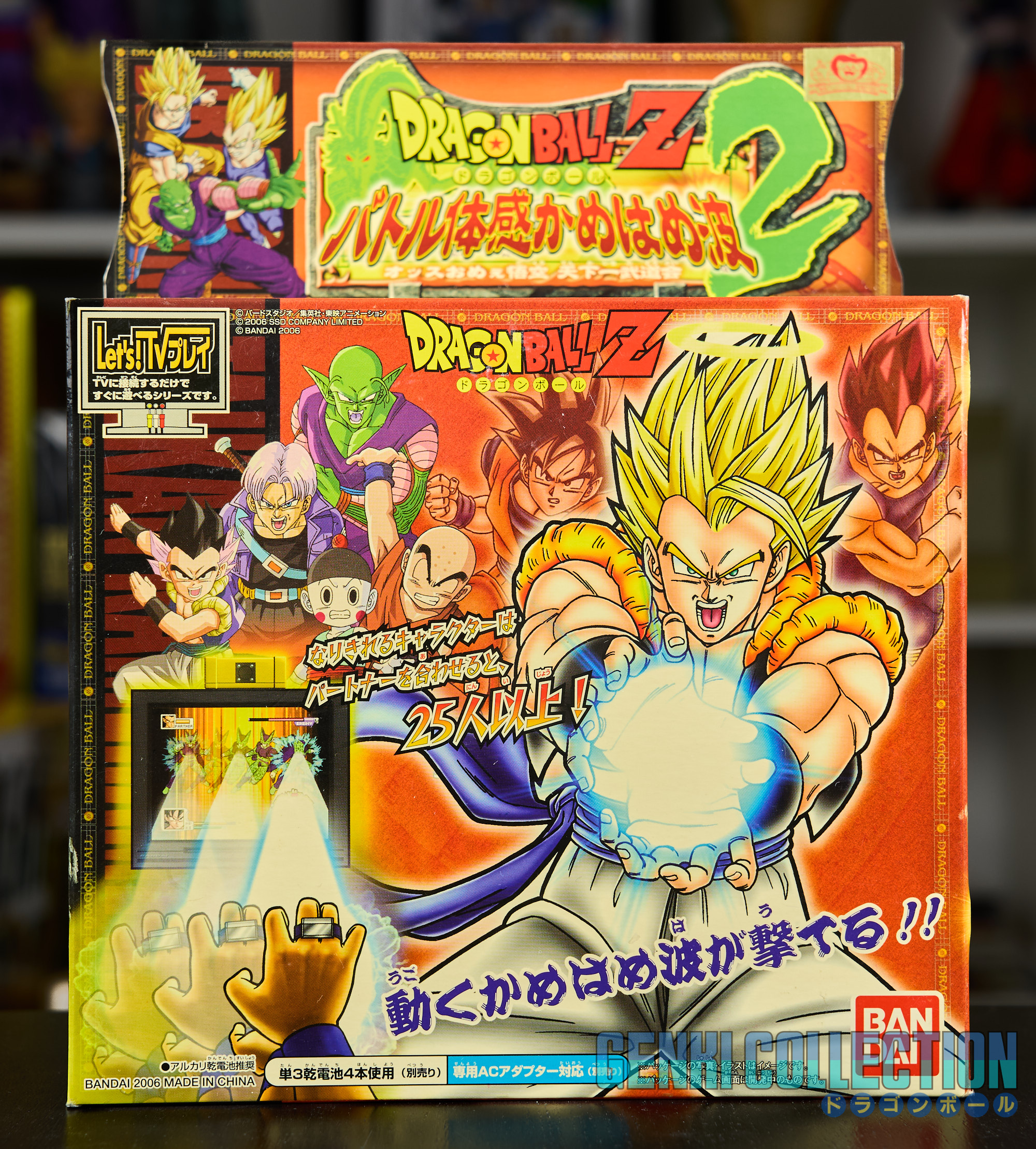 Lot de 3 consoles DRAGON BALL Z BATTLE TAIKAN KAME HAME HA + alimentation officielleLot de 3 consoles DRAGON BALL Z BATTLE TAIKAN KAME HAME HA + alimentation officielle. Chaque console peut-être alimentée par des piles ou via l'alimentation officielle (un transformateur 110 V vers 220 V reste nécessaire et non fourni). Ces jeux permettent de jouer sur une TV à des jeux inédits dans le style de la WII, avec des capteurs les mouvements sont reproduits à l'écran. Le troisième jeu incus également un scouter. Les 3 consoles sont quasiment neuves, justes ouvertes, seul le 1 a été joué un peu. À noter une petite déchirure sur le bas de la boîte de la troisième console.